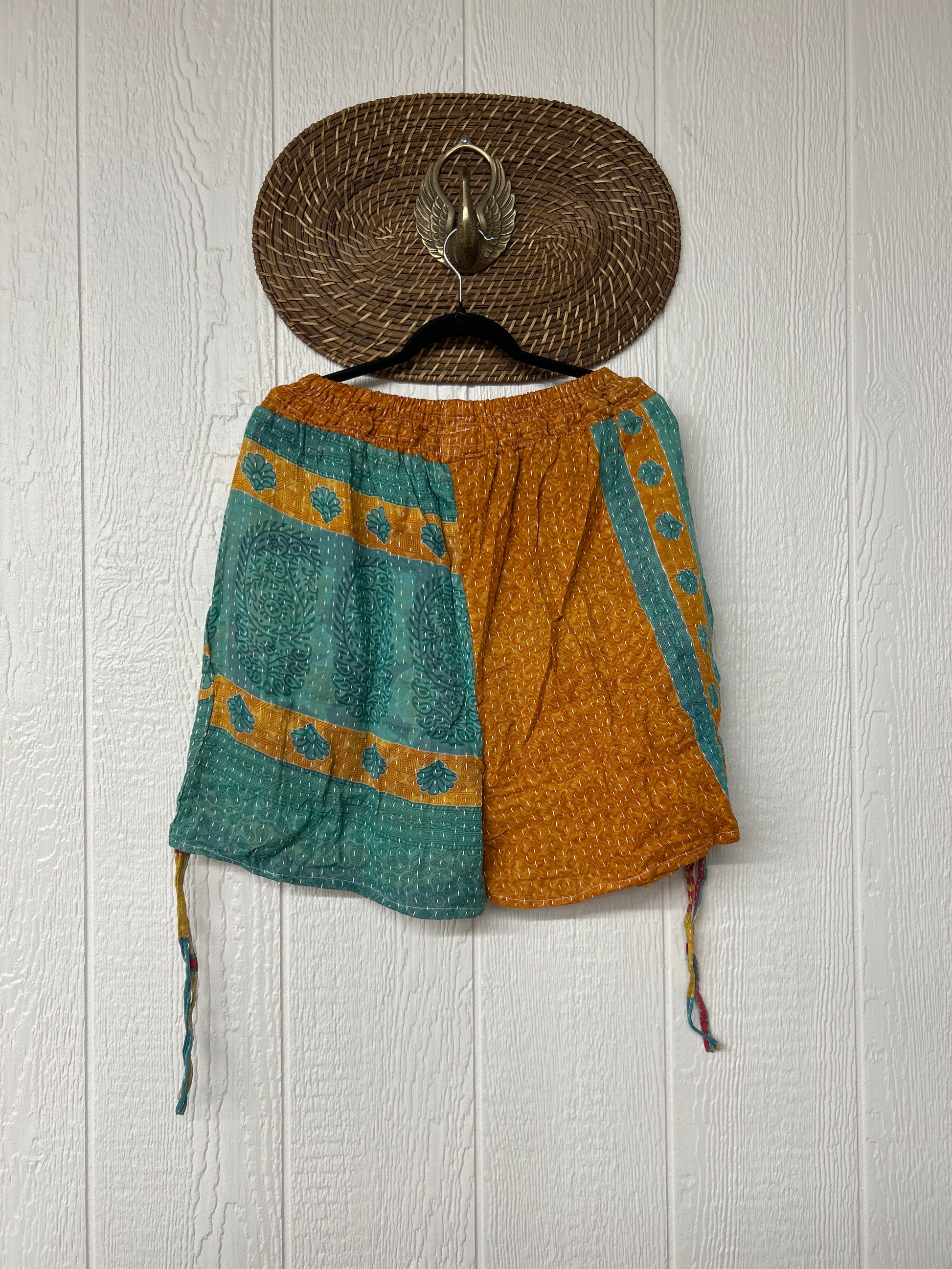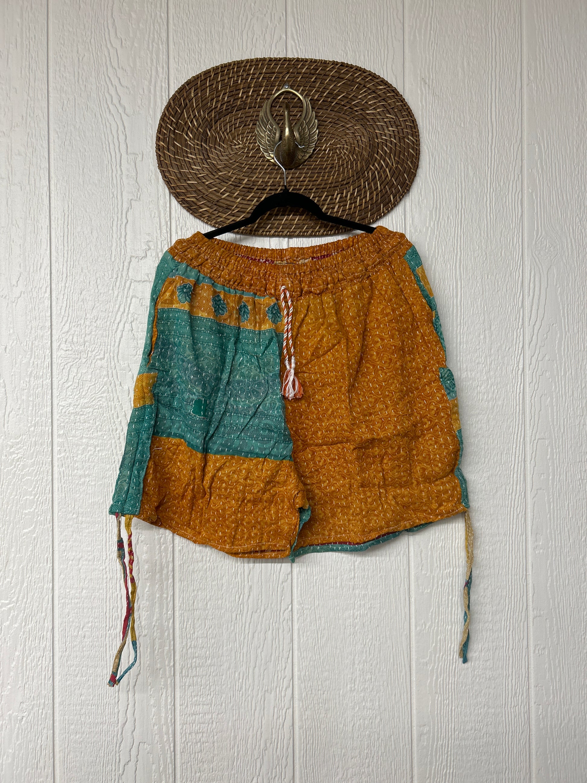 Crafted from our ultra lux vintage cotton Kantha stitched sari. Features interior pockets, a smocked waistband that is soft against the skin with an adjustable drawstring. This fully customizable piece also has a cinch drawstring on the outer leg so you can make the shorts longer or shorter. We are obsessed!