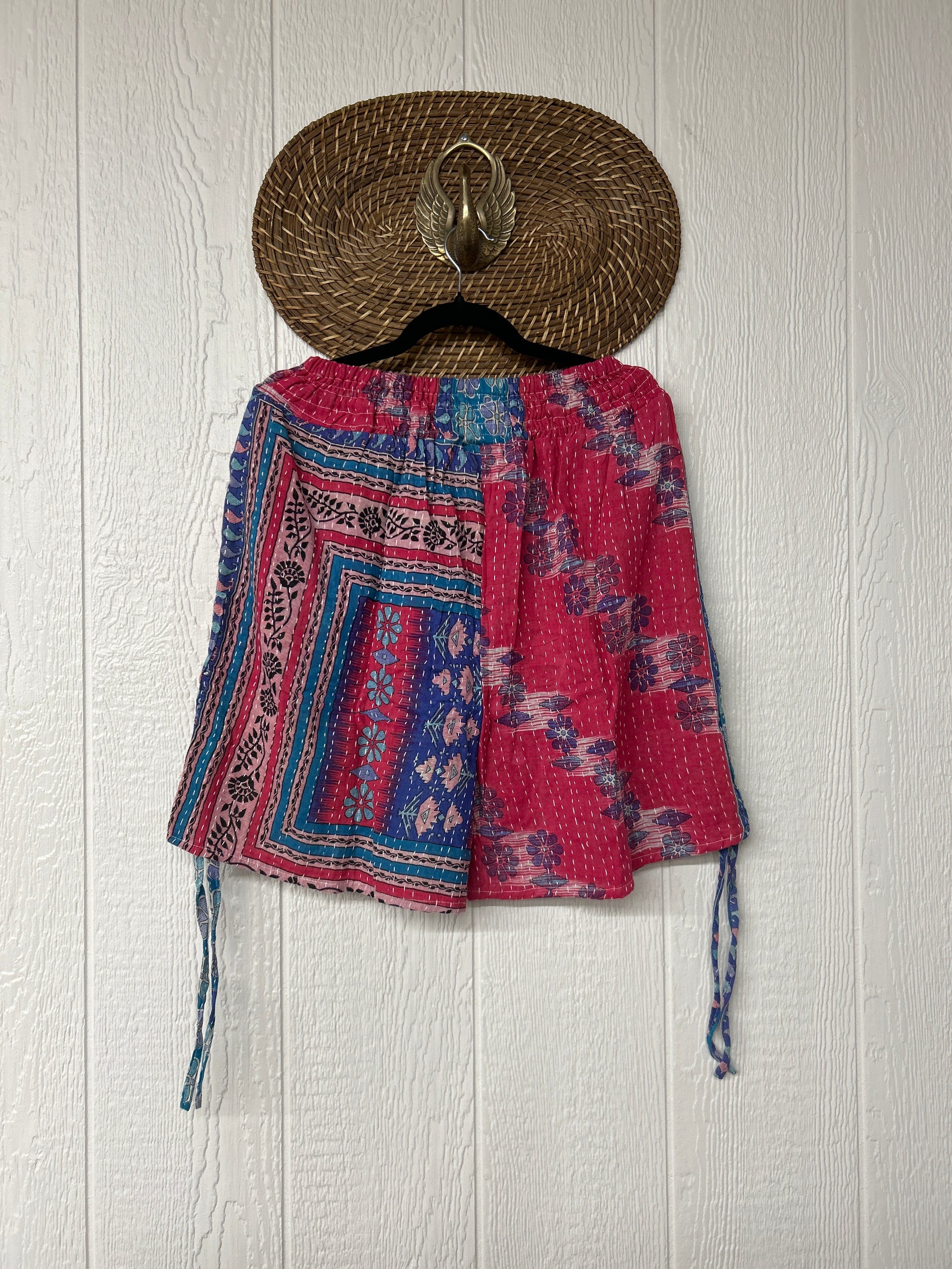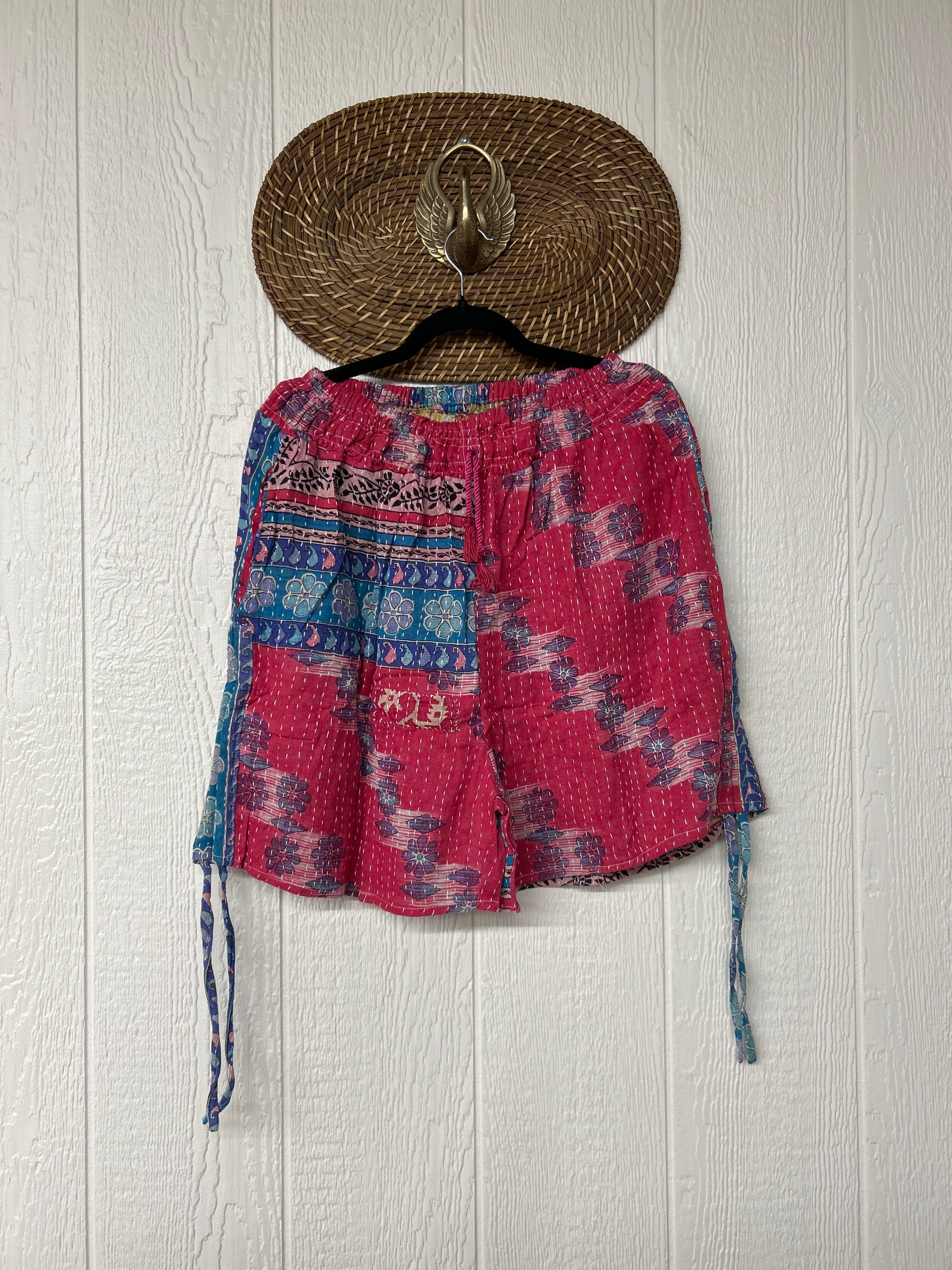 Crafted from our ultra lux vintage cotton Kantha stitched sari. Features interior pockets, a smocked waistband that is soft against the skin with an adjustable drawstring. This fully customizable piece also has a cinch drawstring on the outer leg so you can make the shorts longer or shorter. We are obsessed!