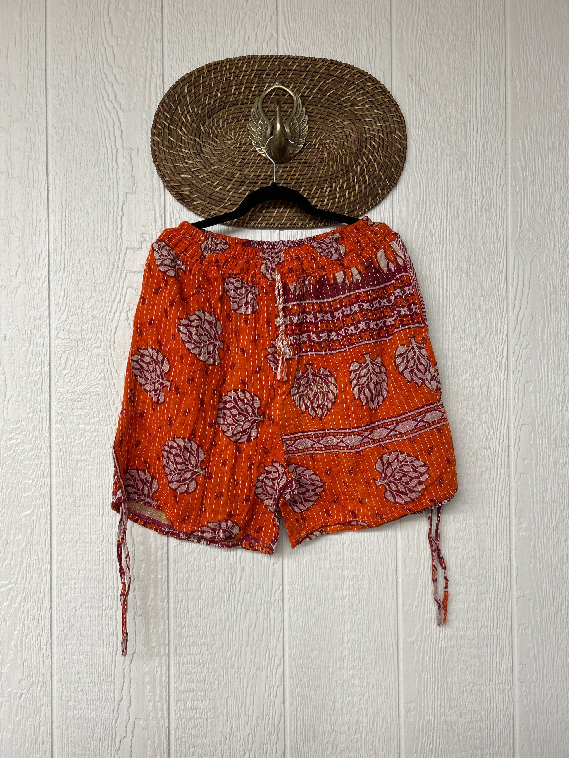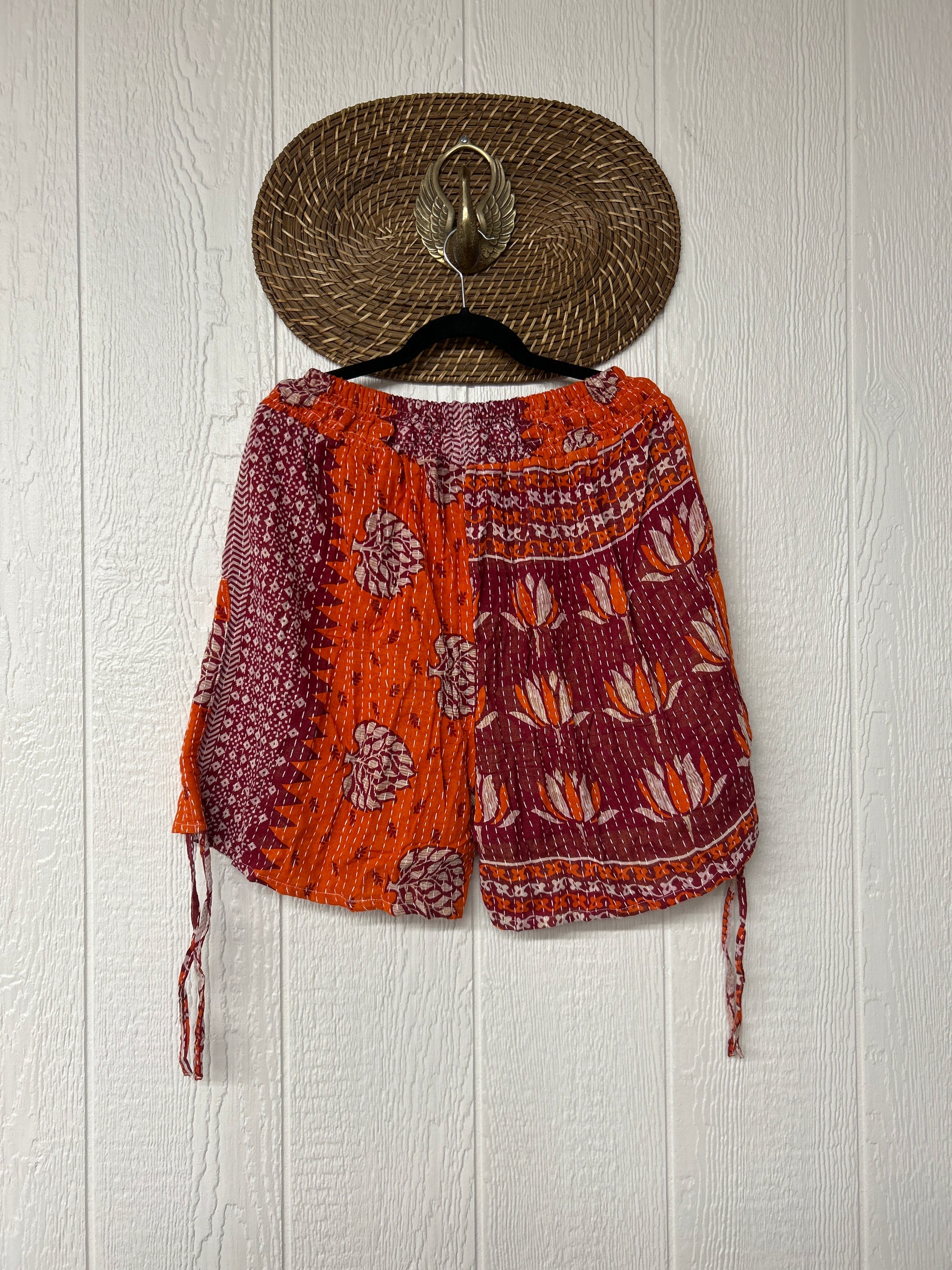 Crafted from our ultra lux vintage cotton Kantha stitched sari. Features interior pockets, a smocked waistband that is soft against the skin with an adjustable drawstring. This fully customizable piece also has a cinch drawstring on the outer leg so you can make the shorts longer or shorter. We are obsessed!