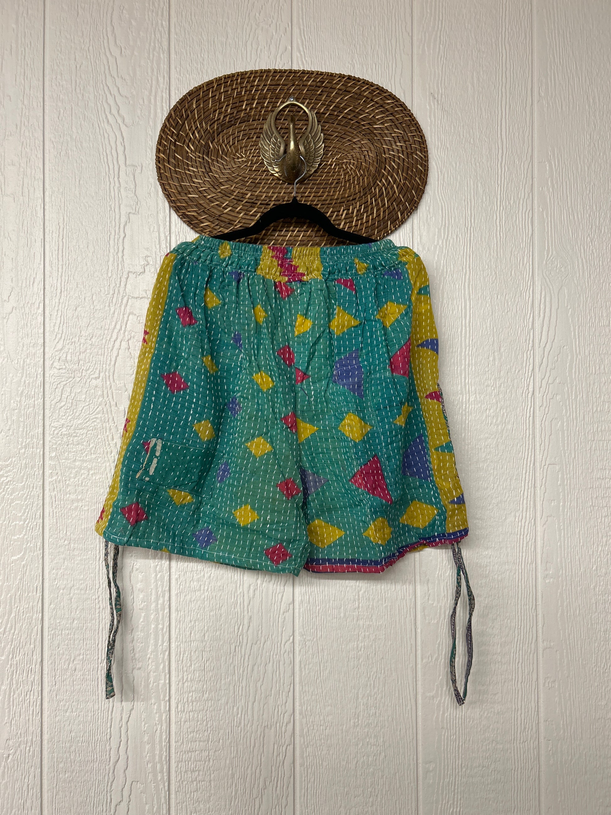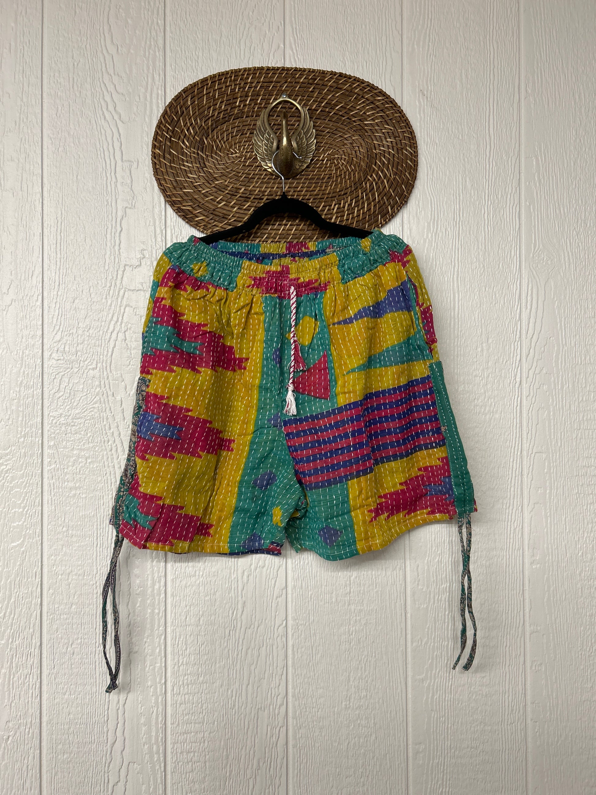 Crafted from our ultra lux vintage cotton Kantha stitched sari. Features interior pockets, a smocked waistband that is soft against the skin with an adjustable drawstring. This fully customizable piece also has a cinch drawstring on the outer leg so you can make the shorts longer or shorter. We are obsessed!