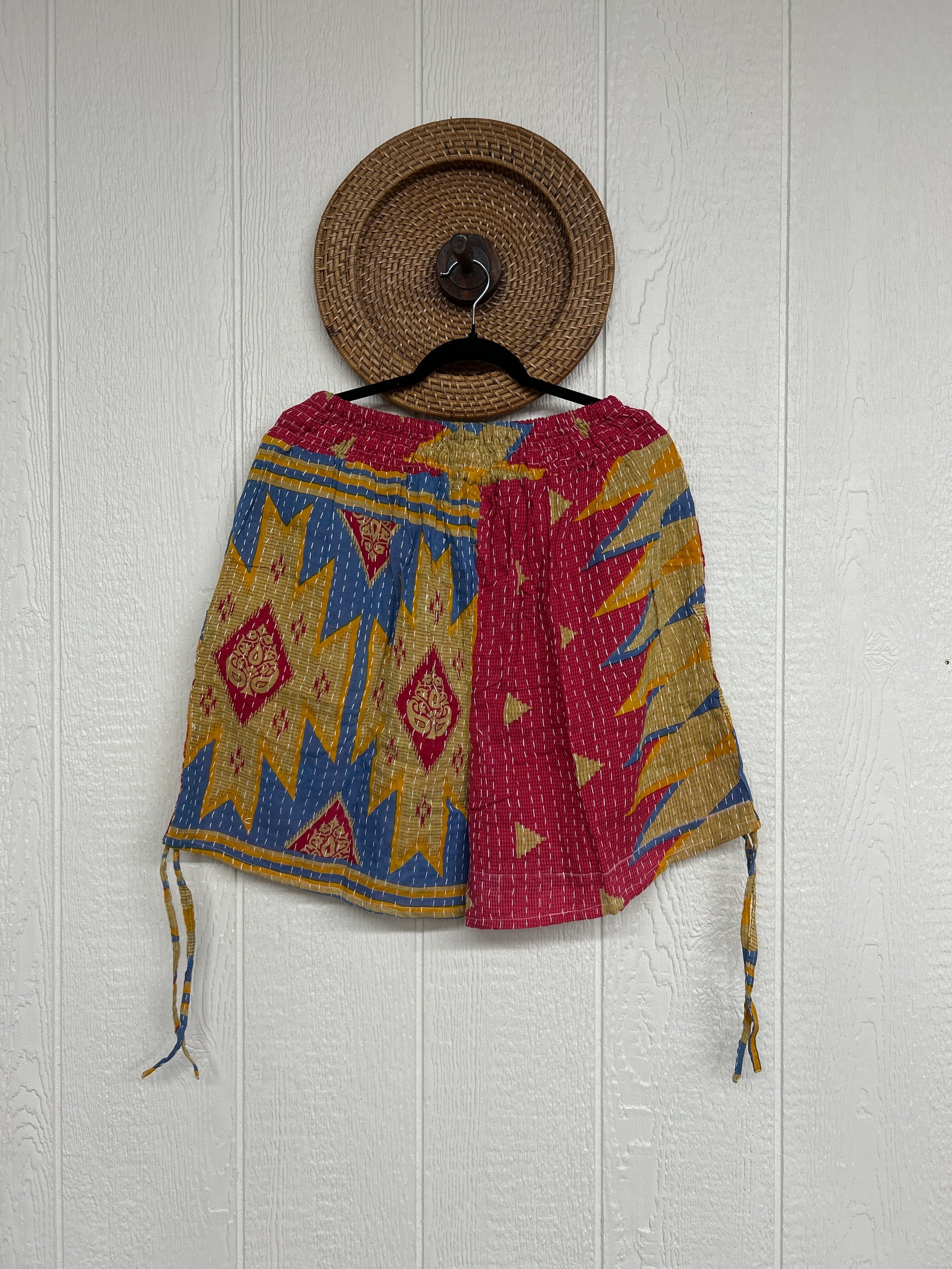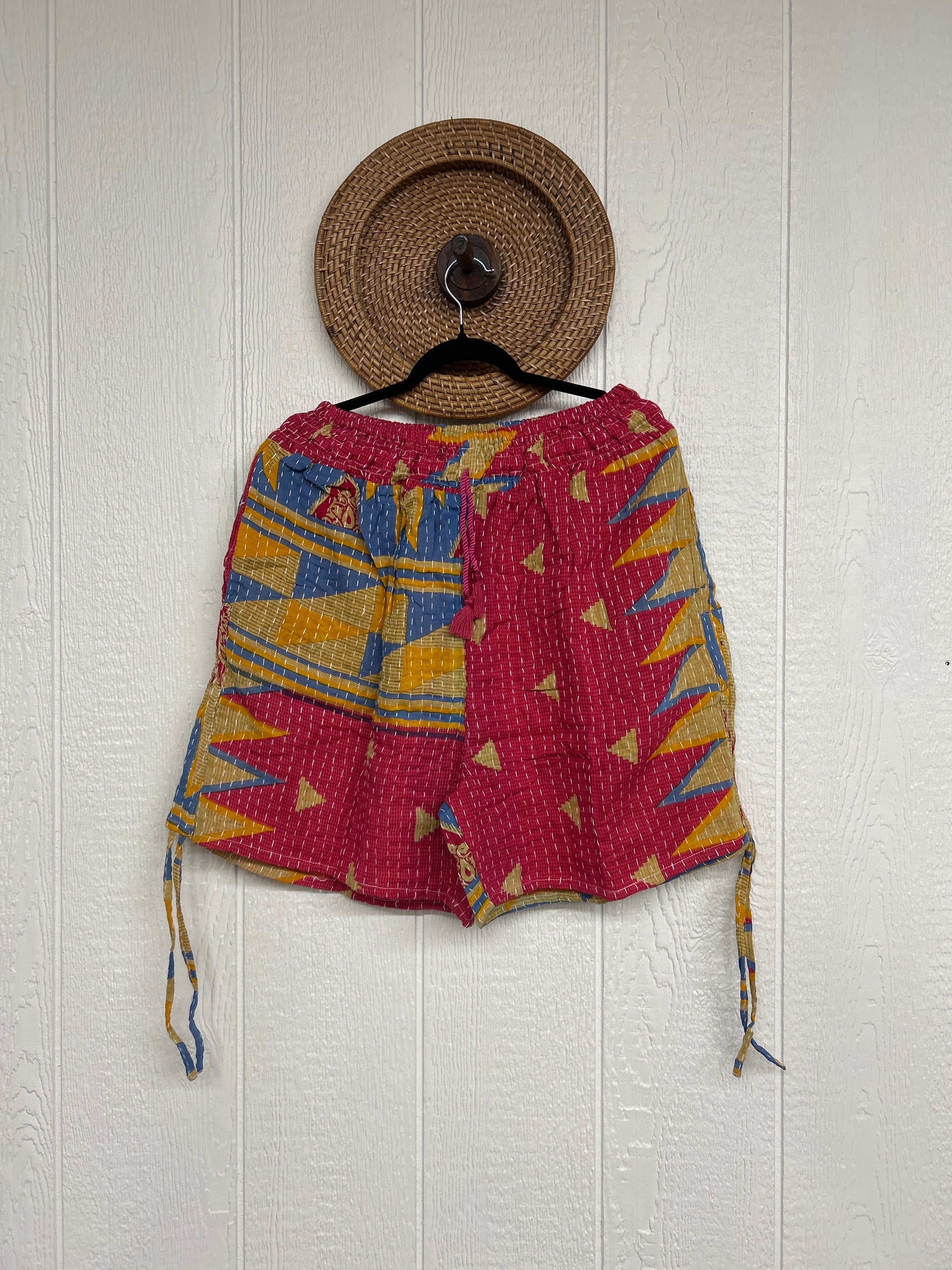 Crafted from our ultra lux vintage cotton Kantha stitched sari. Features interior pockets, a smocked waistband that is soft against the skin with an adjustable drawstring. This fully customizable piece also has a cinch drawstring on the outer leg so you can make the shorts longer or shorter. We are obsessed!