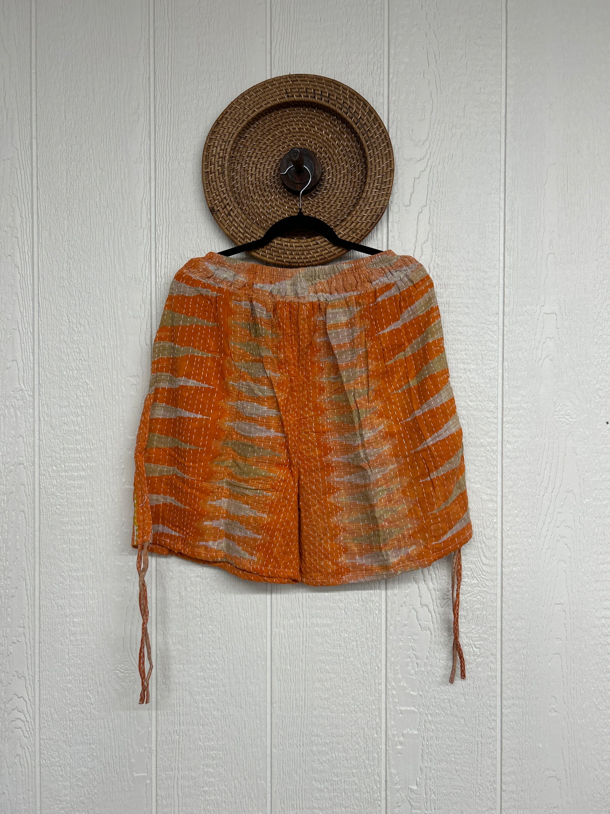 Crafted from our ultra lux vintage cotton Kantha stitched sari. Features interior pockets, a smocked waistband that is soft against the skin with an adjustable drawstring. This fully customizable piece also has a cinch drawstring on the outer leg so you can make the shorts longer or shorter. We are obsessed!