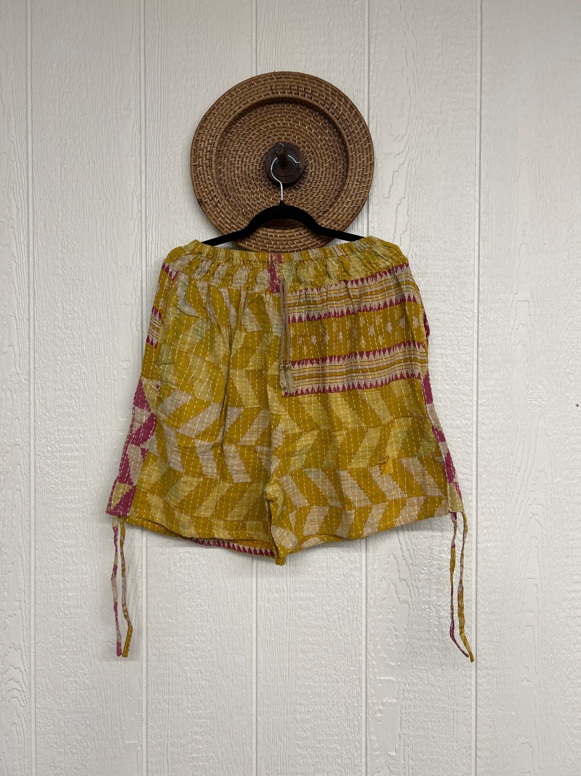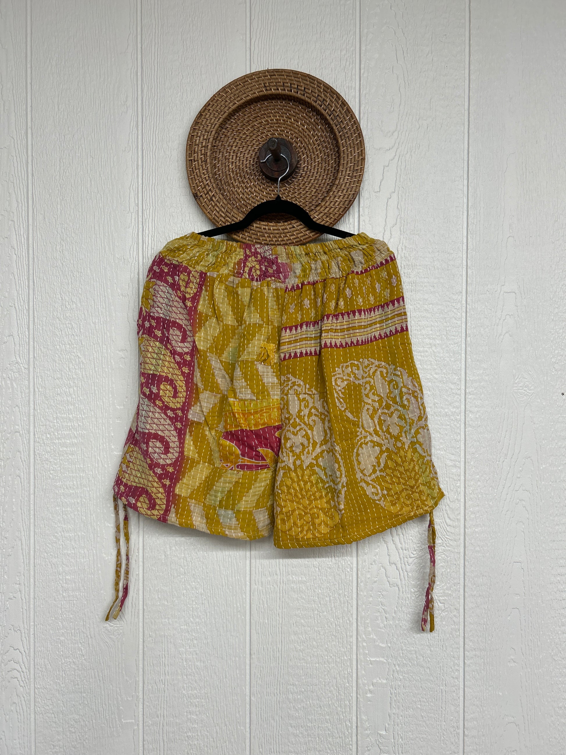 Crafted from our ultra lux vintage cotton Kantha stitched sari. Features interior pockets, a smocked waistband that is soft against the skin with an adjustable drawstring. This fully customizable piece also has a cinch drawstring on the outer leg so you can make the shorts longer or shorter. We are obsessed!