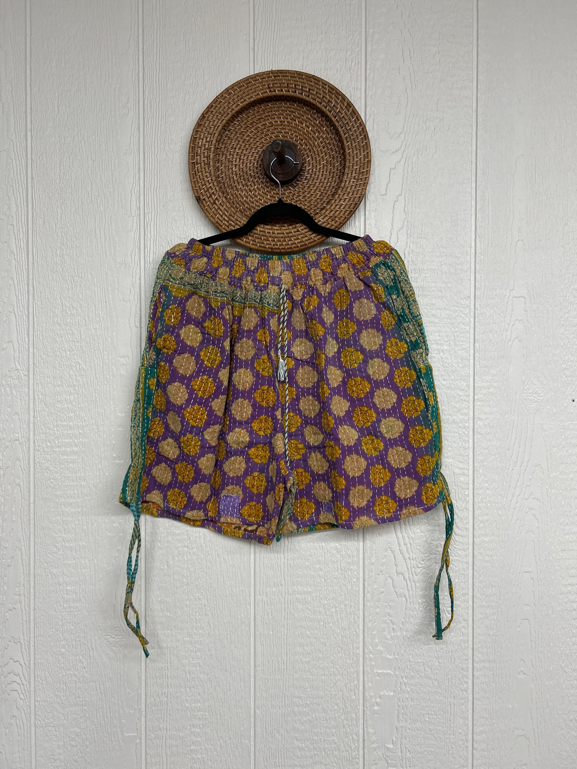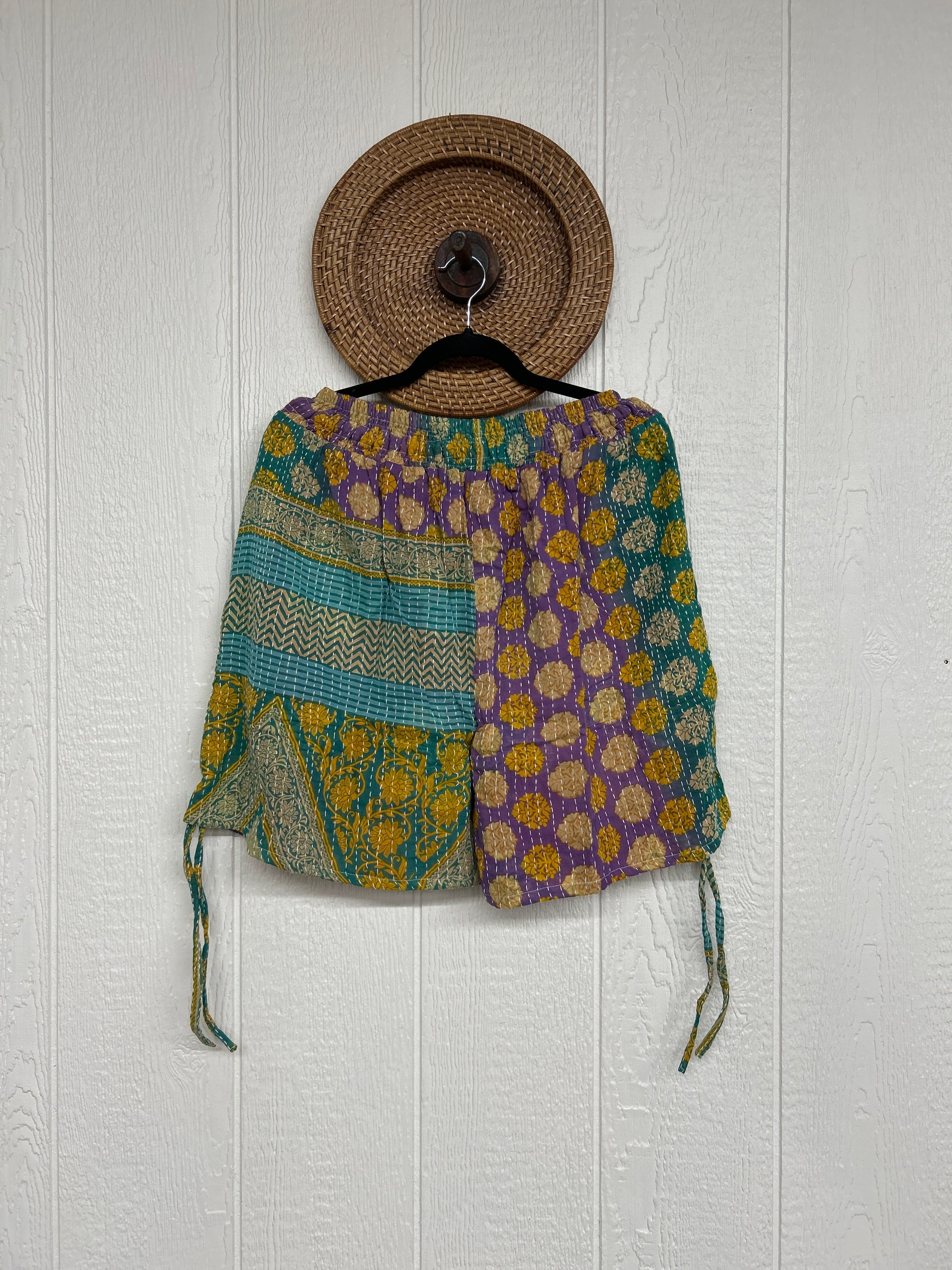 Crafted from our ultra lux vintage cotton Kantha stitched sari. Features interior pockets, a smocked waistband that is soft against the skin with an adjustable drawstring. This fully customizable piece also has a cinch drawstring on the outer leg so you can make the shorts longer or shorter. We are obsessed!