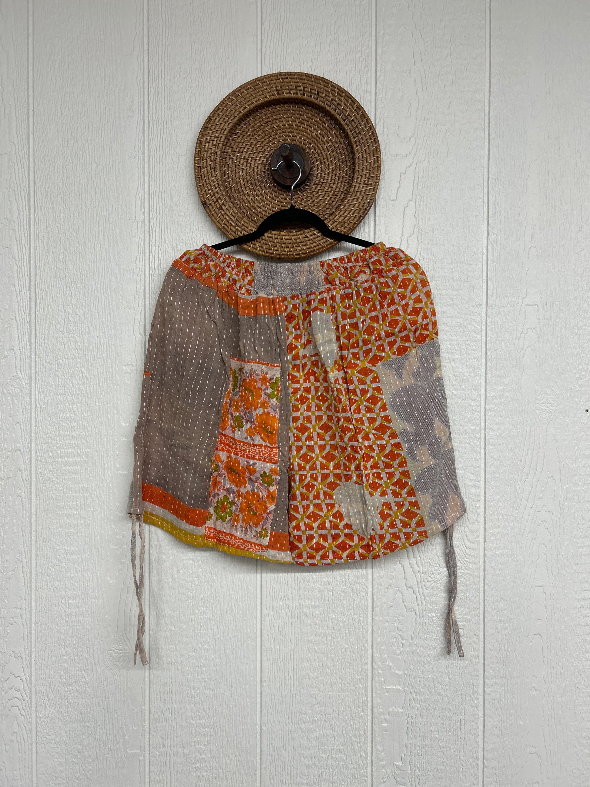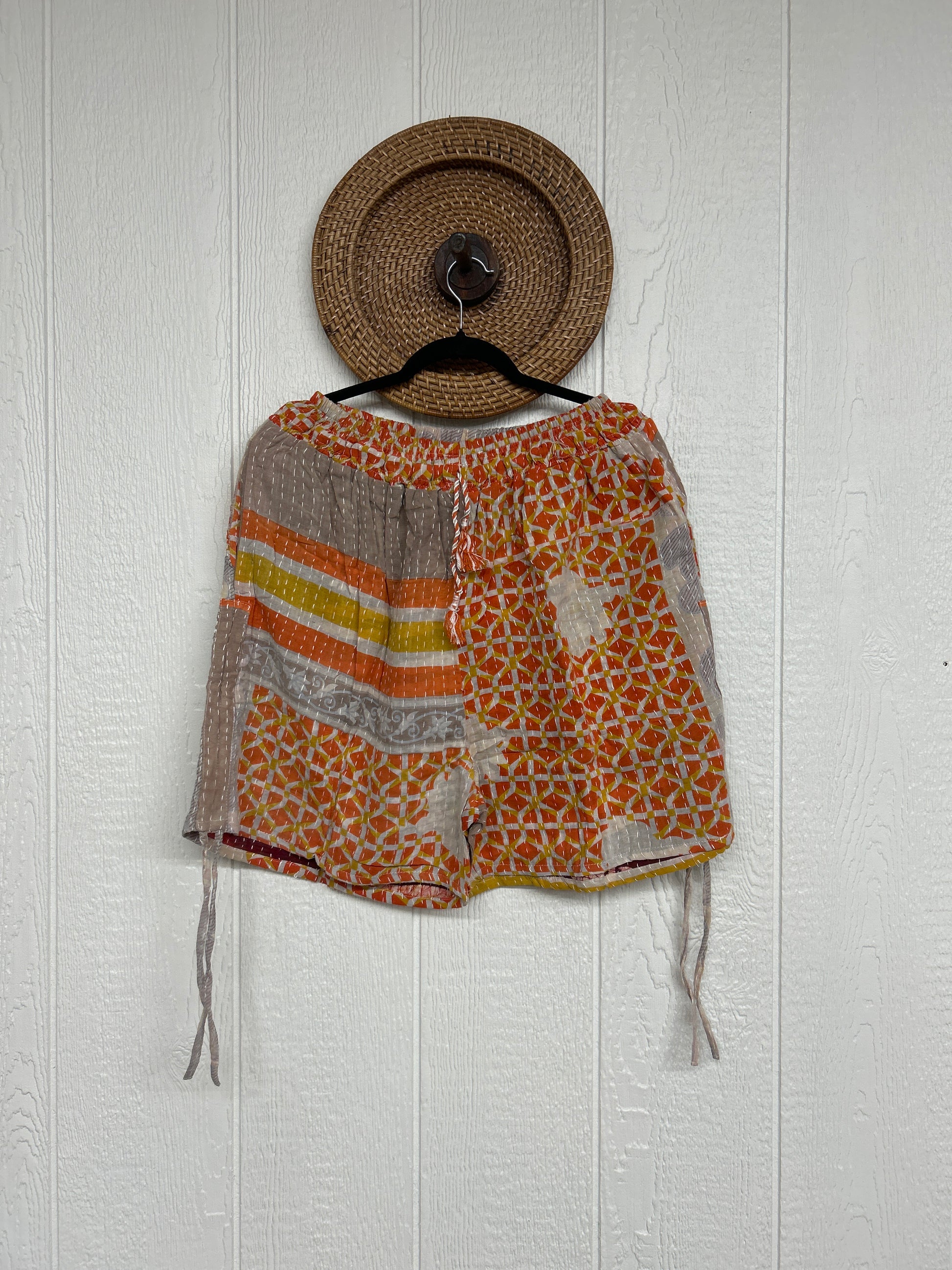 Crafted from our ultra lux vintage cotton Kantha stitched sari. Features interior pockets, a smocked waistband that is soft against the skin with an adjustable drawstring. This fully customizable piece also has a cinch drawstring on the outer leg so you can make the shorts longer or shorter. We are obsessed!