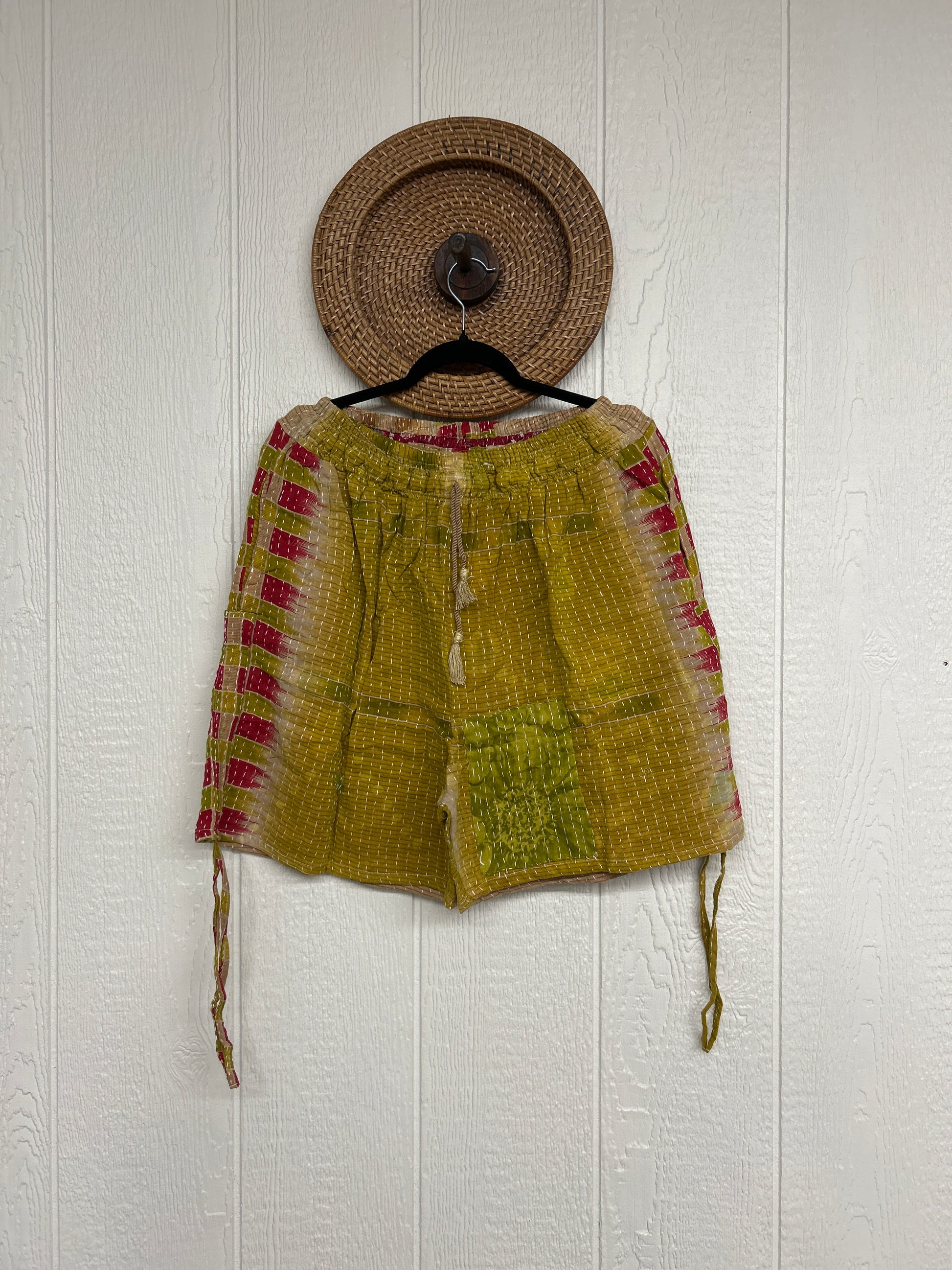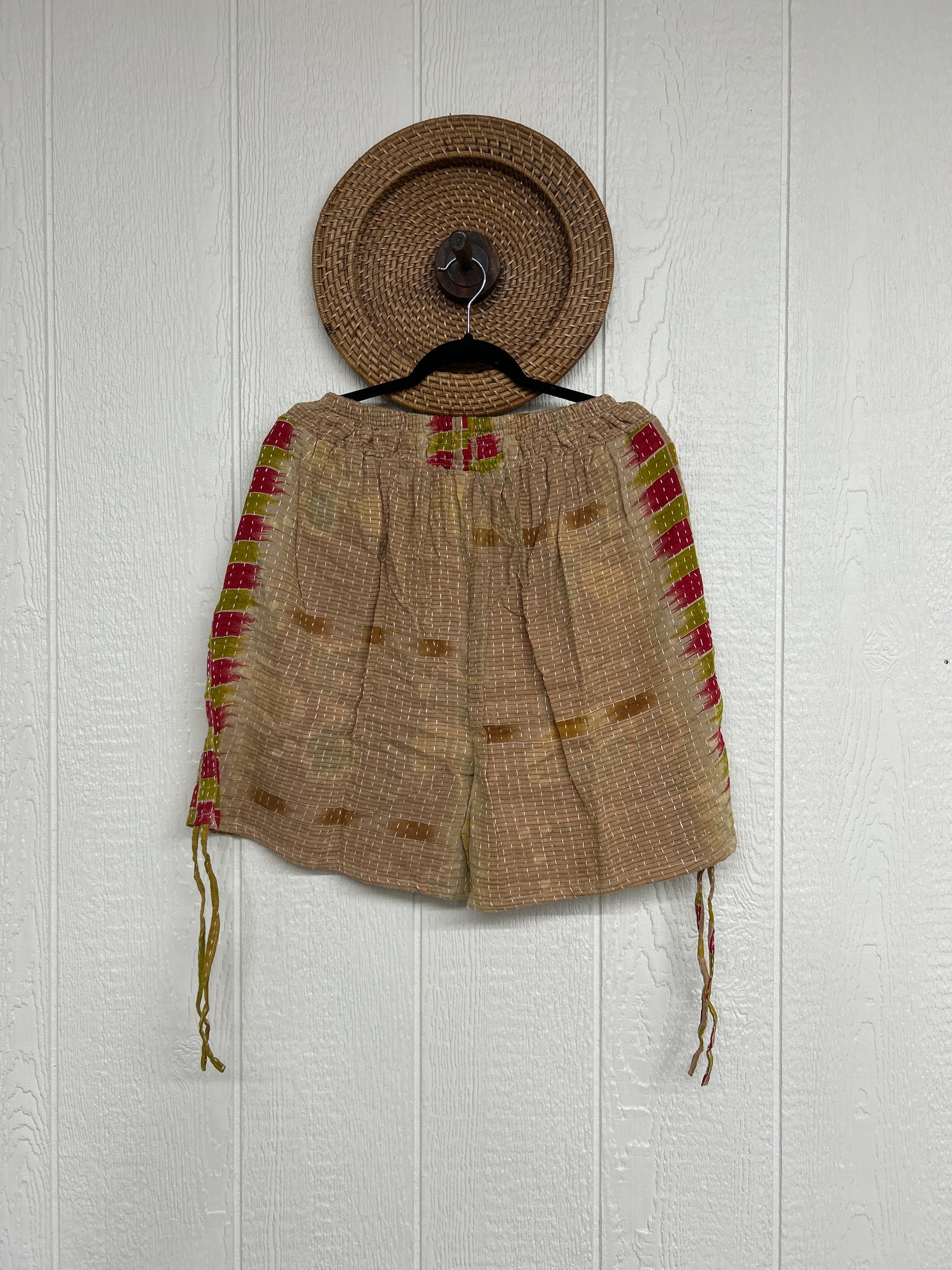 Crafted from our ultra lux vintage cotton Kantha stitched sari. Features interior pockets, a smocked waistband that is soft against the skin with an adjustable drawstring. This fully customizable piece also has a cinch drawstring on the outer leg so you can make the shorts longer or shorter. We are obsessed!