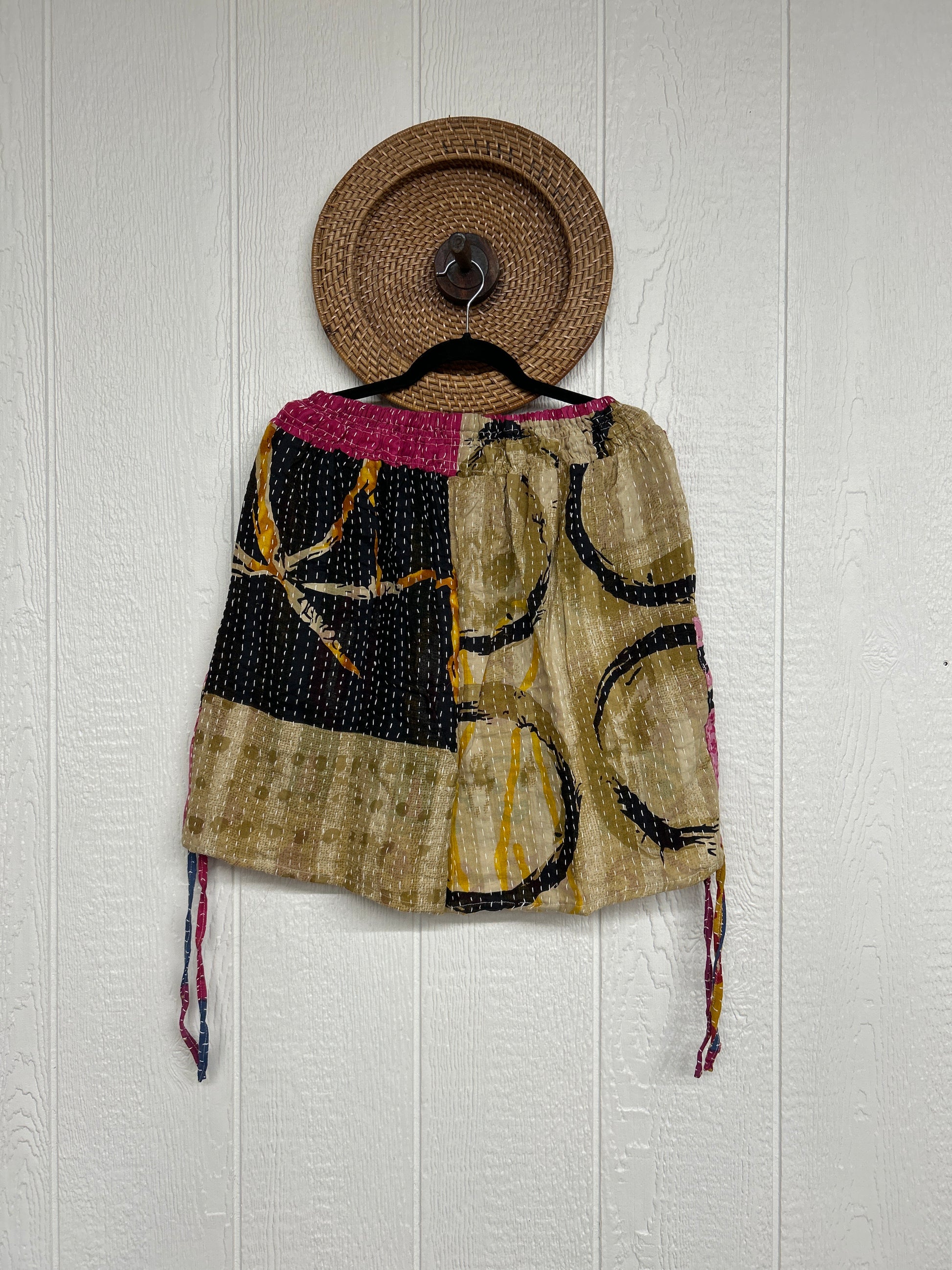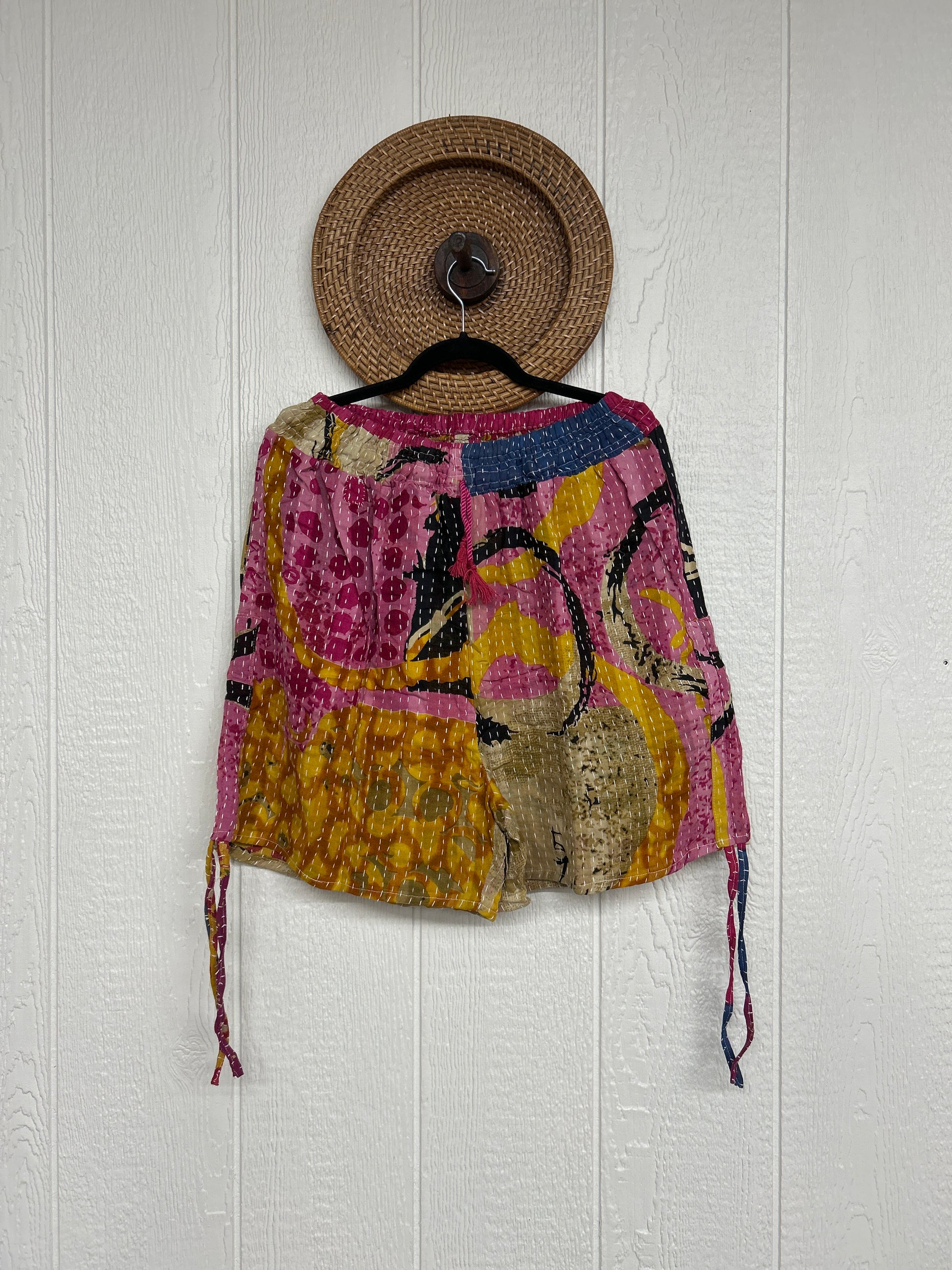 Crafted from our ultra lux vintage cotton Kantha stitched sari. Features interior pockets, a smocked waistband that is soft against the skin with an adjustable drawstring. This fully customizable piece also has a cinch drawstring on the outer leg so you can make the shorts longer or shorter. We are obsessed!