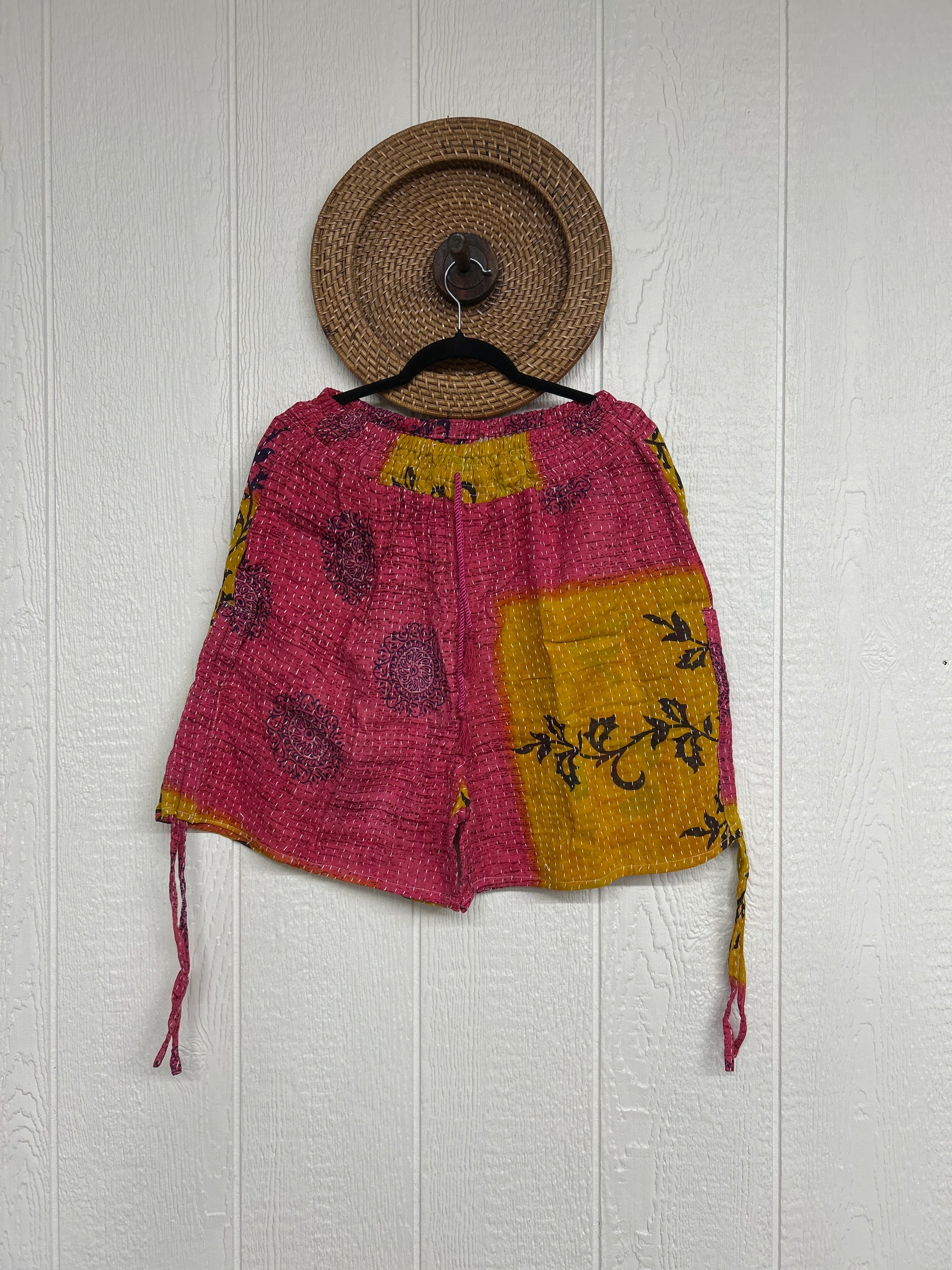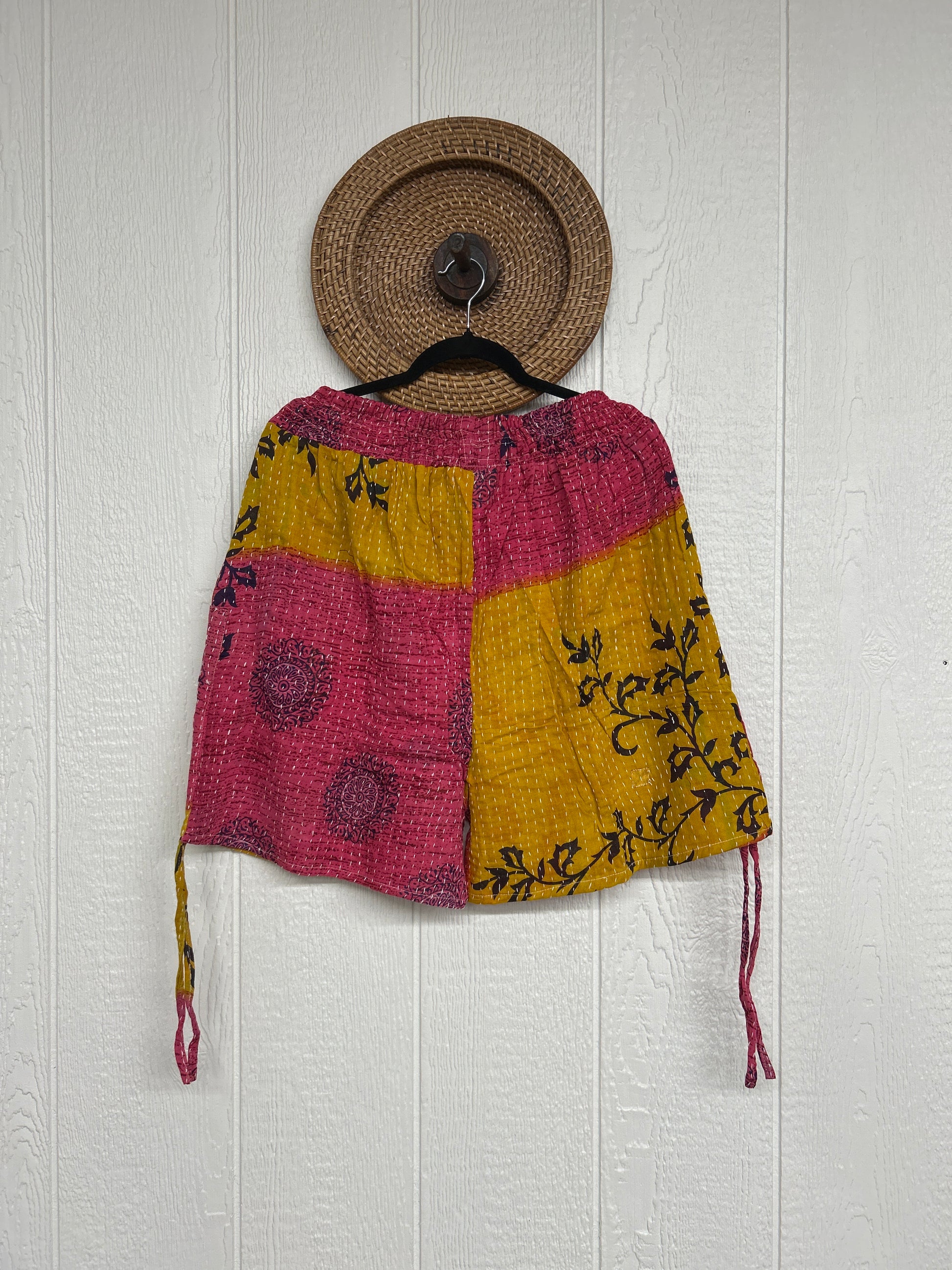 Crafted from our ultra lux vintage cotton Kantha stitched sari. Features interior pockets, a smocked waistband that is soft against the skin with an adjustable drawstring. This fully customizable piece also has a cinch drawstring on the outer leg so you can make the shorts longer or shorter. We are obsessed!