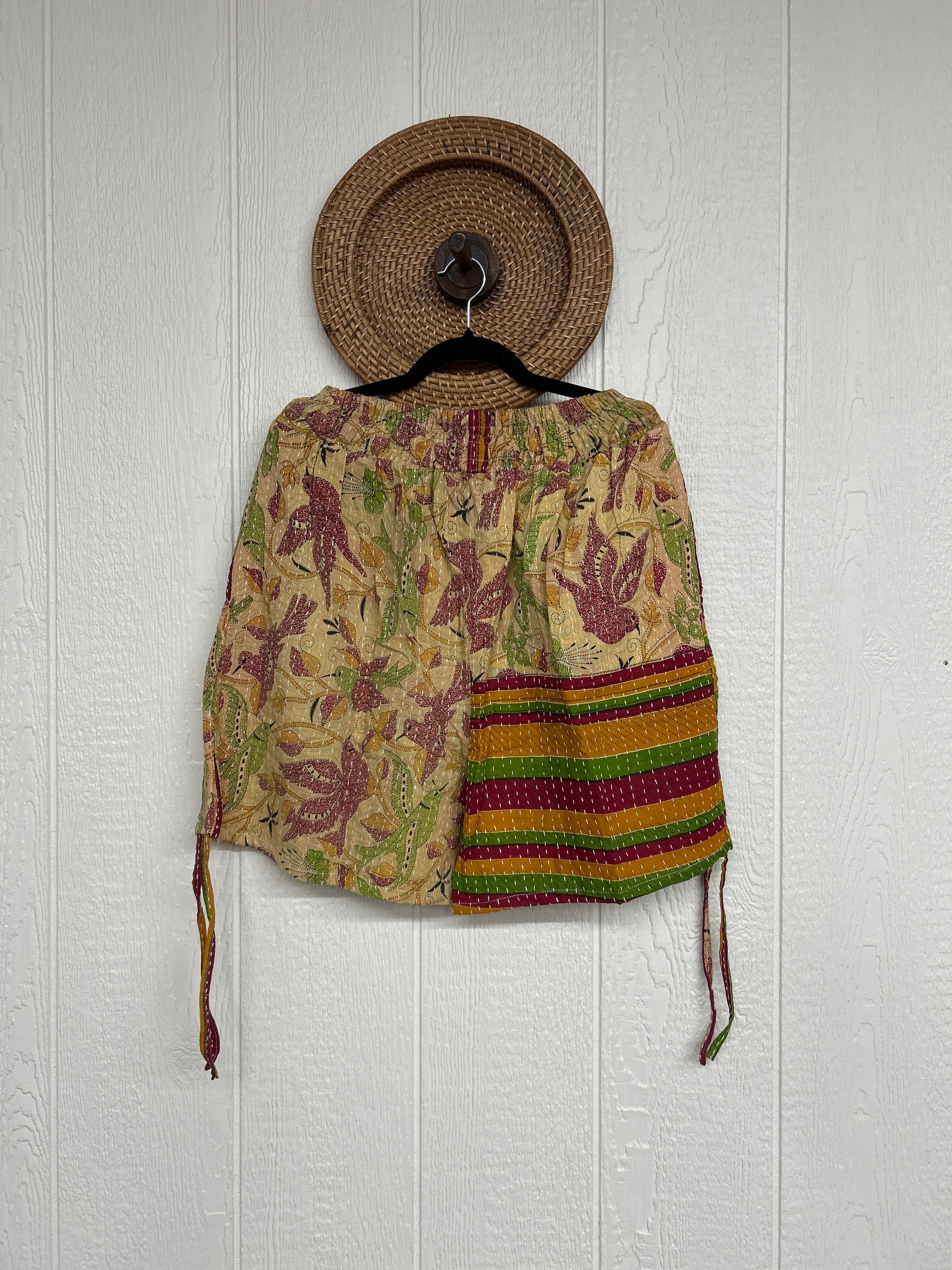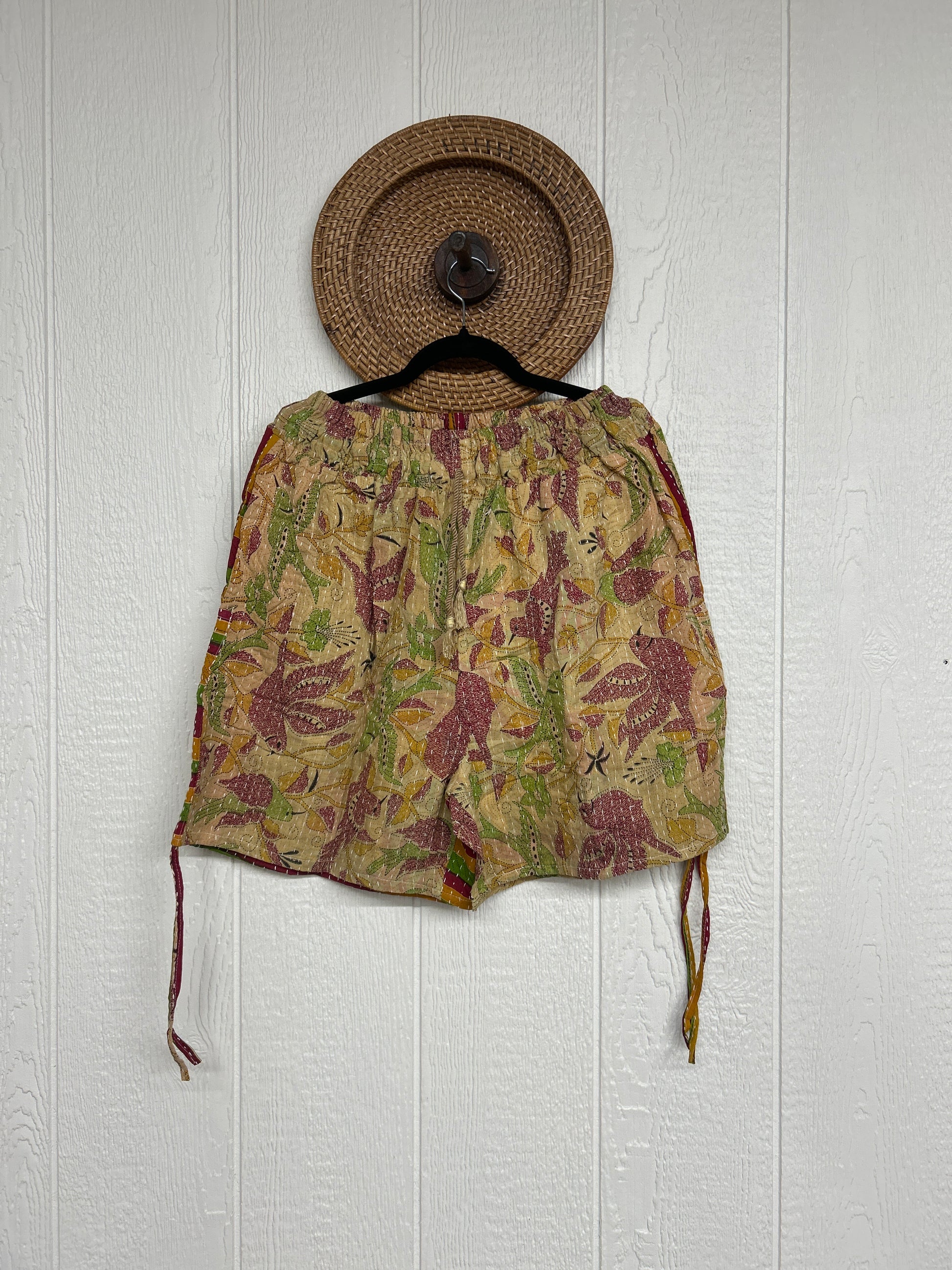 Crafted from our ultra lux vintage cotton Kantha stitched sari. Features interior pockets, a smocked waistband that is soft against the skin with an adjustable drawstring. This fully customizable piece also has a cinch drawstring on the outer leg so you can make the shorts longer or shorter. We are obsessed!