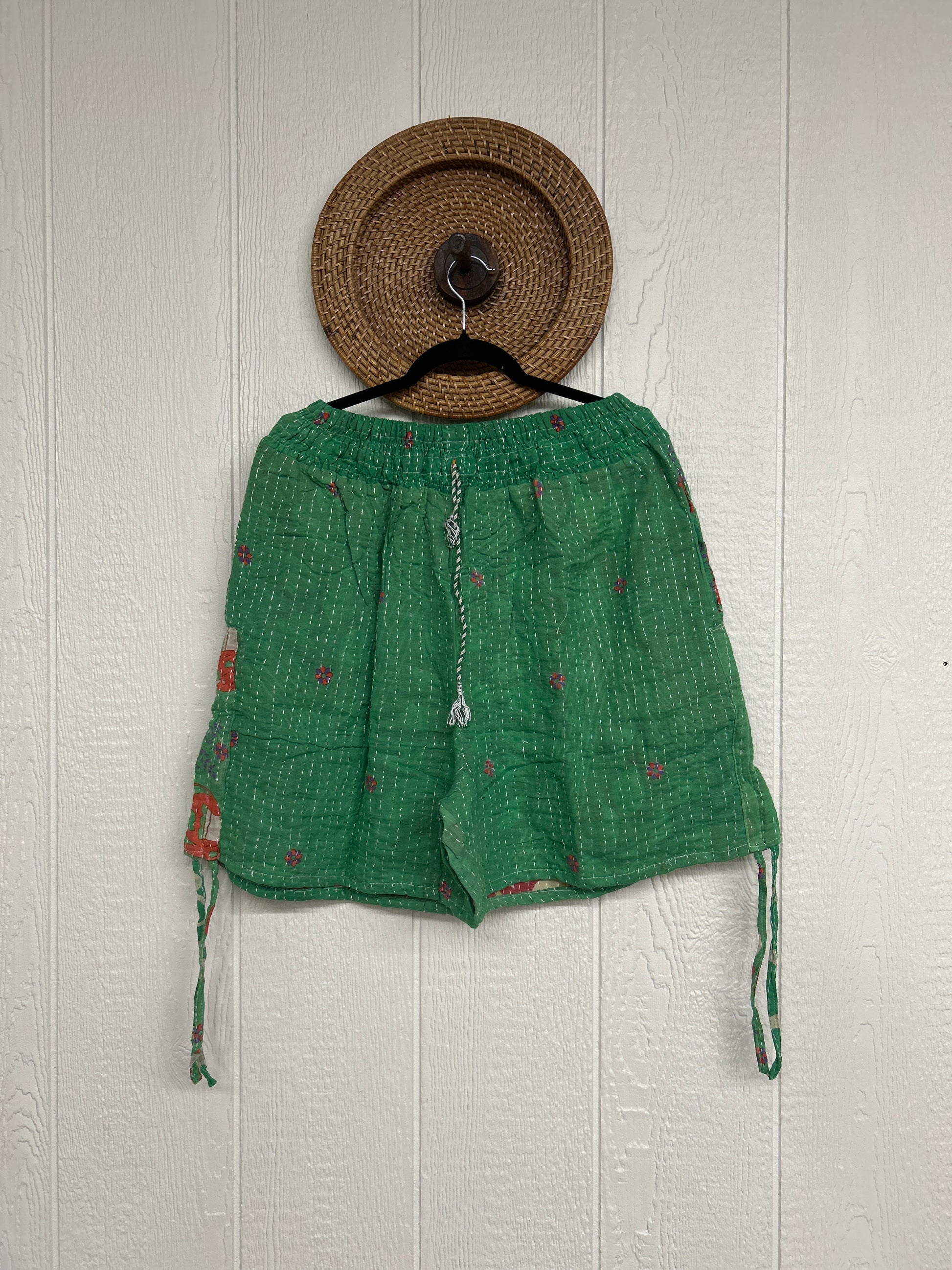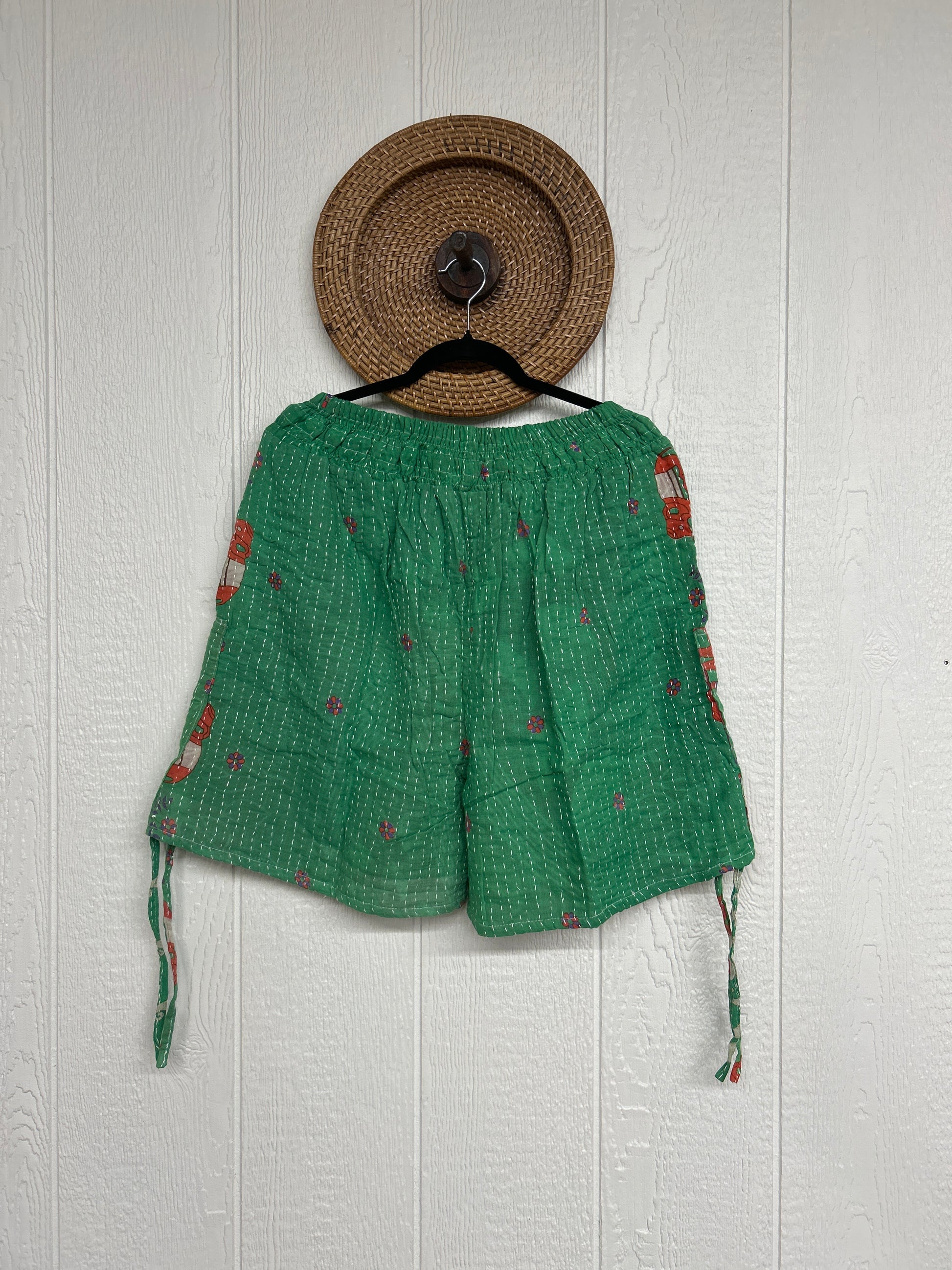 Crafted from our ultra lux vintage cotton Kantha stitched sari. Features interior pockets, a smocked waistband that is soft against the skin with an adjustable drawstring. This fully customizable piece also has a cinch drawstring on the outer leg so you can make the shorts longer or shorter. We are obsessed!