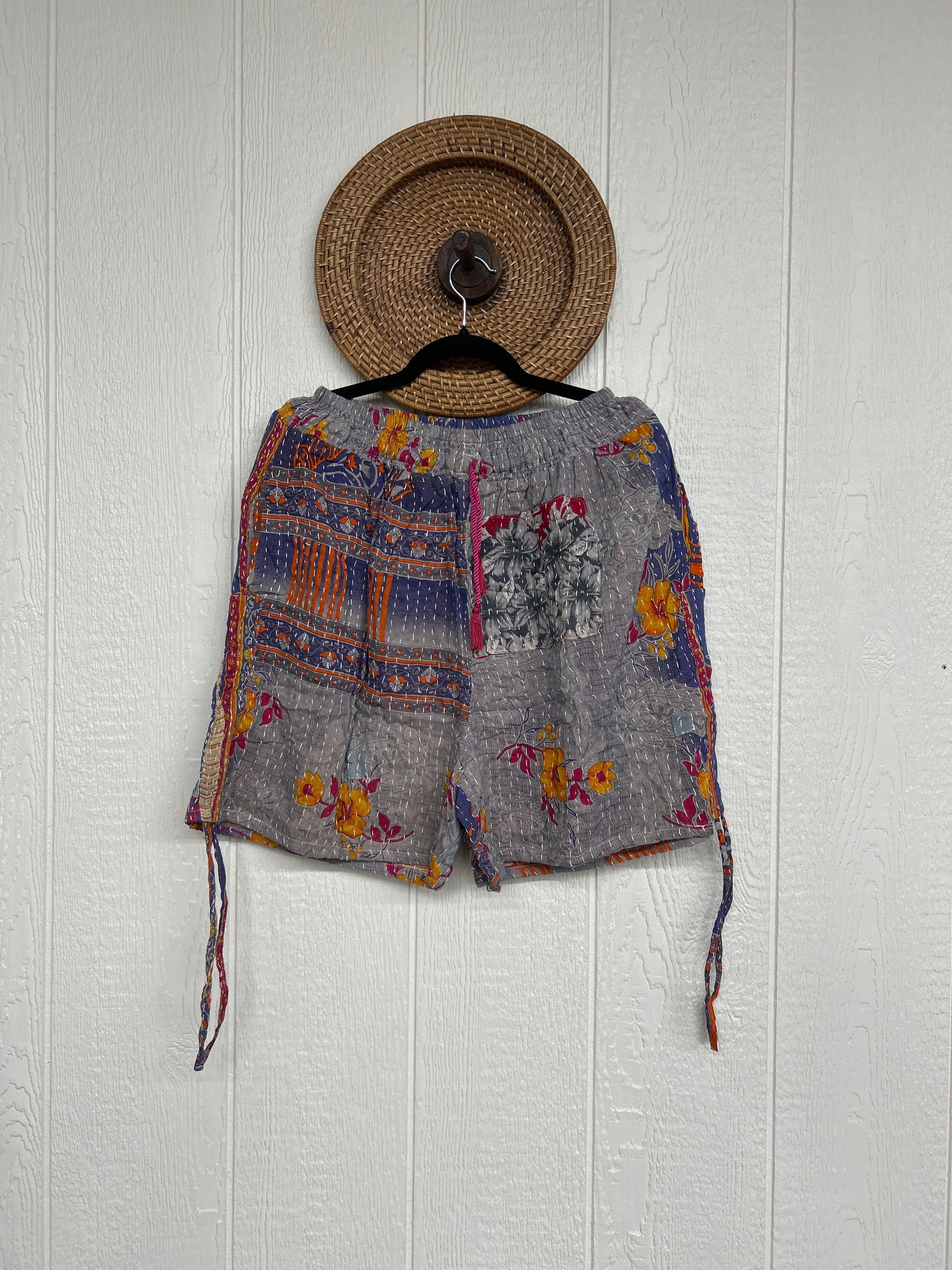 Crafted from our ultra lux vintage cotton Kantha stitched sari. Features interior pockets, a smocked waistband that is soft against the skin with an adjustable drawstring. This fully customizable piece also has a cinch drawstring on the outer leg so you can make the shorts longer or shorter. We are obsessed!