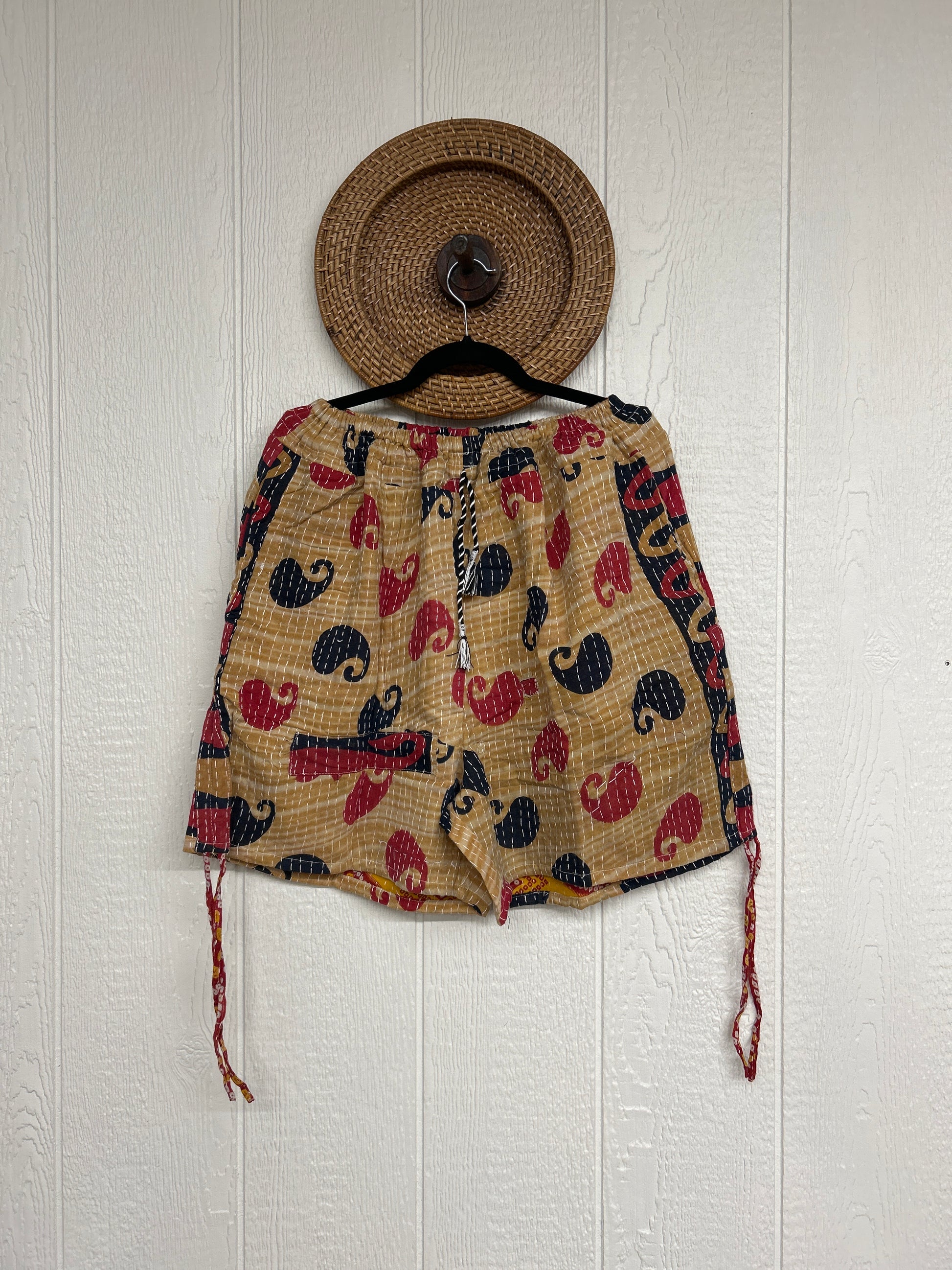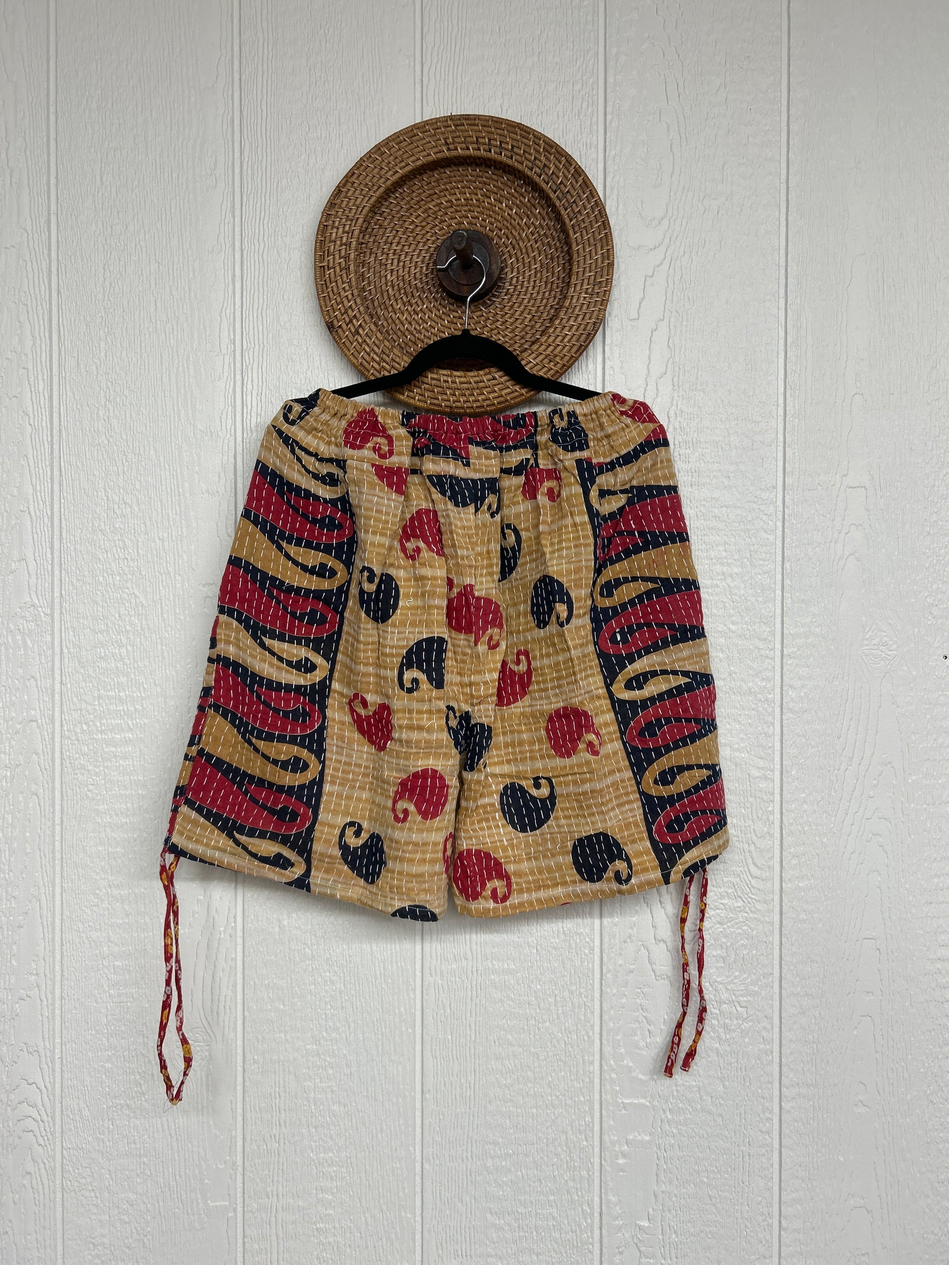 Crafted from our ultra lux vintage cotton Kantha stitched sari. Features interior pockets, a smocked waistband that is soft against the skin with an adjustable drawstring. This fully customizable piece also has a cinch drawstring on the outer leg so you can make the shorts longer or shorter. We are obsessed!