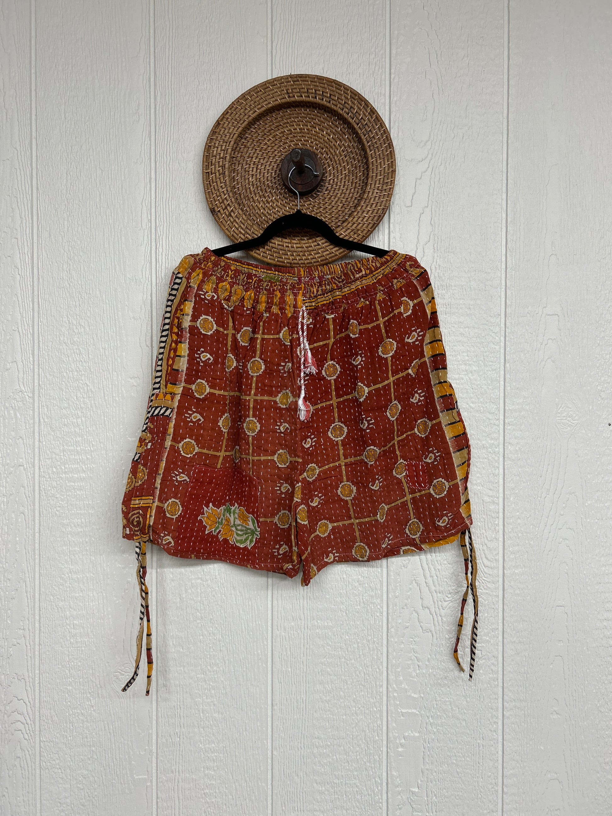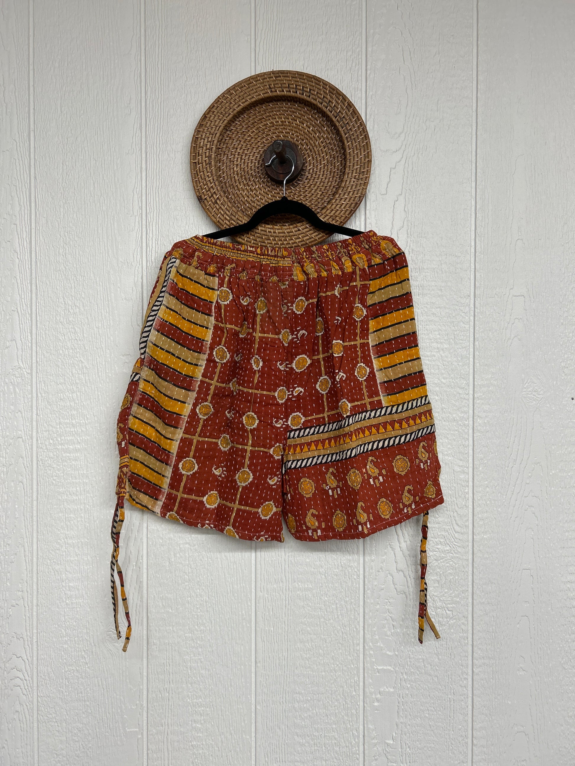 Crafted from our ultra lux vintage cotton Kantha stitched sari. Features interior pockets, a smocked waistband that is soft against the skin with an adjustable drawstring. This fully customizable piece also has a cinch drawstring on the outer leg so you can make the shorts longer or shorter. We are obsessed!