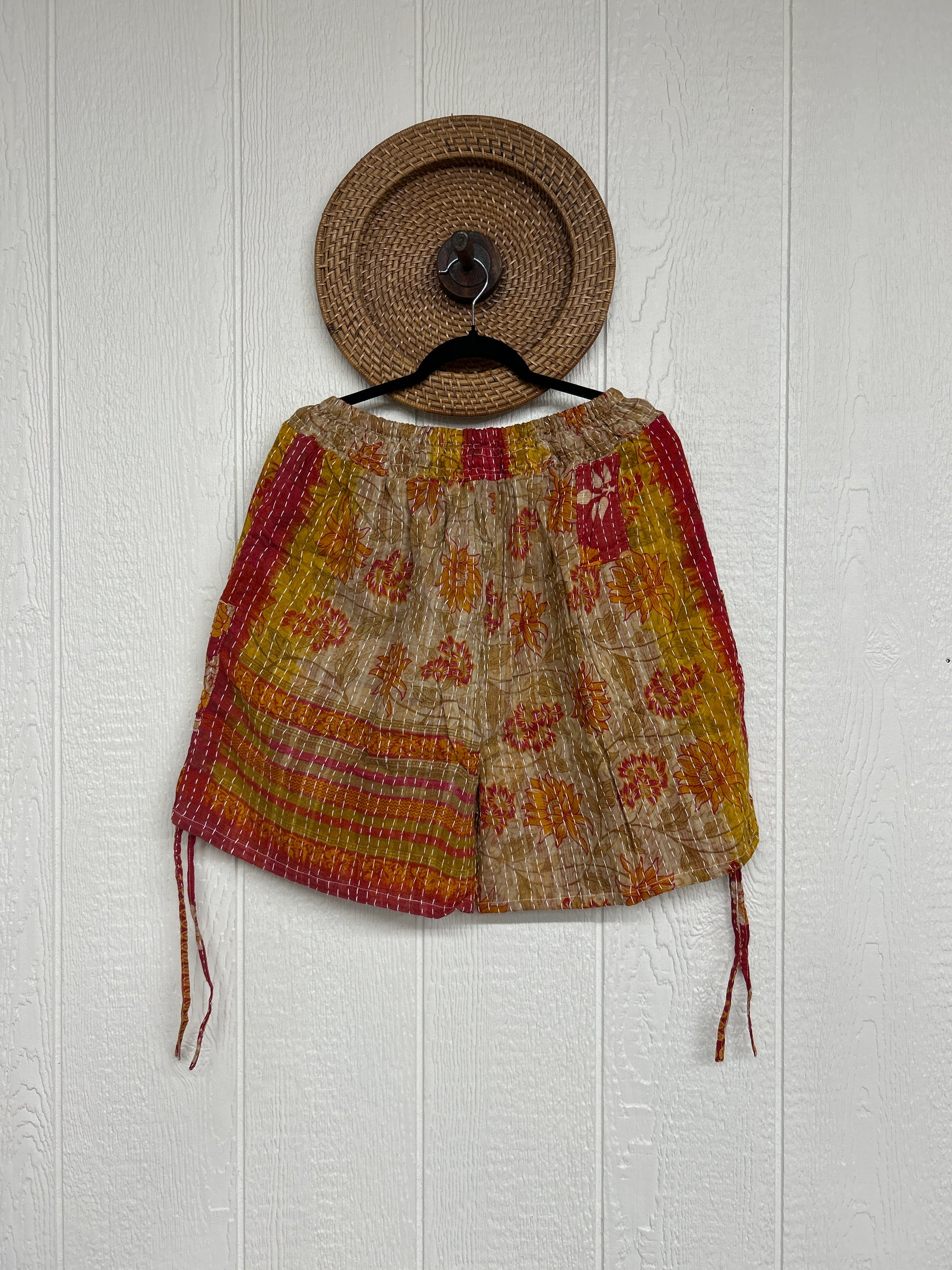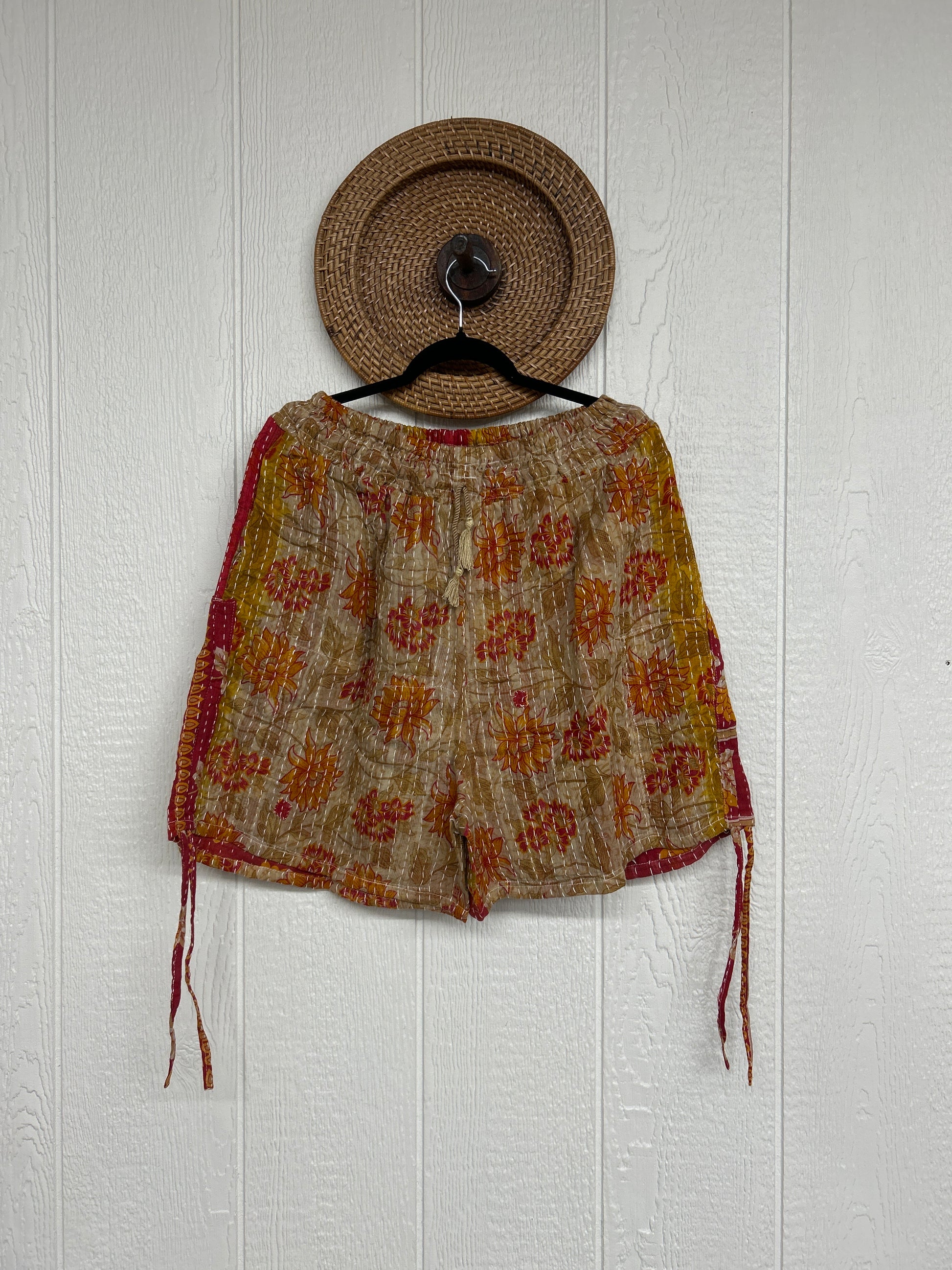 Crafted from our ultra lux vintage cotton Kantha stitched sari. Features interior pockets, a smocked waistband that is soft against the skin with an adjustable drawstring. This fully customizable piece also has a cinch drawstring on the outer leg so you can make the shorts longer or shorter. We are obsessed!