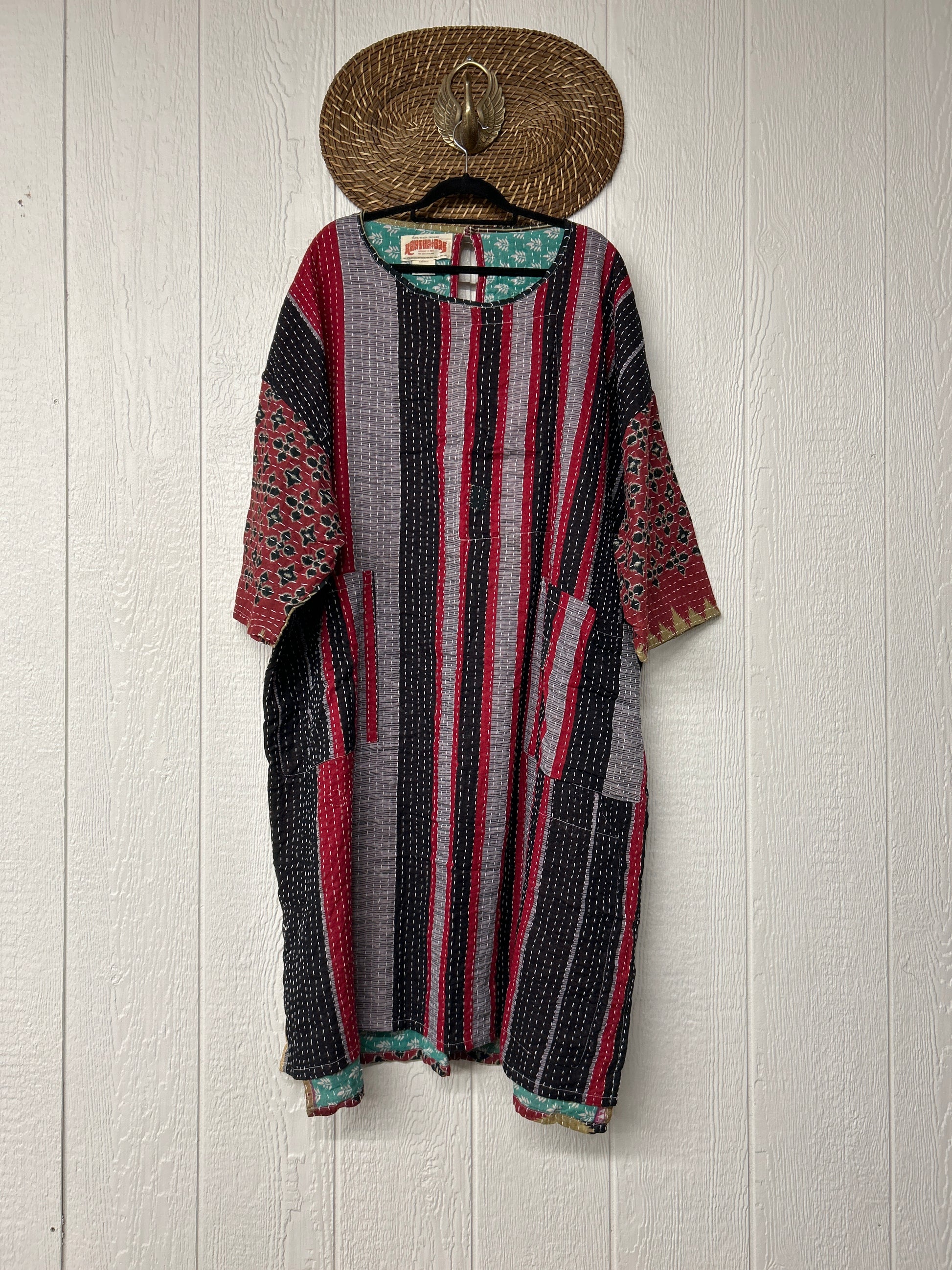 Features slouchy pockets, a scoop neckline, high low hem with side slits for extra dimension. The Kantha Dream Pullover Maxi is fully reversible giving you two maxi dresses in one. We know it will be your new go to.