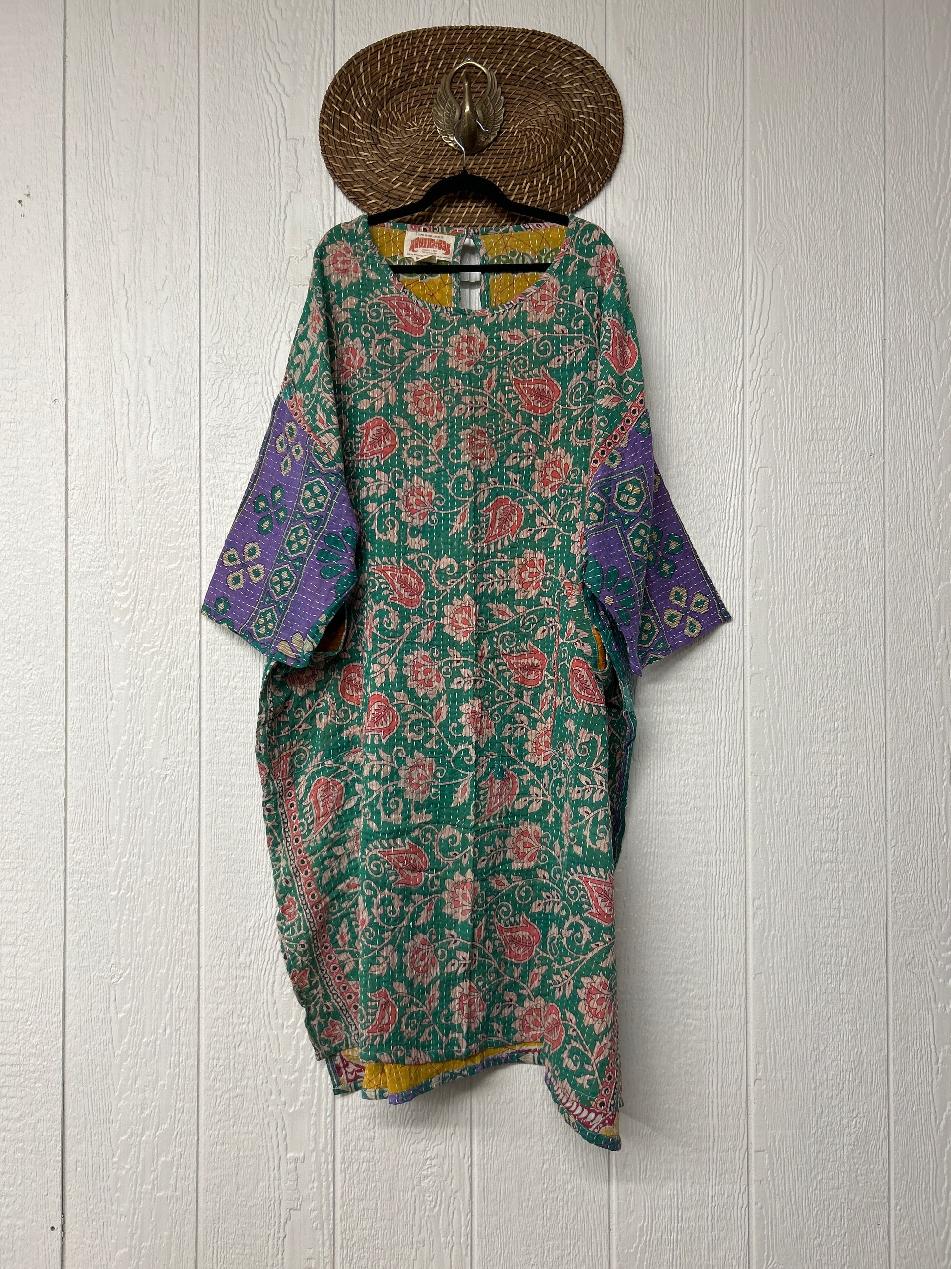 Features slouchy pockets, a scoop neckline, high low hem with side slits for extra dimension. The Kantha Dream Pullover Maxi is fully reversible giving you two maxi dresses in one. We know it will be your new go to.