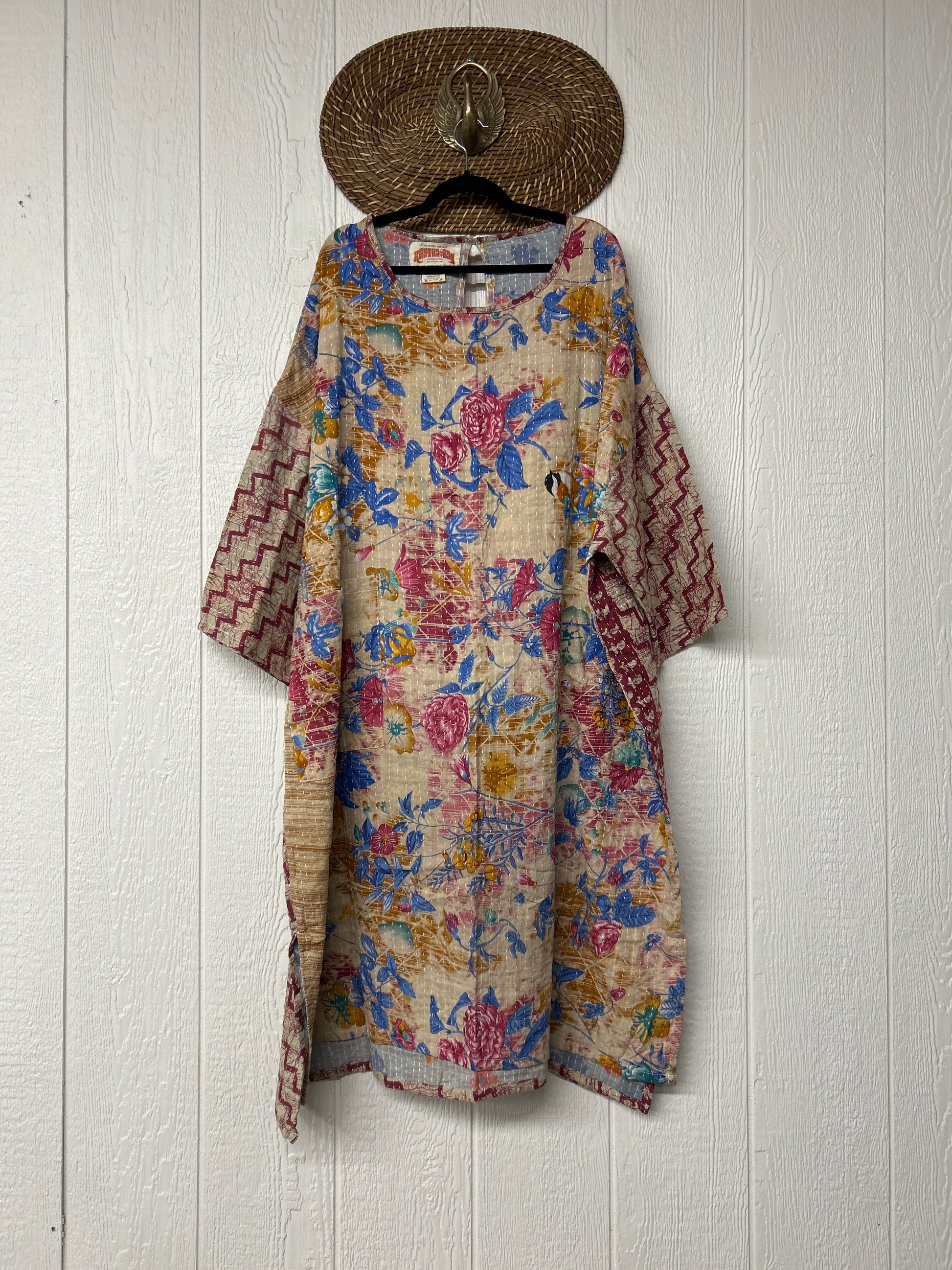 Crafted from our ultra lux vintage cotton kantha stitched sari this tunic is based on our best selling dream line pullover as a maxi!