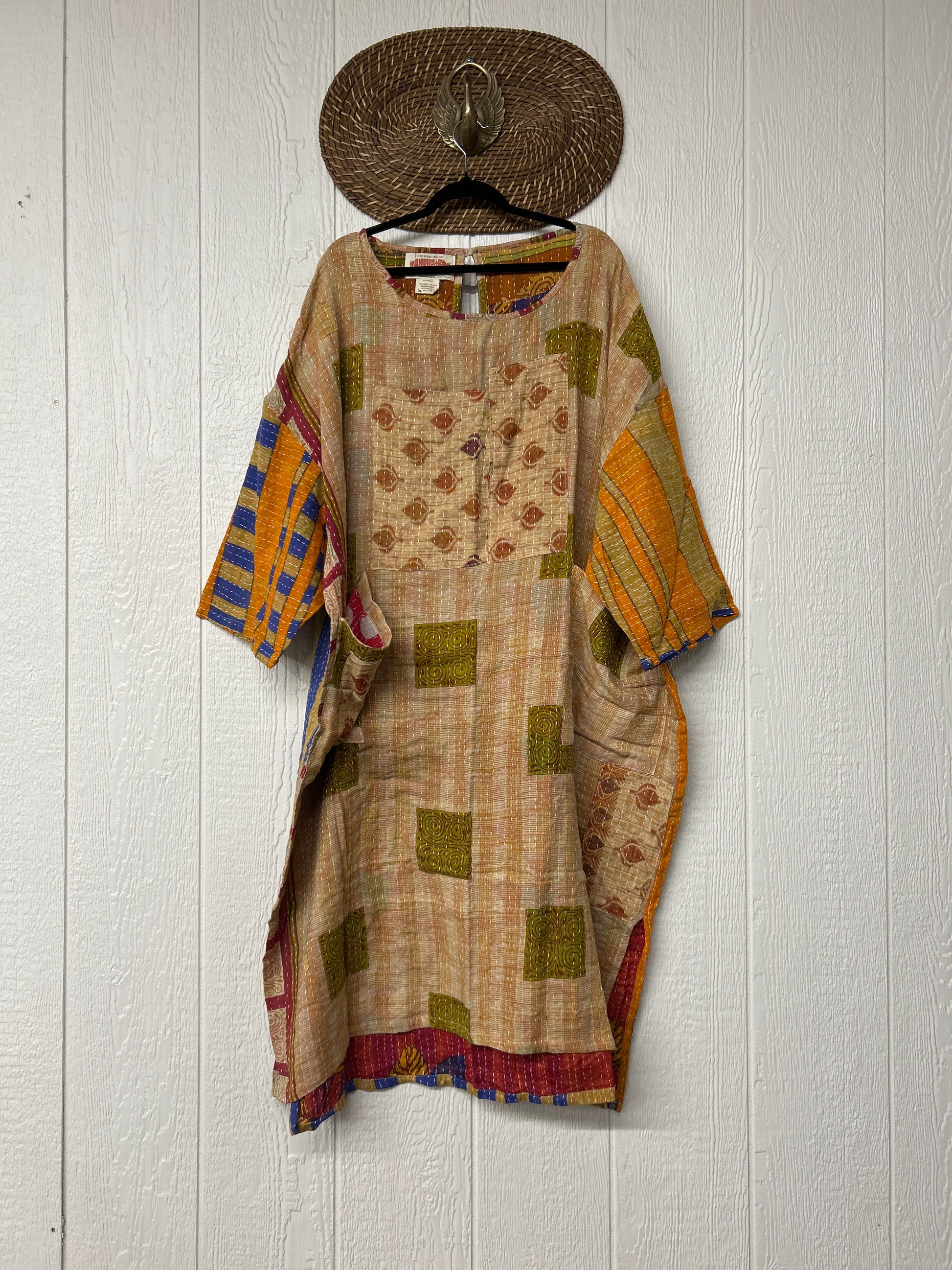 Crafted from our ultra lux vintage cotton kantha stitched sari this tunic is based on our best selling dream line pullover as a maxi!