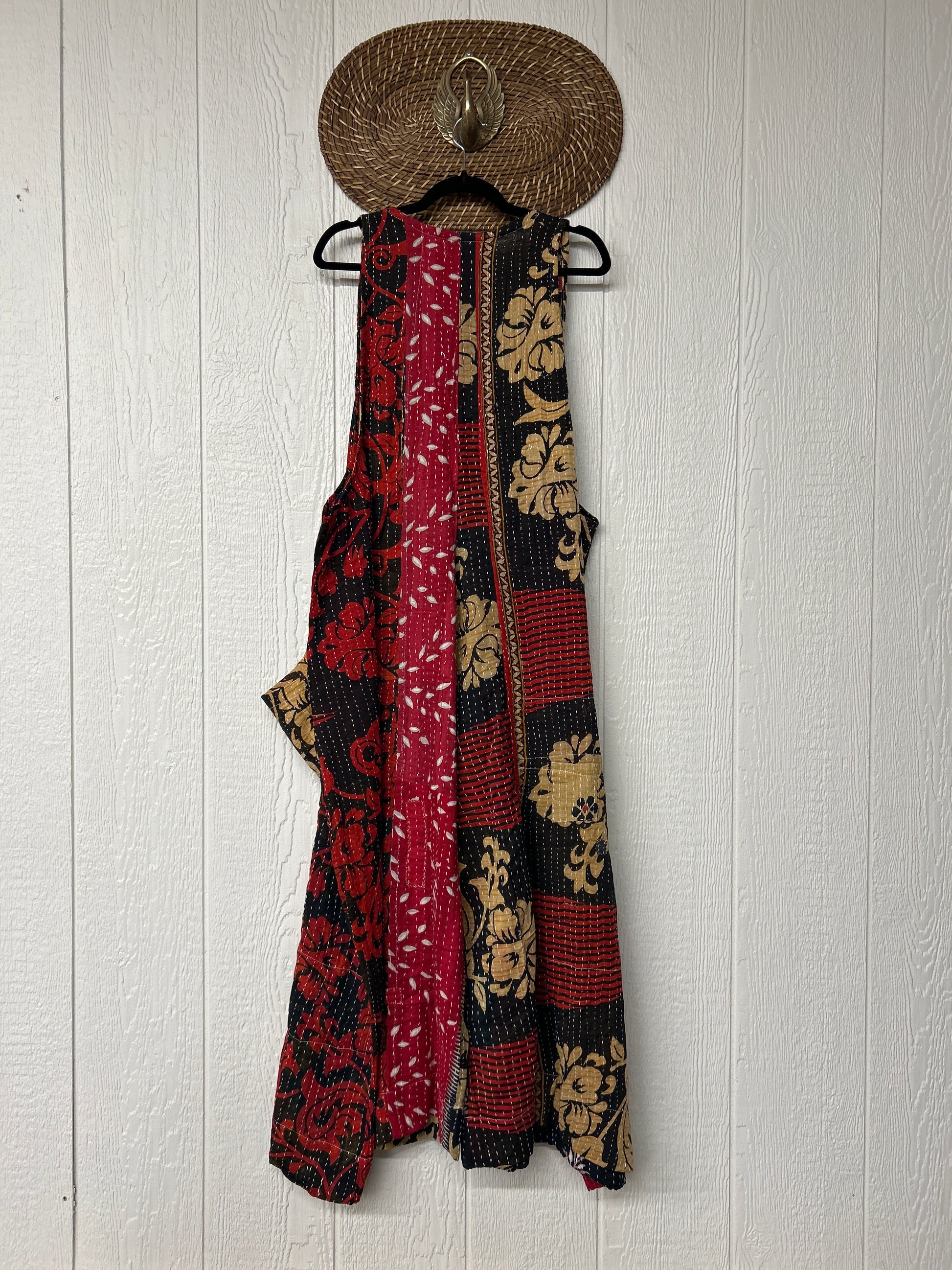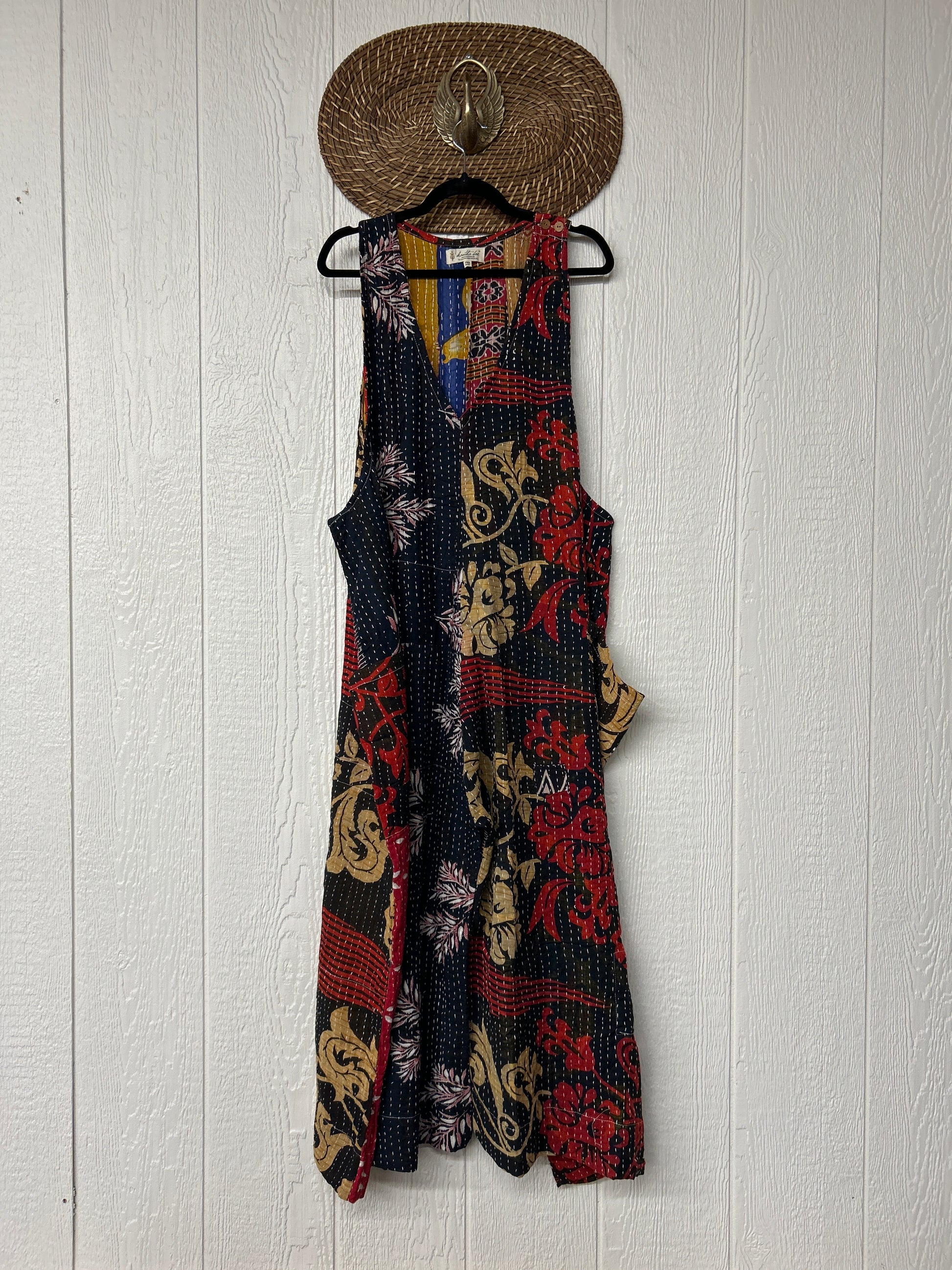 Our jumpsuit is made from our vintage kantha embroidered sari.