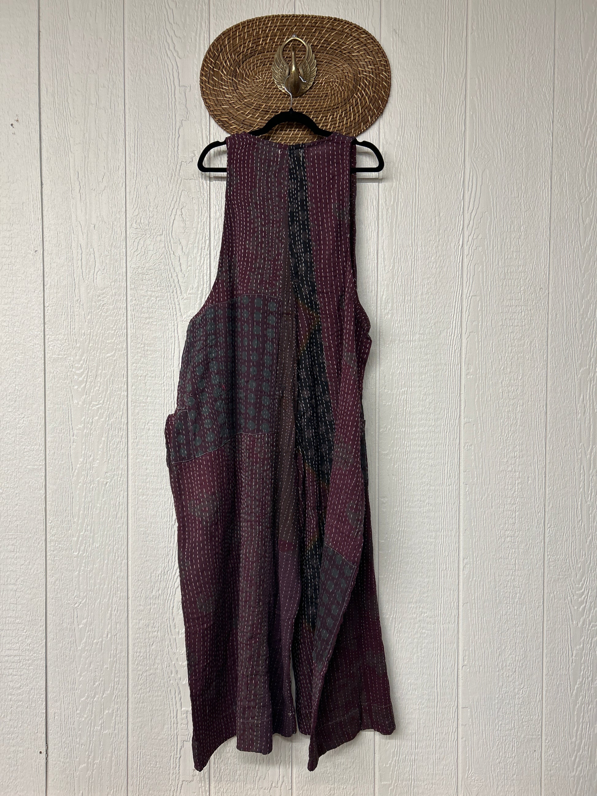 Our jumpsuit is made from our vintage kantha embroidered sari.