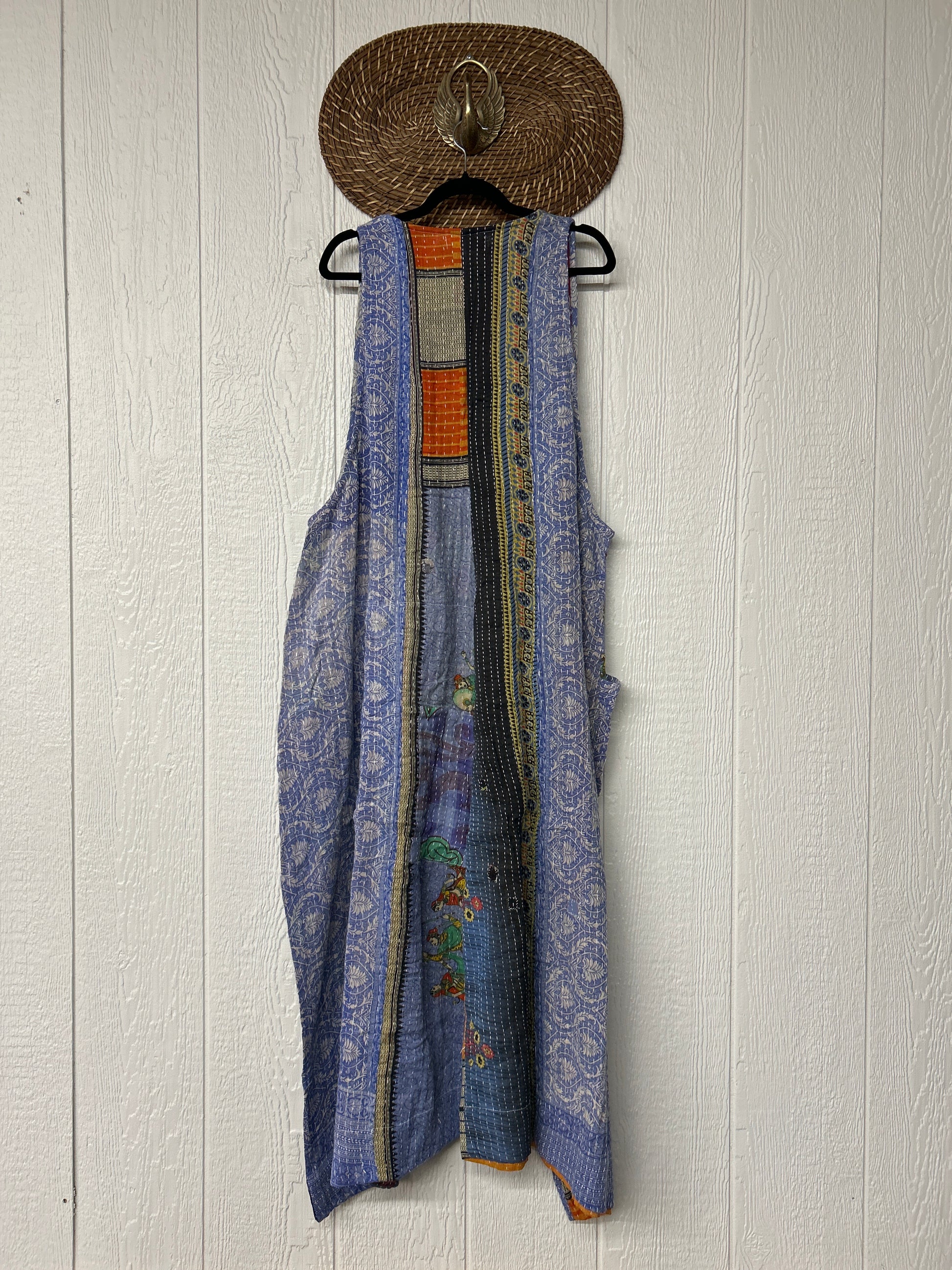 Our jumpsuit is made from our vintage kantha embroidered sari.