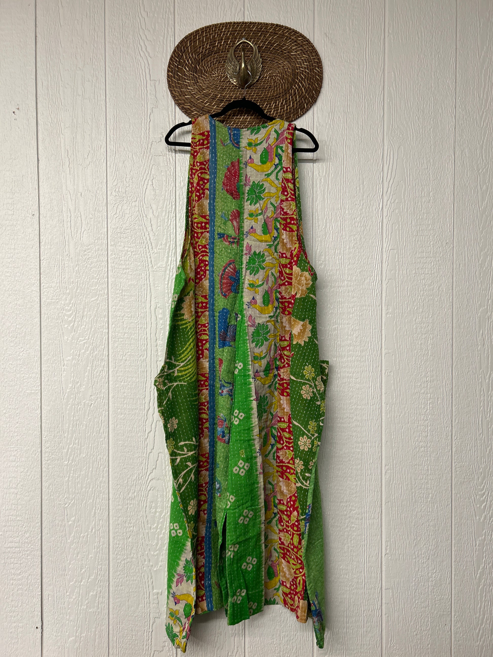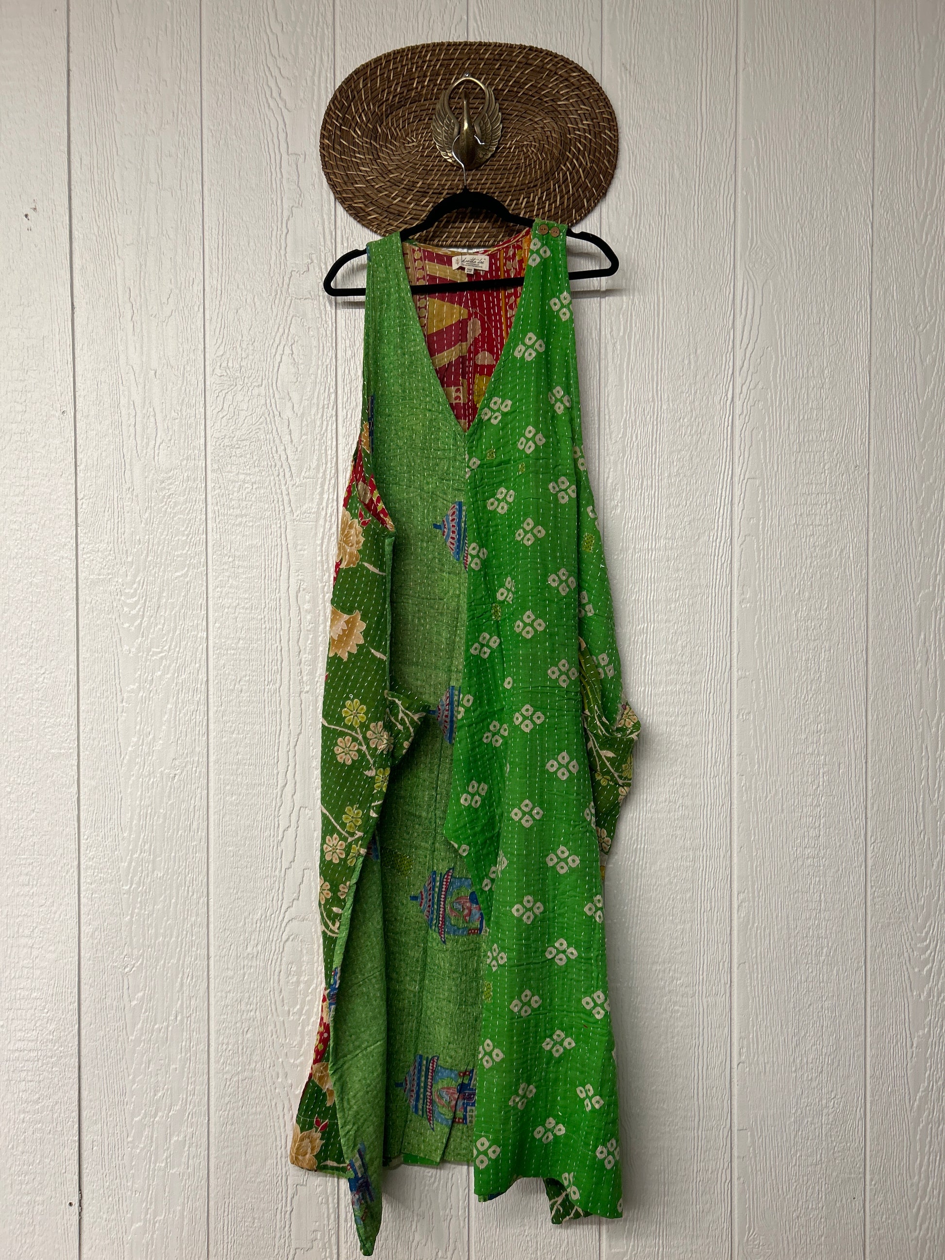 Our jumpsuit is made from our vintage kantha embroidered sari.
