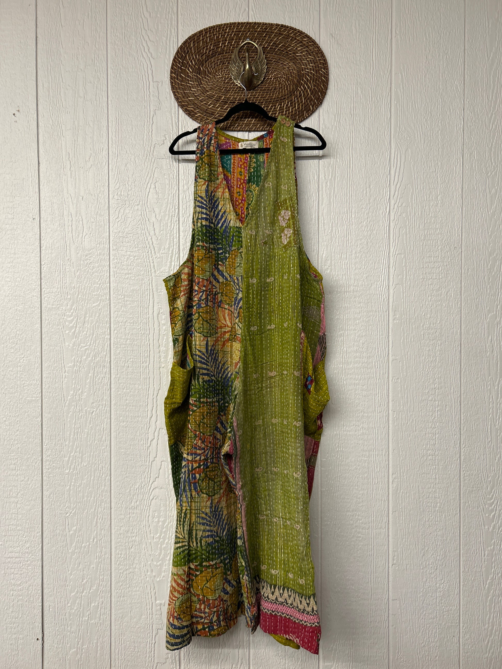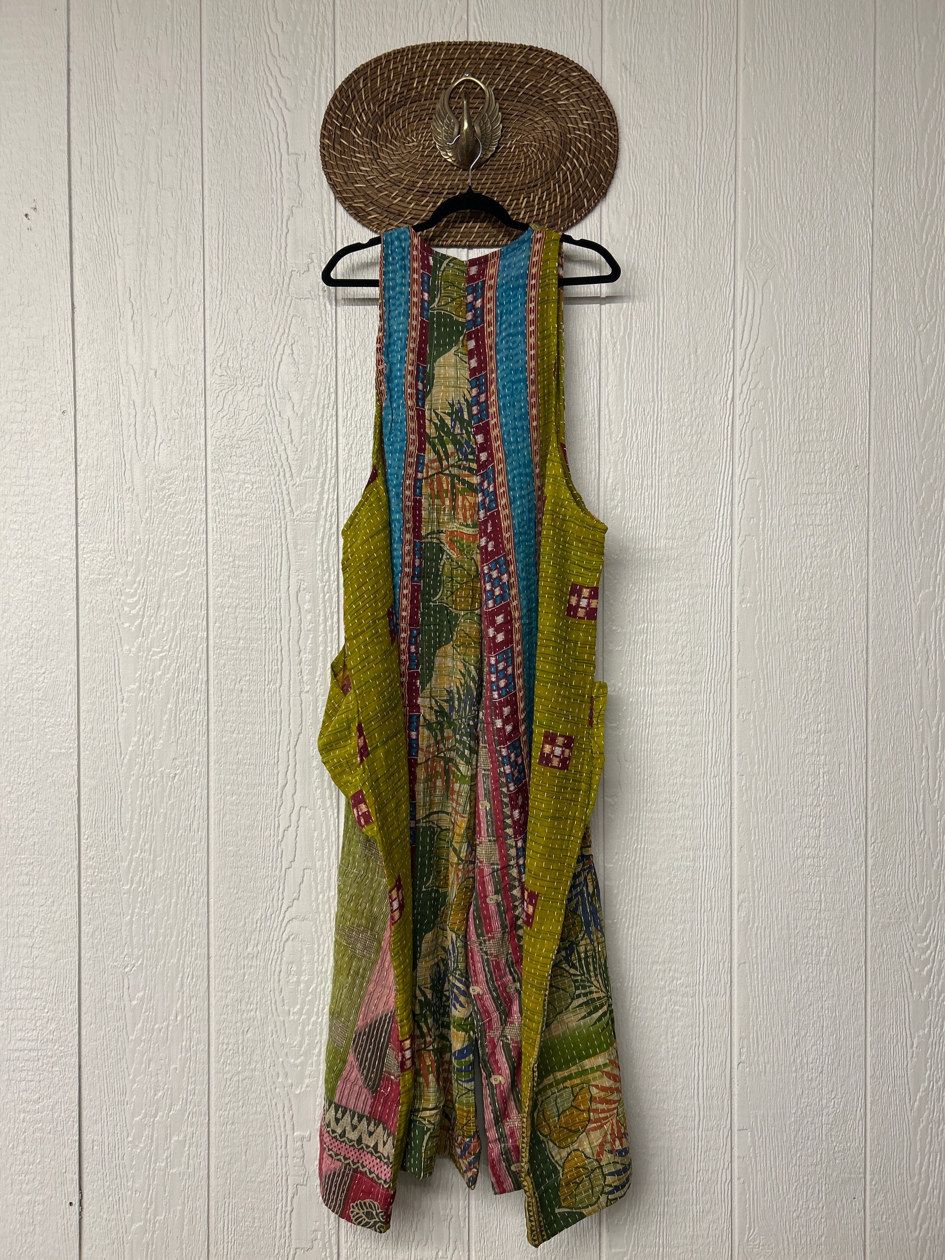 Our jumpsuit is made from our vintage kantha embroidered sari.