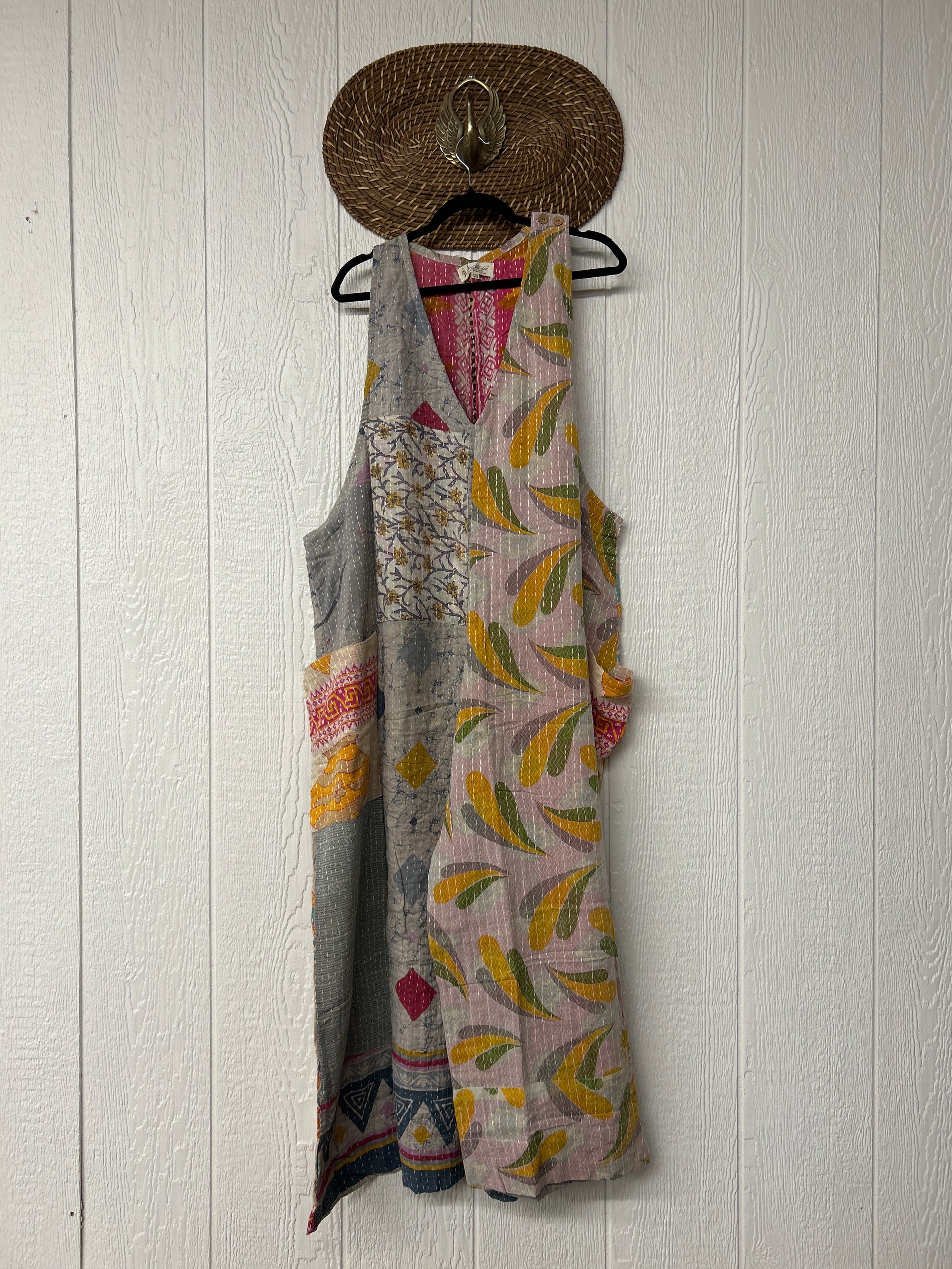 Our jumpsuit is made from our vintage kantha embroidered sari.