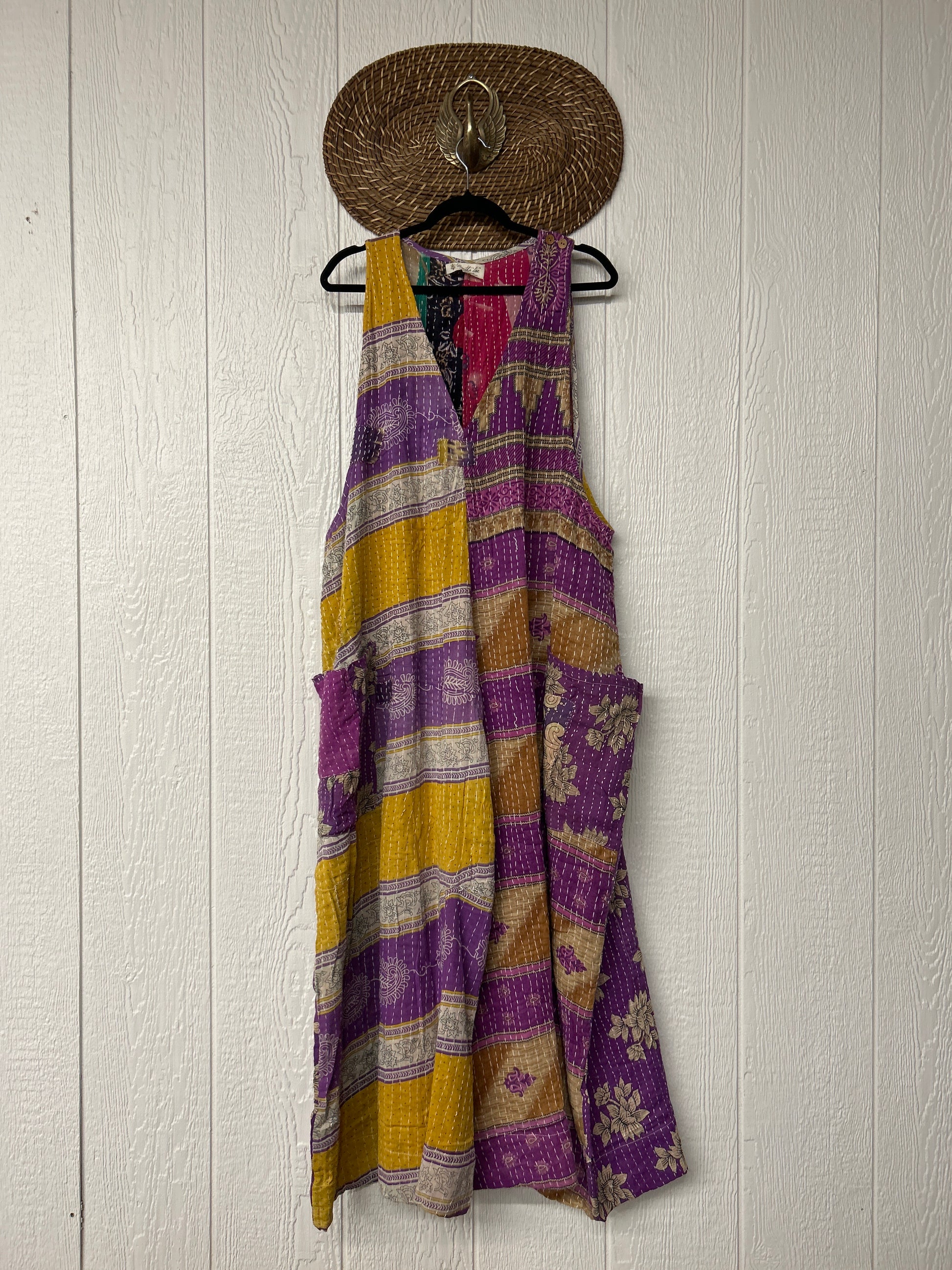 Our jumpsuit is made from our vintage kantha embroidered sari.