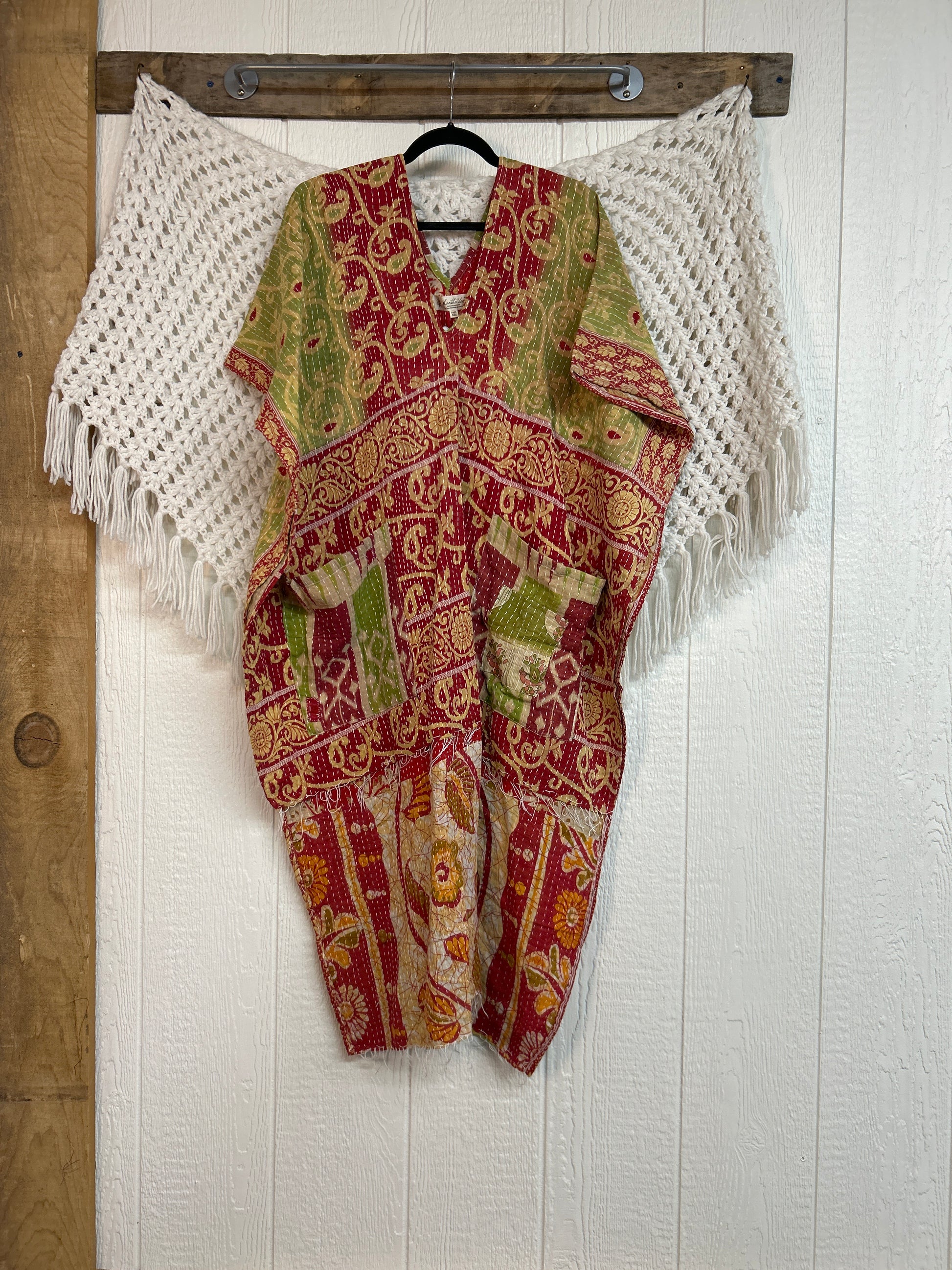 The Kantha Hi/Lo Tunic is a reversible, free-size, throw-on-and-go fashion must have! It features a gorgeous deep V-neck and long trailing back. Styles beautifully with your favorite vintage shorts, leggings, or bells.