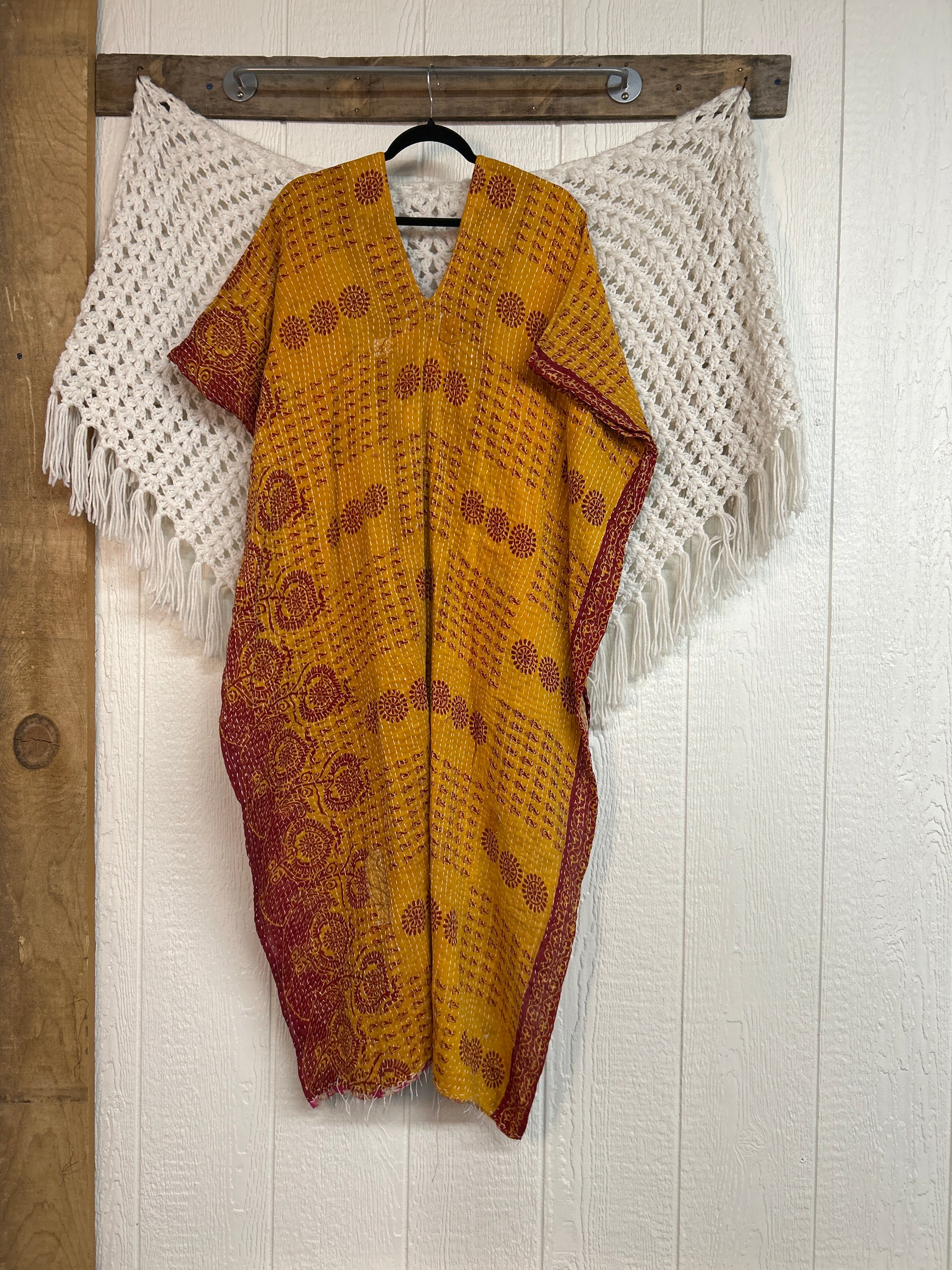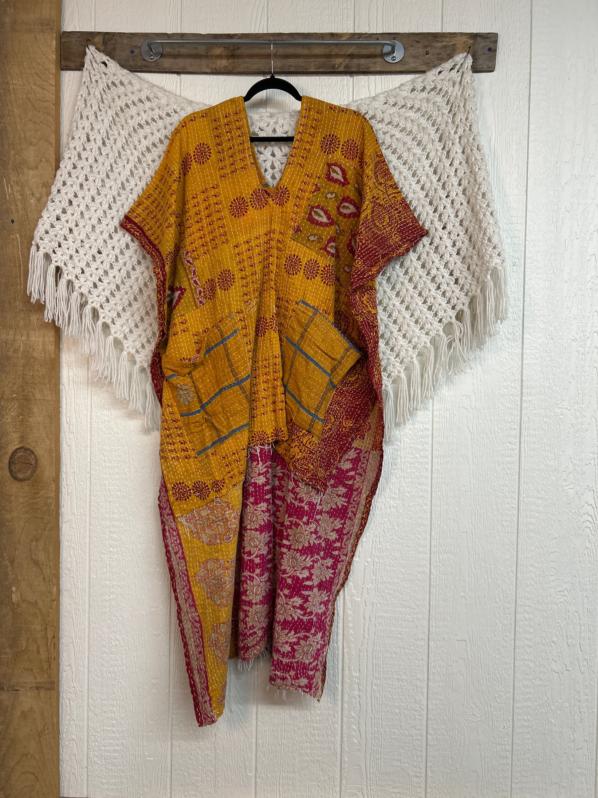 The Kantha Hi/Lo Tunic is a reversible, free-size, throw-on-and-go fashion must have! It features a gorgeous deep V-neck and long trailing back. Styles beautifully with your favorite vintage shorts, leggings, or bells.