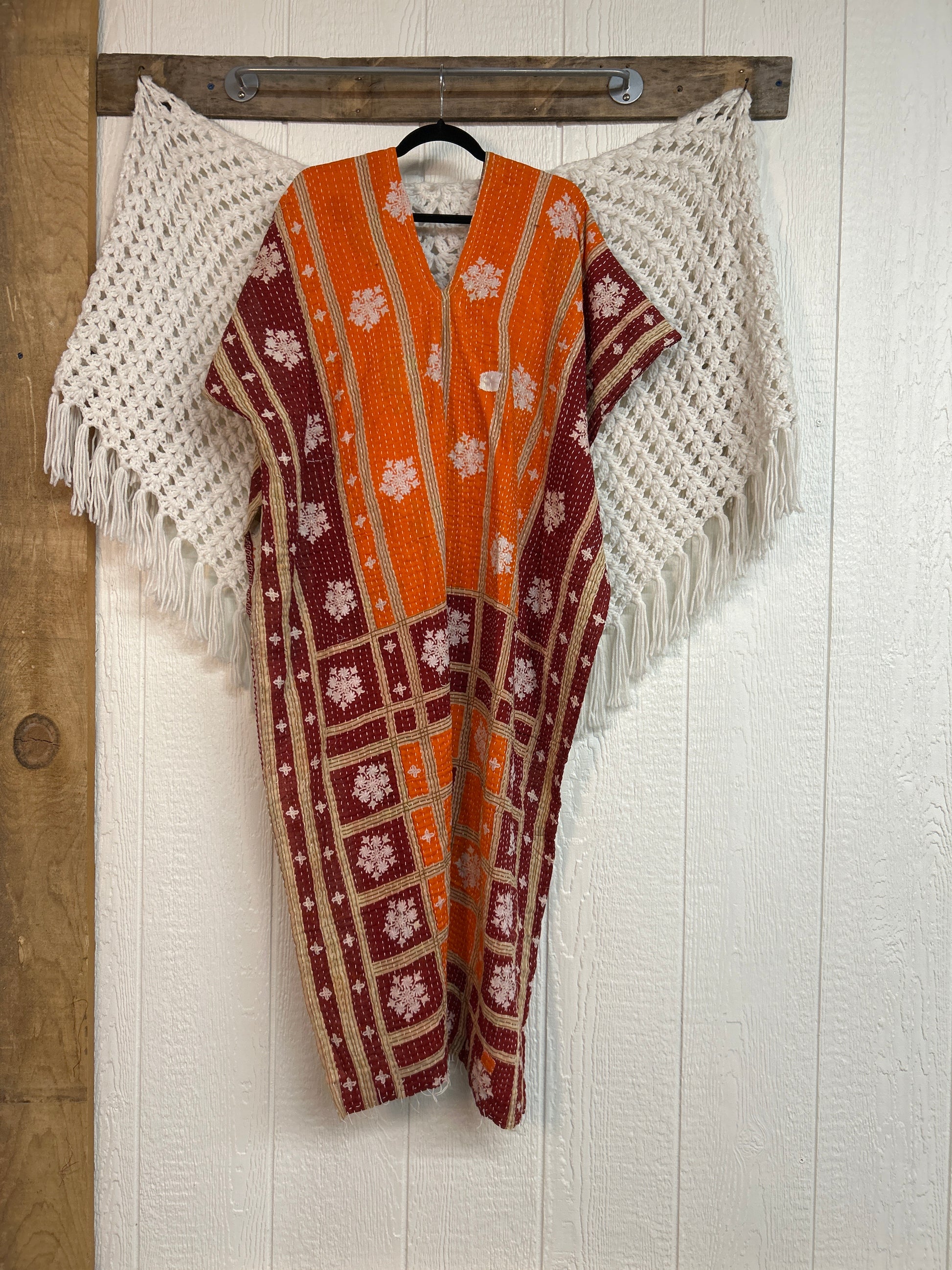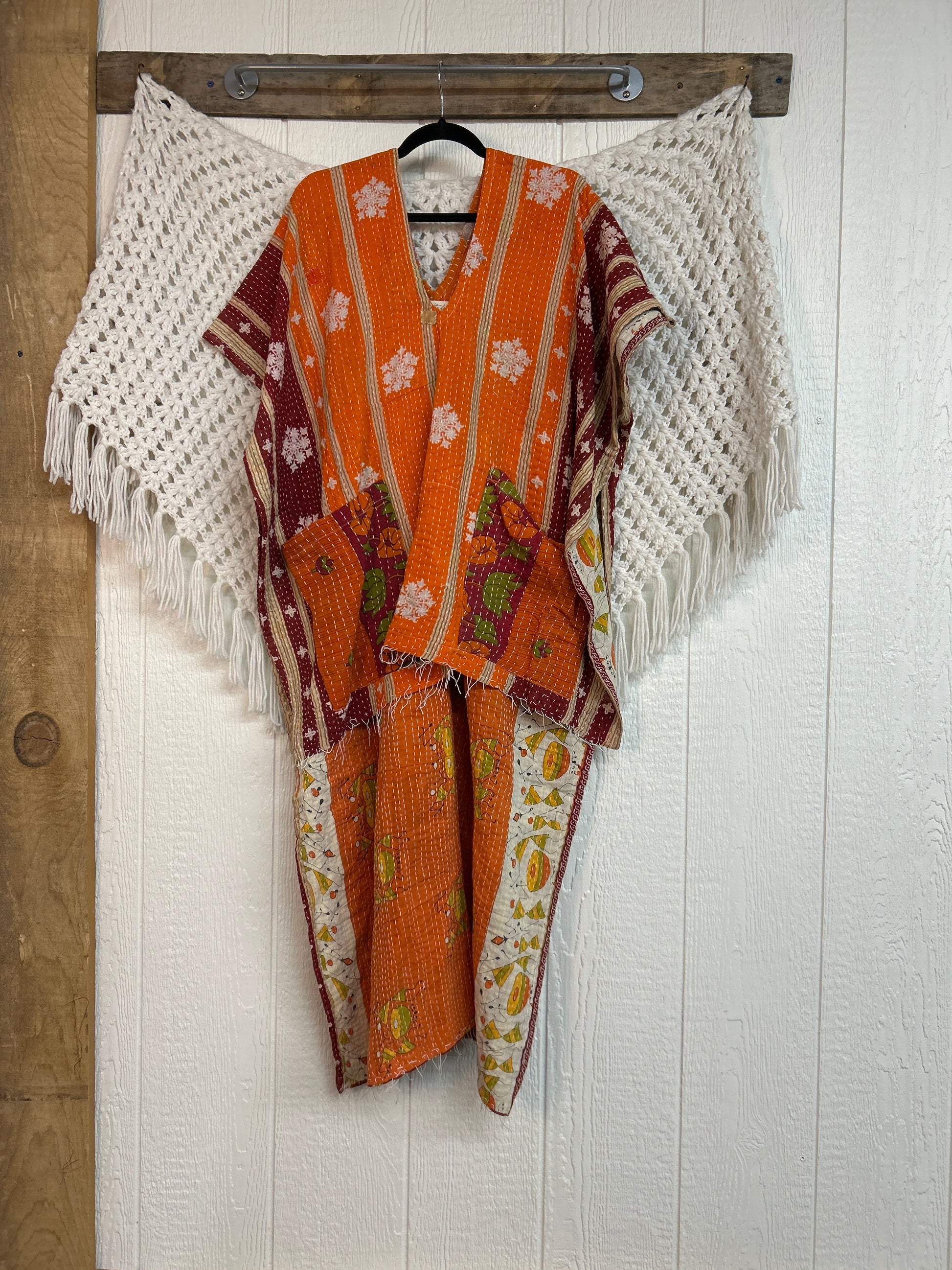 Disclosure: Our vintage styles have lived a full life before becoming the designs in our shop. Fabrics may have small threads or holes in the layers. Color inconsistency or small stains may be present. The saris are sewn together and extend the life of each design. Imperfections should be celebrated.