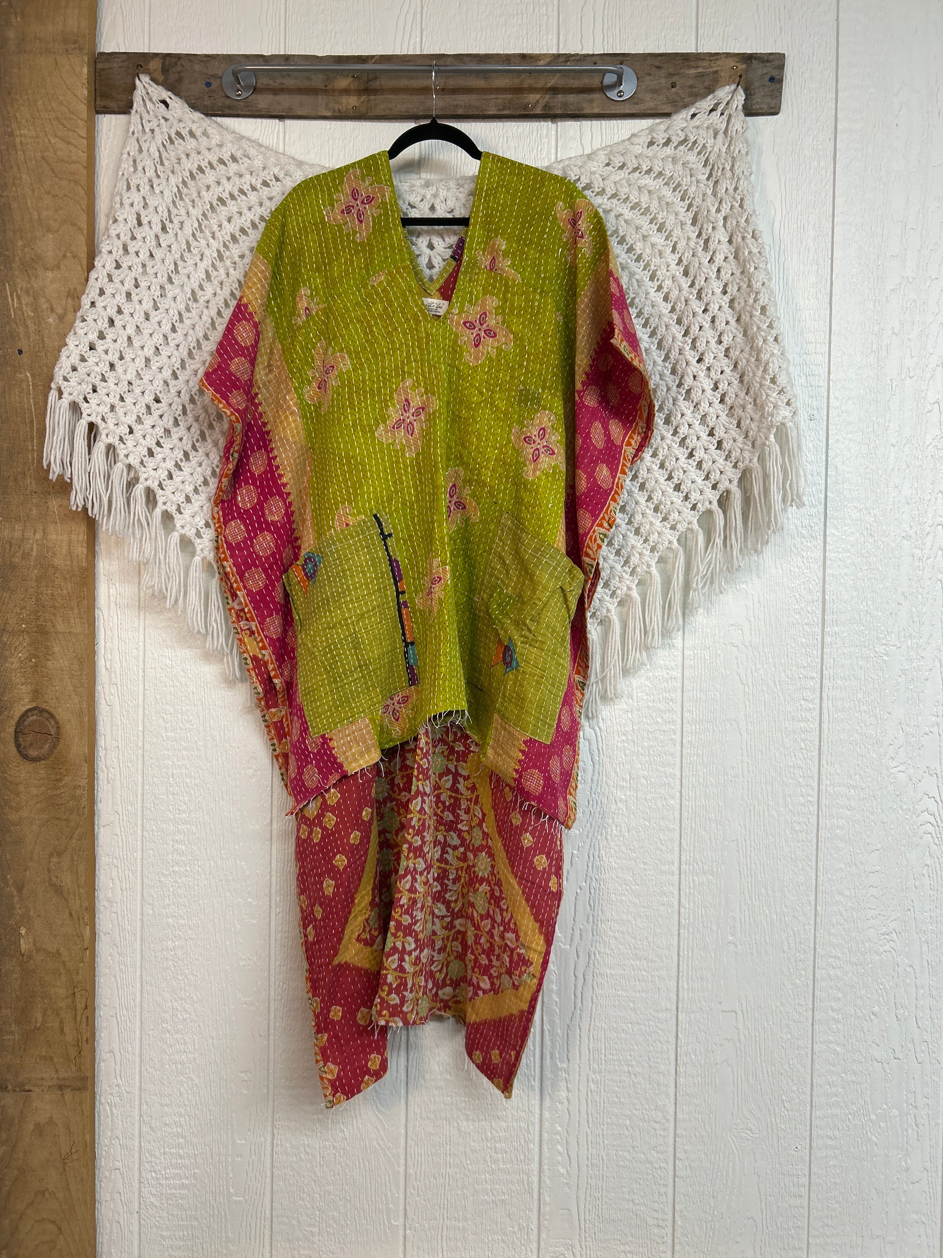 The Kantha Hi/Lo Tunic is a reversible, free-size, throw-on-and-go fashion must have! It features a gorgeous deep V-neck and long trailing back. Styles beautifully with your favorite vintage shorts, leggings, or bells.