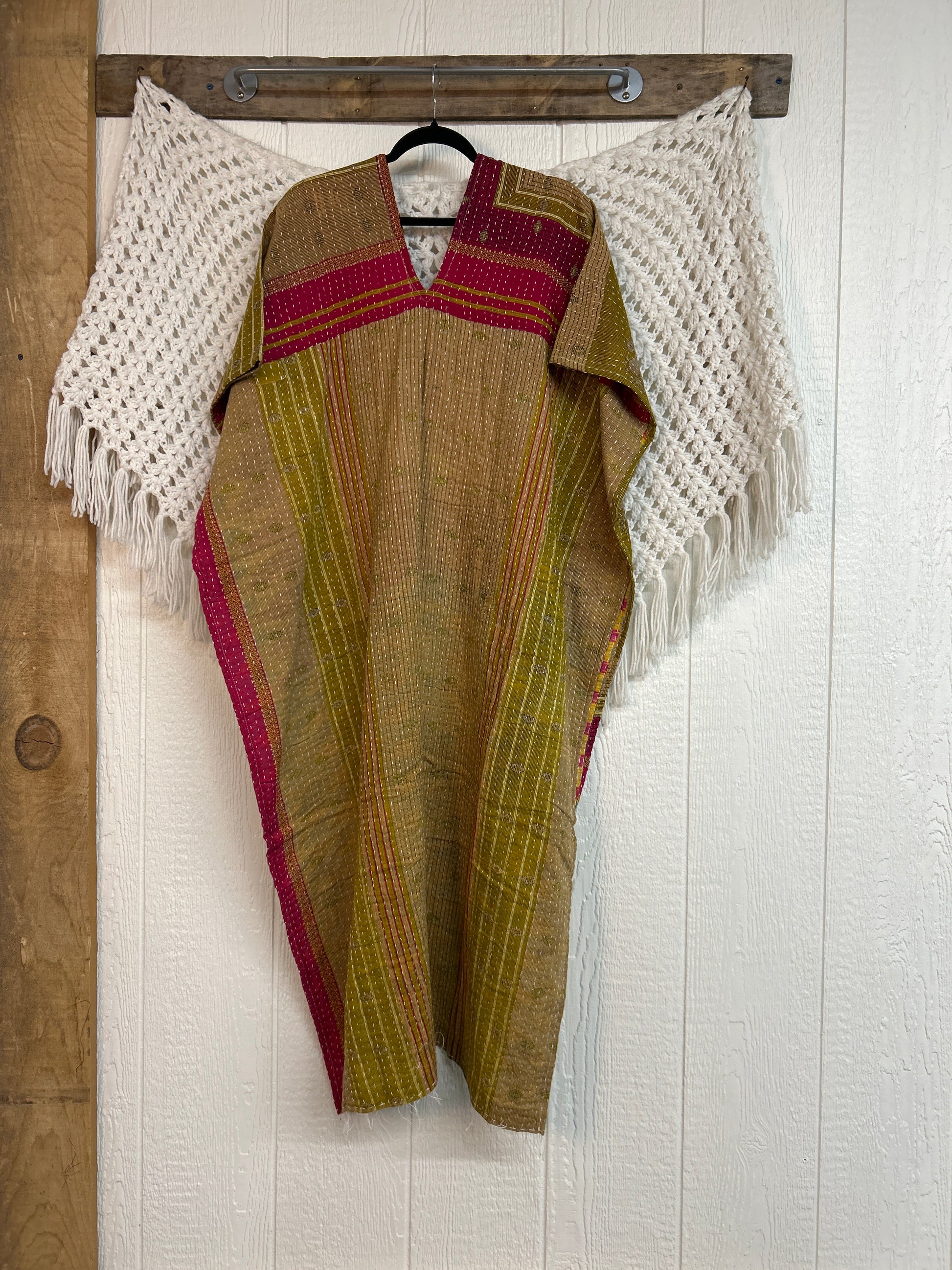 The Kantha Hi/Lo Tunic is a reversible, free-size, throw-on-and-go fashion must have! It features a gorgeous deep V-neck and long trailing back. Styles beautifully with your favorite vintage shorts, leggings, or bells.