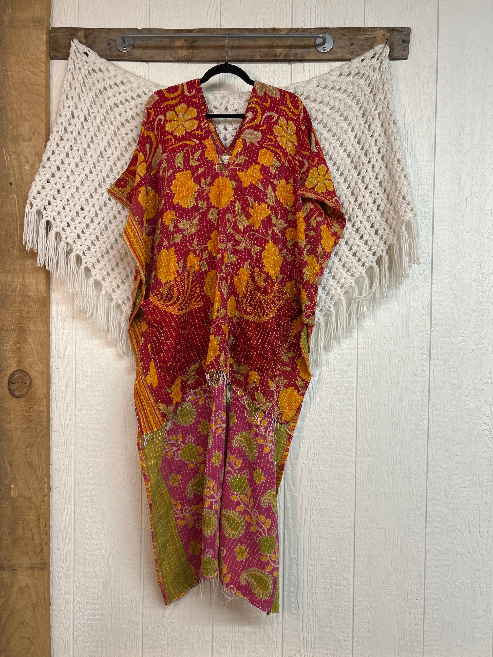 The Kantha Hi/Lo Tunic is a reversible, free-size, throw-on-and-go fashion must have! It features a gorgeous deep V-neck and long trailing back. Styles beautifully with your favorite vintage shorts, leggings, or bells.