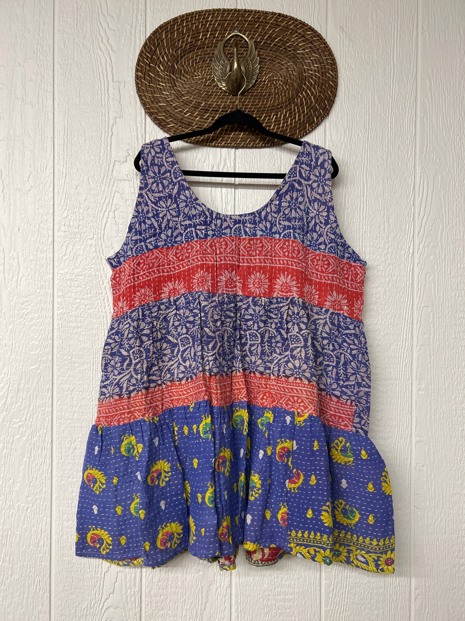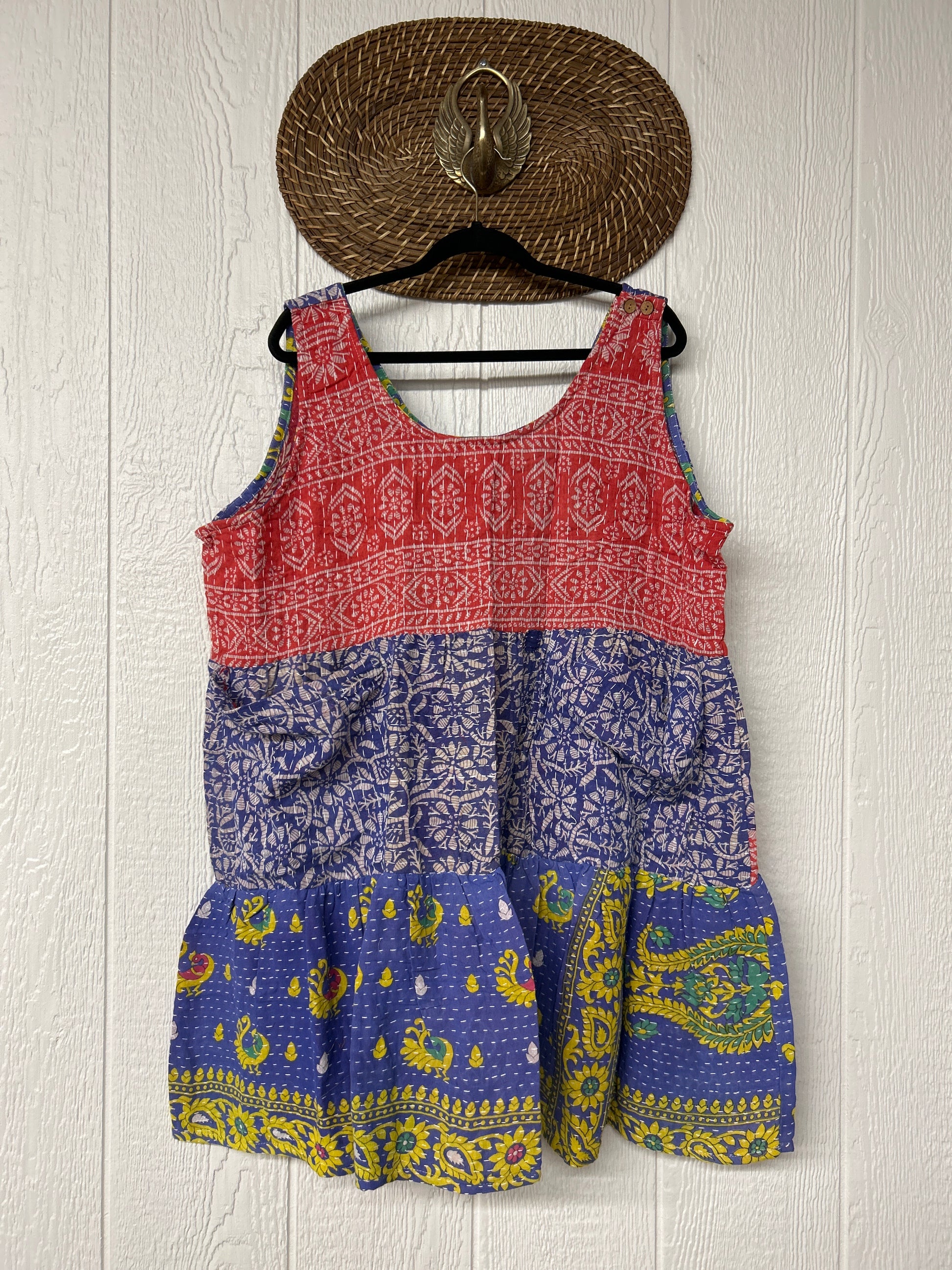 This sweet silhouette is crafted from our ultra lux Kantha stitched cotton sari. The Kantha Meadow Mini Dress features a button closure on the strap, deep interior front pockets, and a tiered bodice for extra twirling dimension!