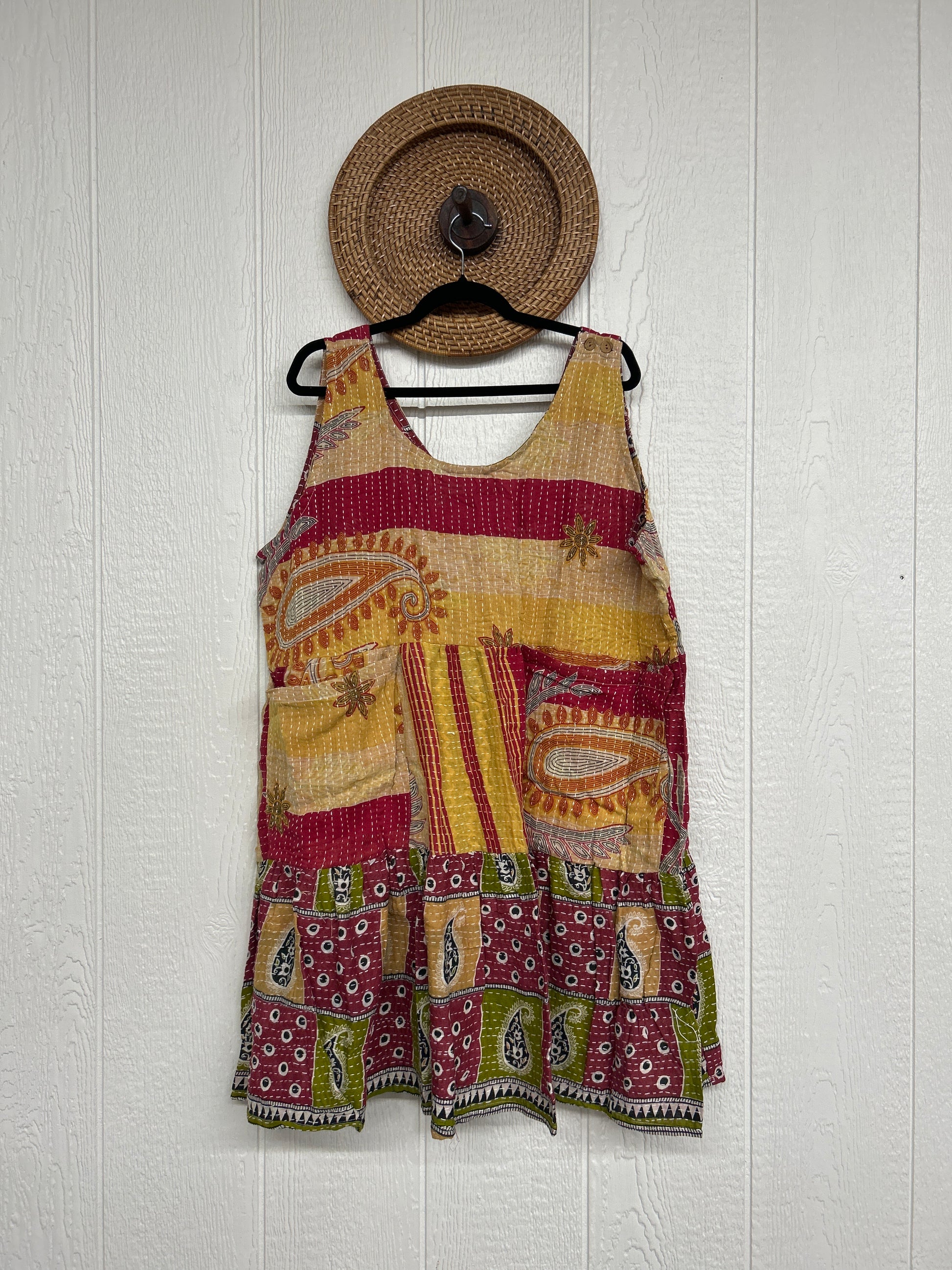 This sweet silhouette is crafted from our ultra lux Kantha stitched cotton sari. The Kantha Meadow Mini Dress features a button closure on the strap, deep interior front pockets, and a tiered bodice for extra twirling dimension!