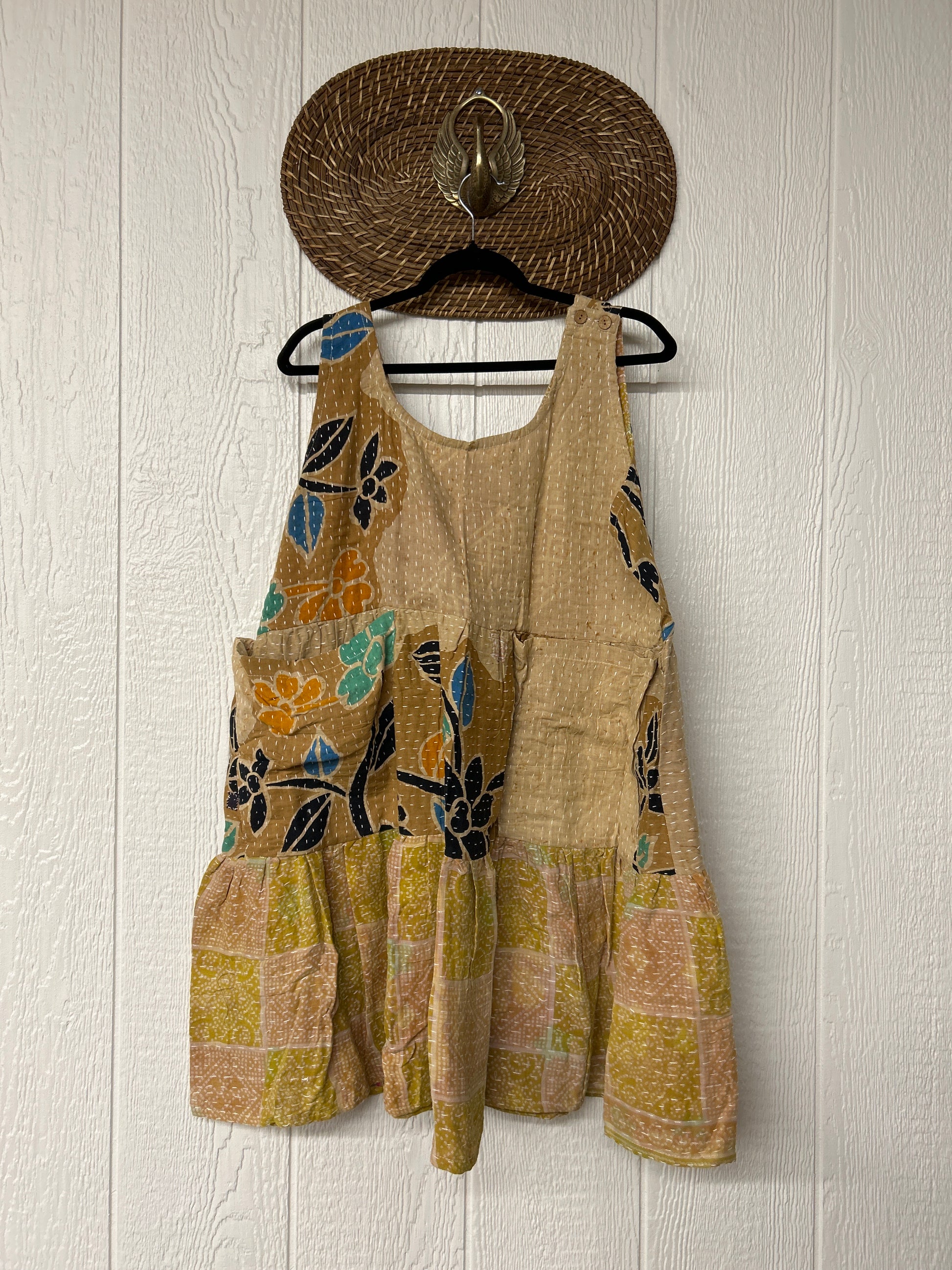 This sweet silhouette is crafted from our ultra lux Kantha stitched cotton sari. The Kantha Meadow Mini Dress features a button closure on the strap, deep interior front pockets, and a tiered bodice for extra twirling dimension!