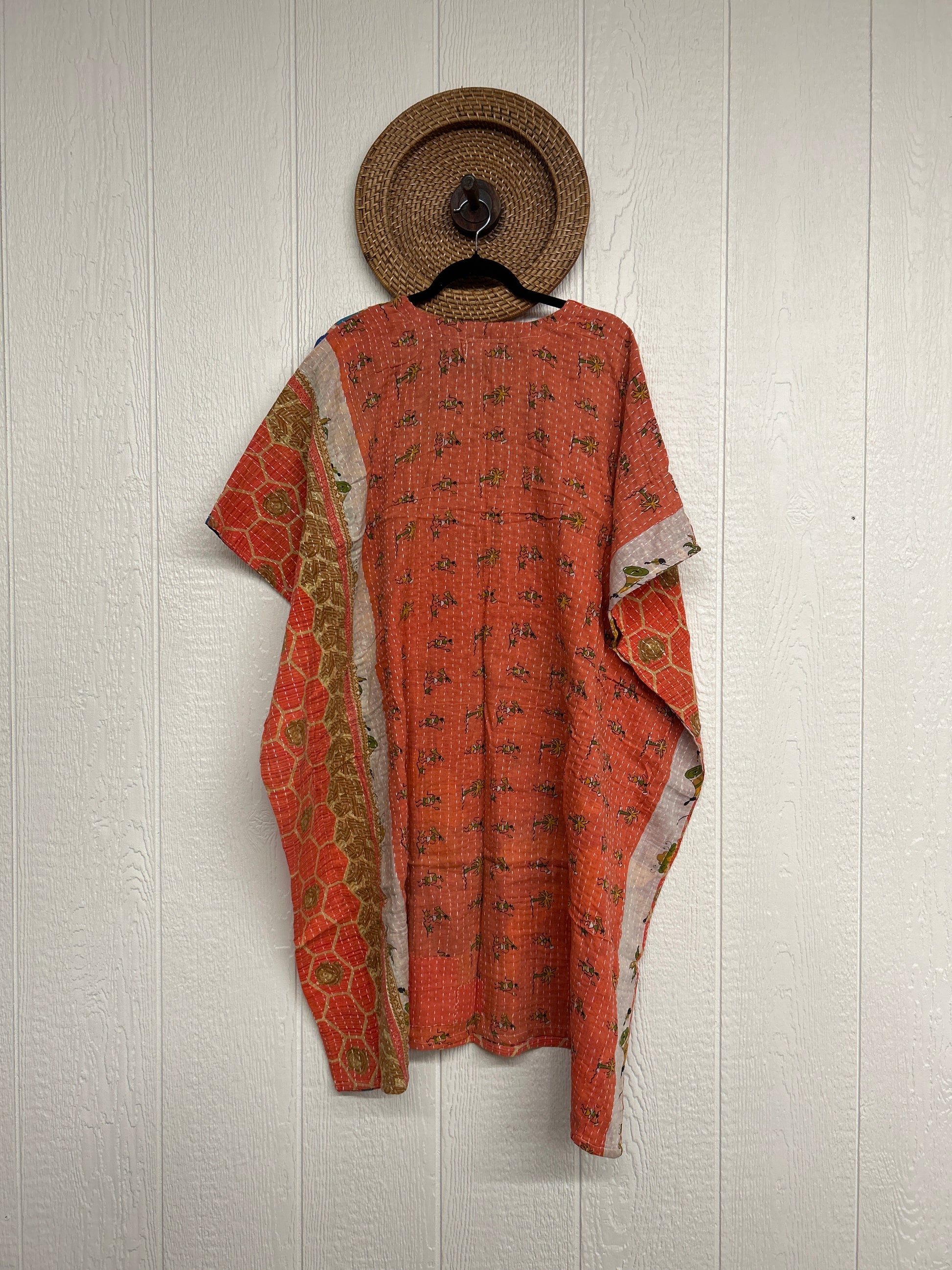 Crafted in our lux vintage Kantha stitch cotton sari, this floaty muu is in a new midi length with buttons at the neckline and slouchy exterior pockets.