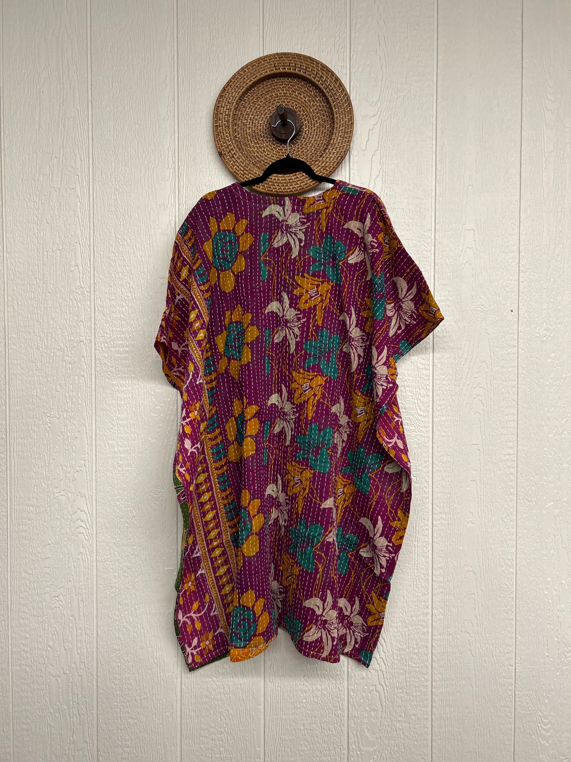 Crafted in our lux vintage Kantha stitch cotton sari, this floaty muu is in a new midi length with buttons at the neckline and slouchy exterior pockets.