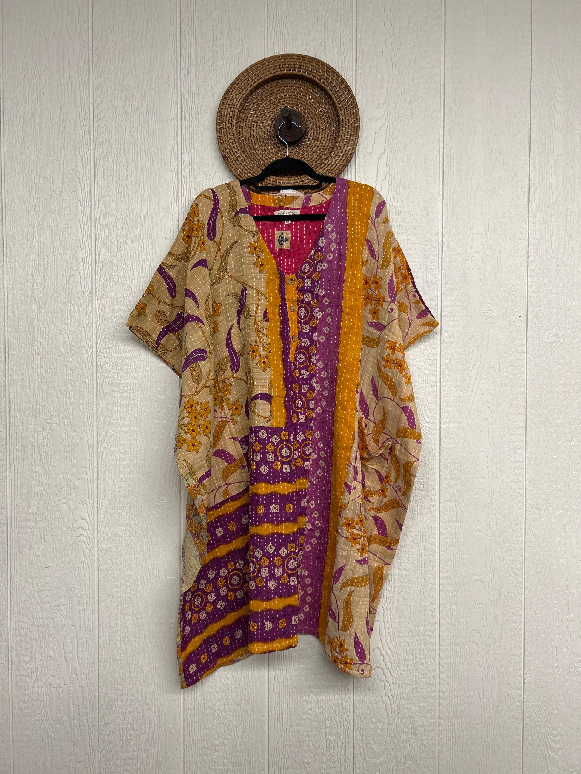 Crafted in our lux vintage Kantha stitch cotton sari, this floaty muu is in a new midi length with buttons at the neckline and slouchy exterior pockets.