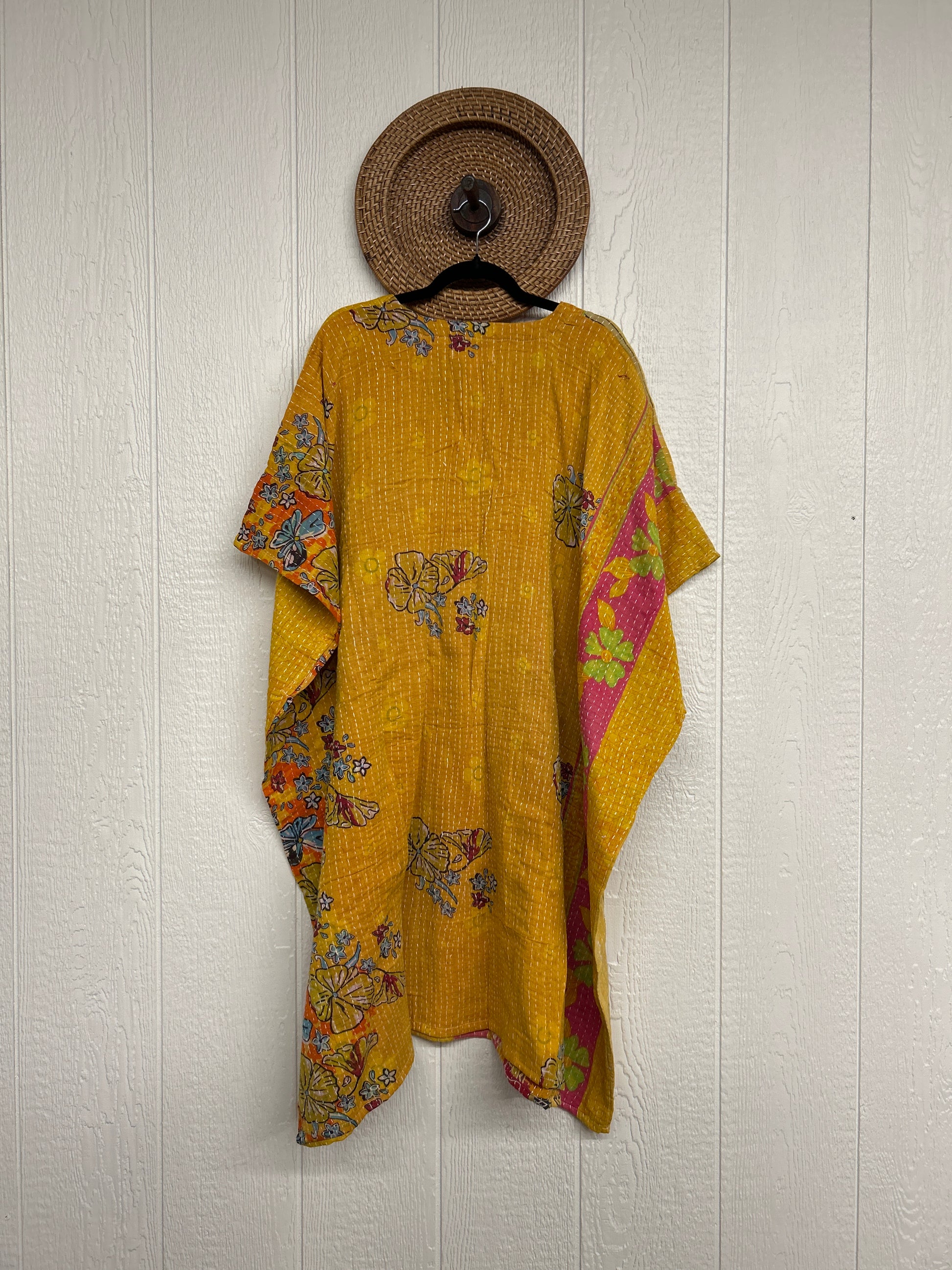 Crafted in our lux vintage Kantha stitch cotton sari, this floaty muu is in a new midi length with buttons at the neckline and slouchy exterior pockets.