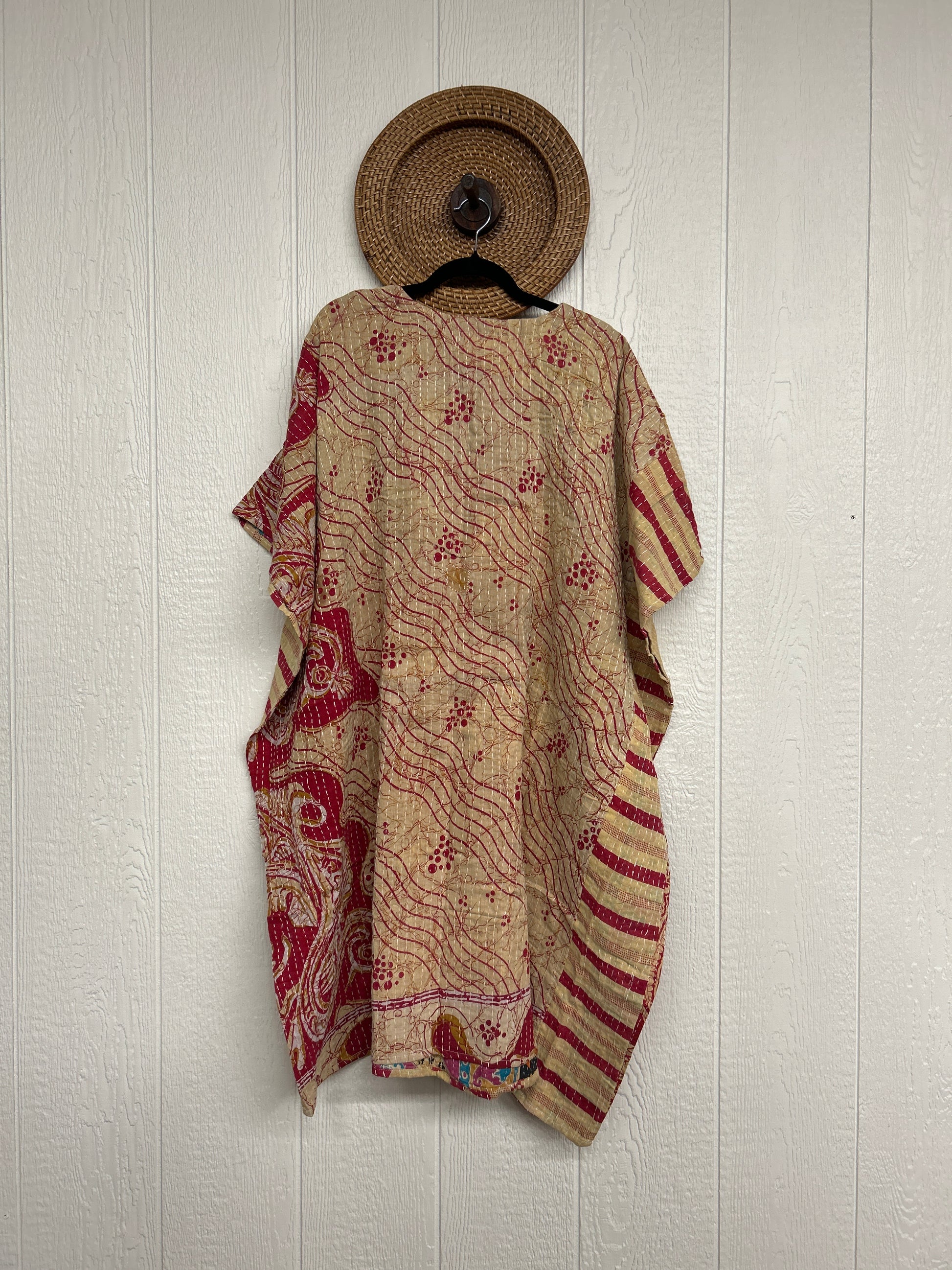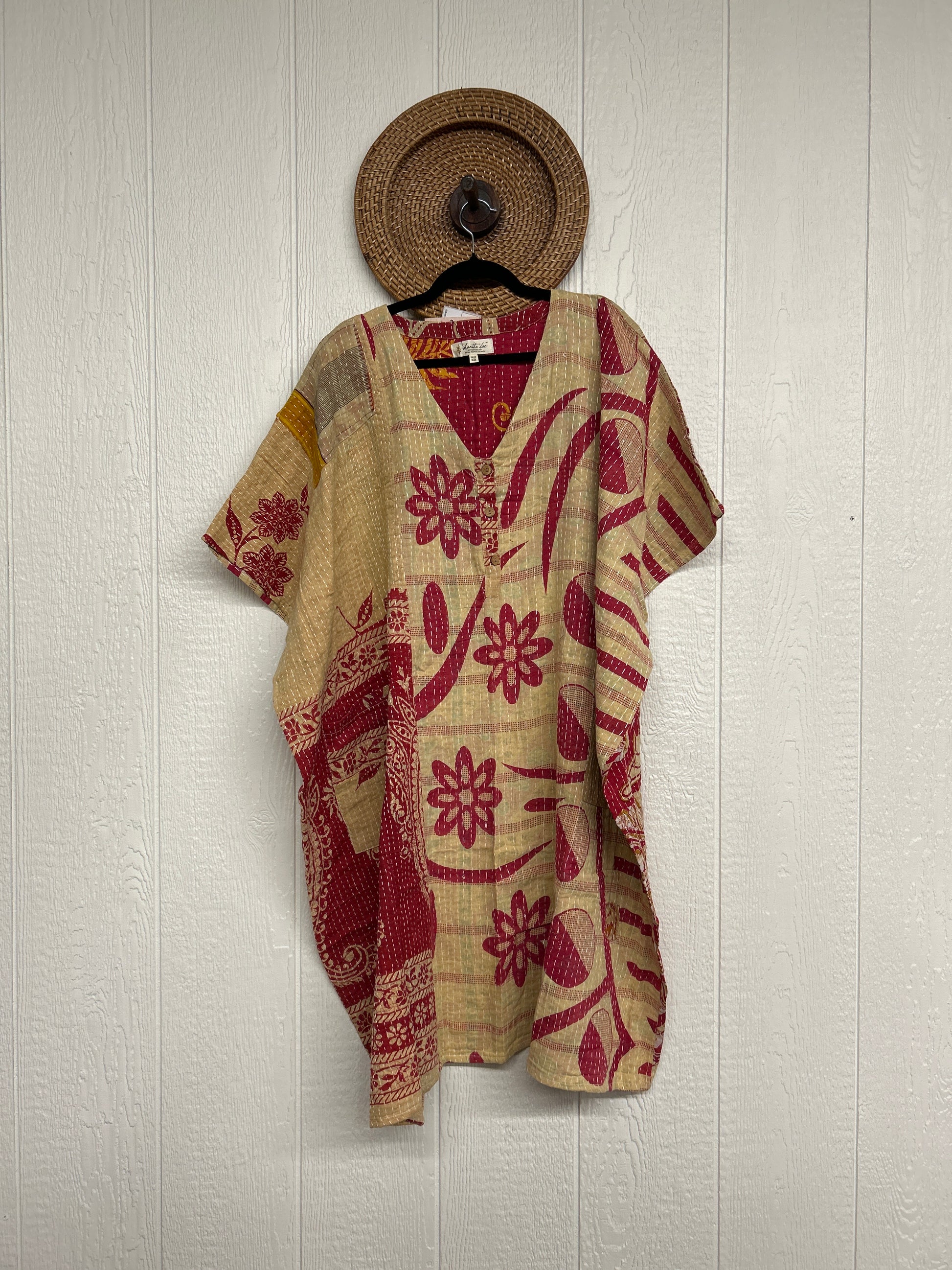 Crafted in our lux vintage Kantha stitch cotton sari, this floaty muu is in a new midi length with buttons at the neckline and slouchy exterior pockets.