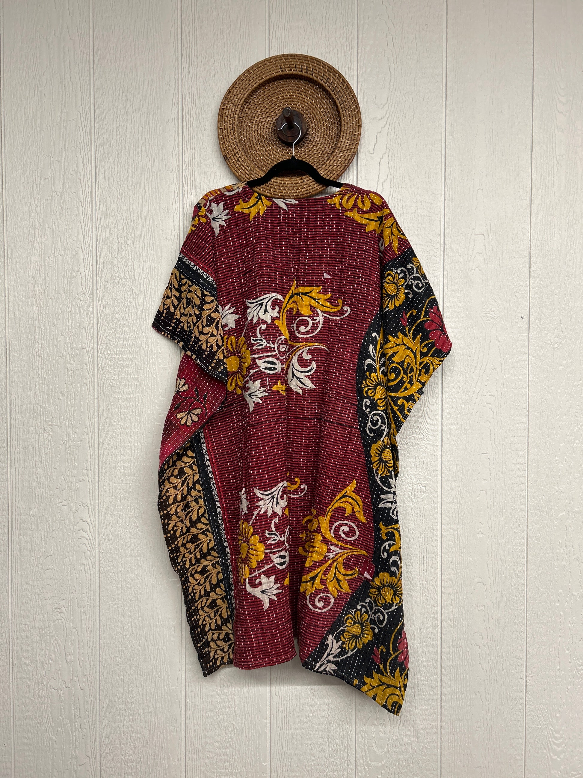 Crafted in our lux vintage Kantha stitch cotton sari, this floaty muu is in a new midi length with buttons at the neckline and slouchy exterior pockets.
