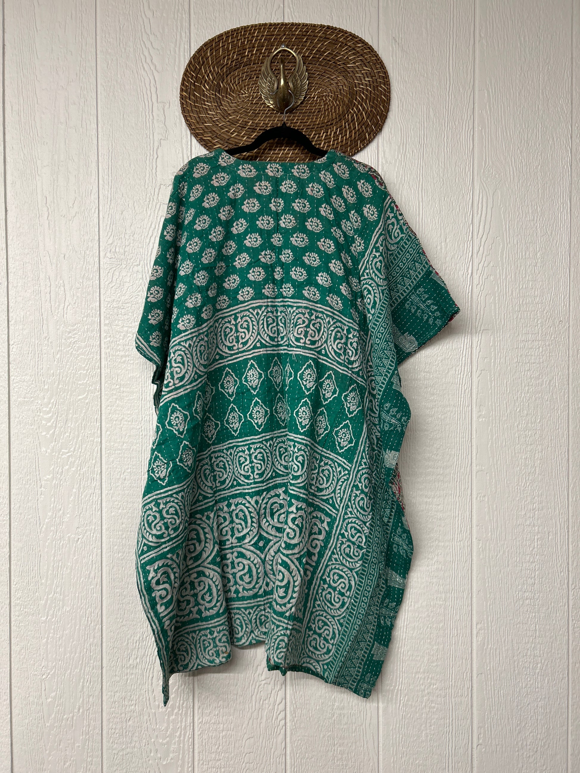 Crafted in our lux vintage Kantha stitch cotton sari, this floaty muu is in a new midi length with buttons at the neckline and slouchy exterior pockets.
