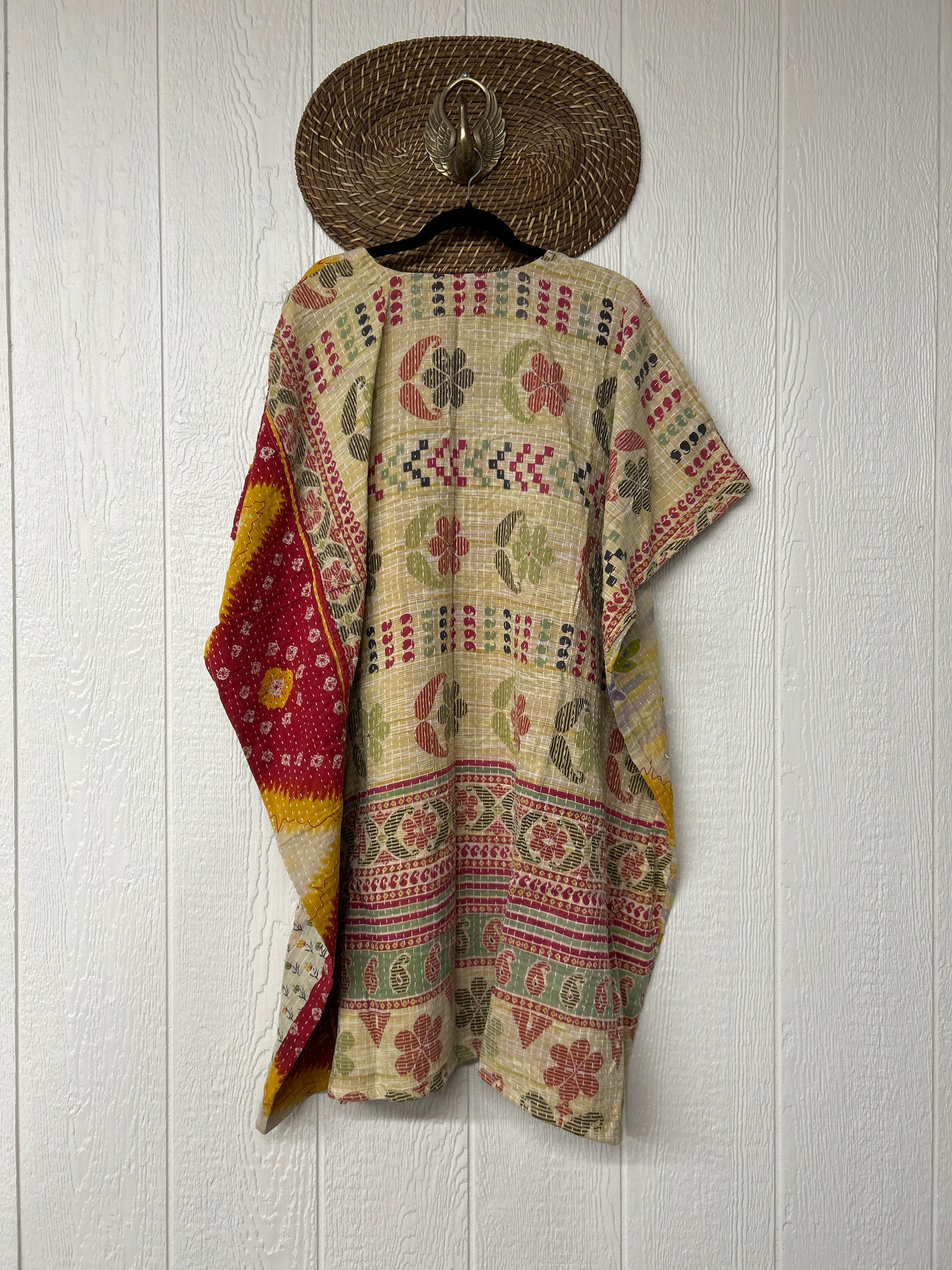 Crafted in our lux vintage Kantha stitch cotton sari, this floaty muu is in a new midi length with buttons at the neckline and slouchy exterior pockets.
