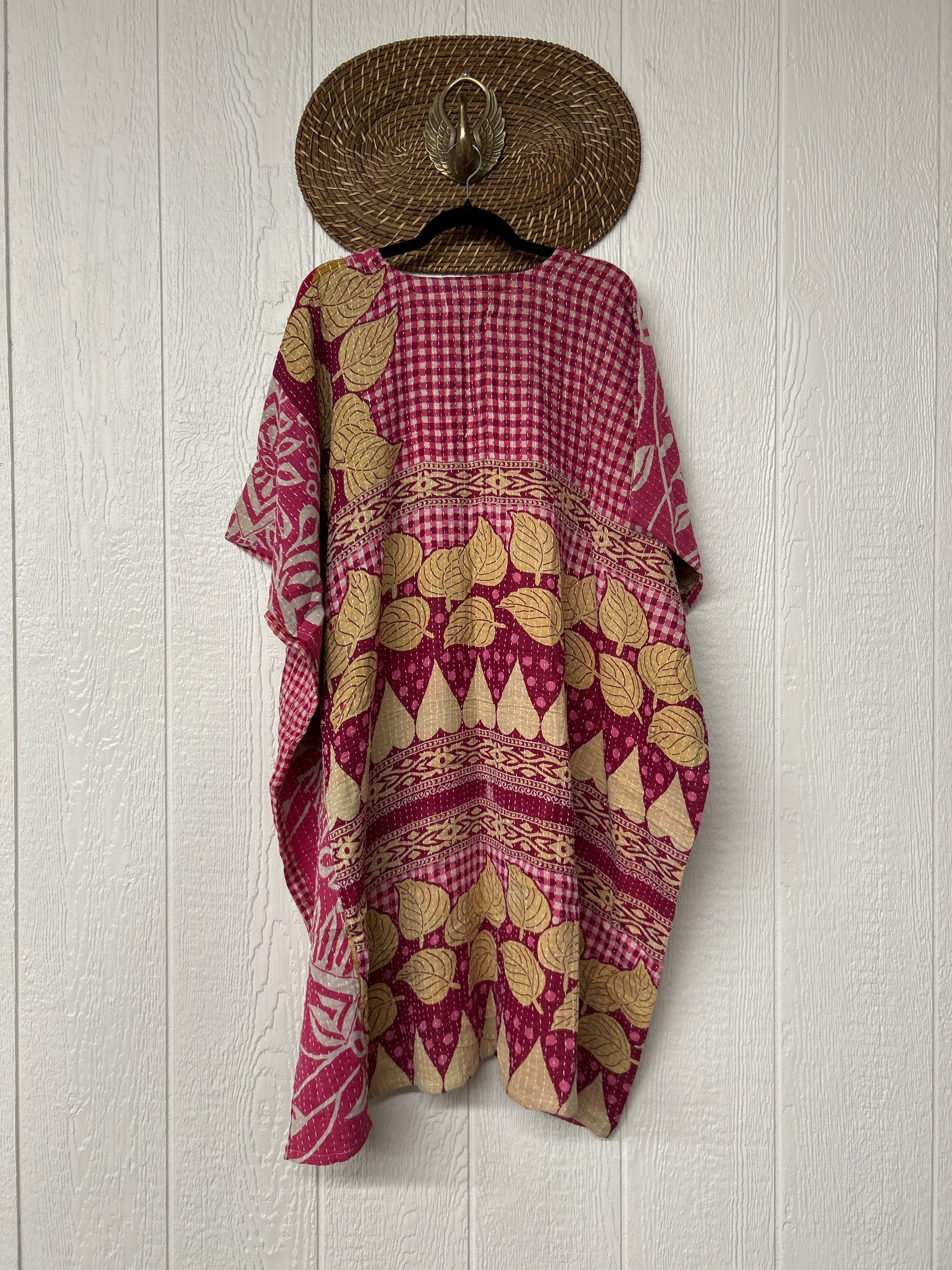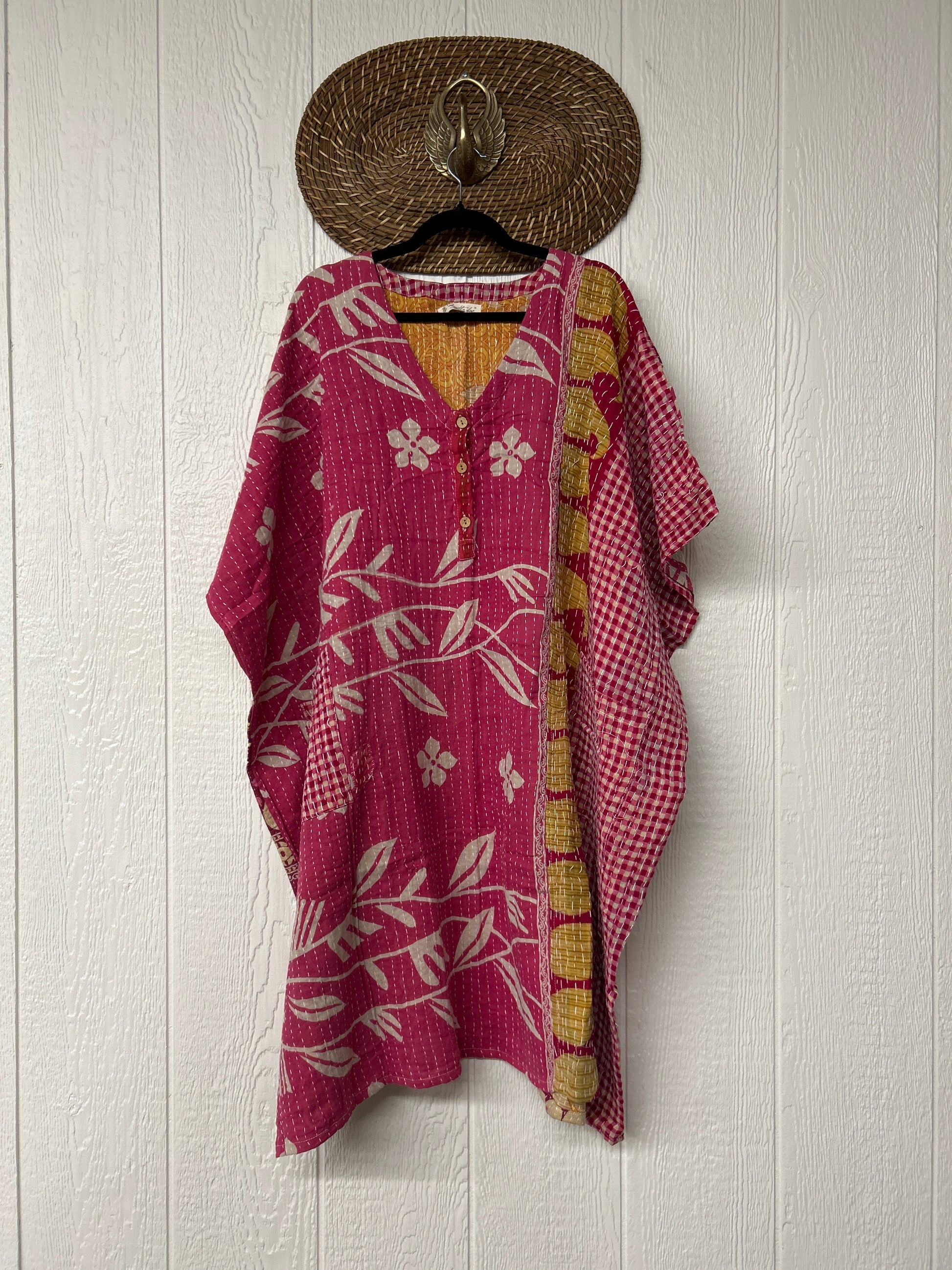 Crafted in our lux vintage Kantha stitch cotton sari, this floaty muu is in a new midi length with buttons at the neckline and slouchy exterior pockets.