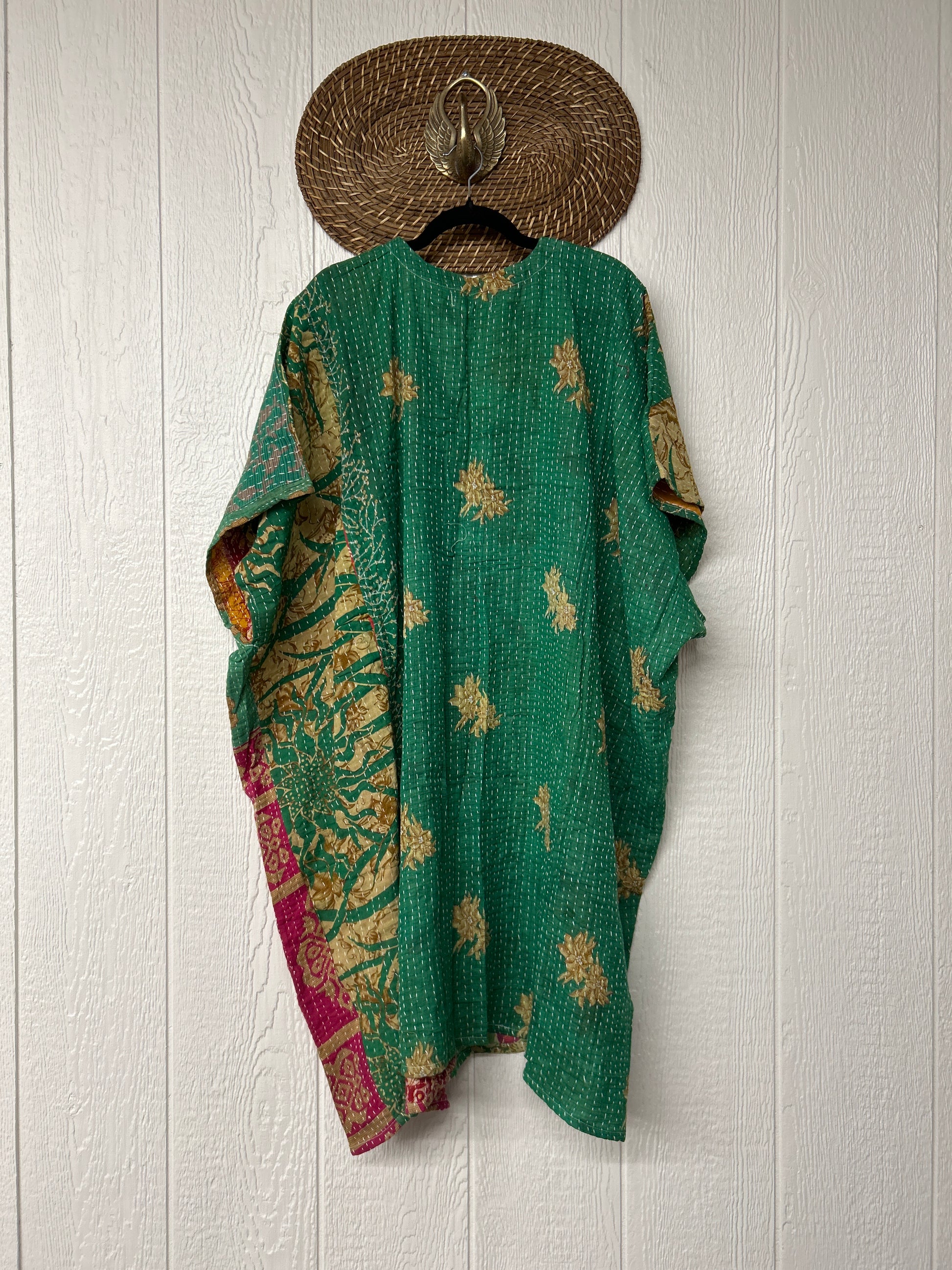 Crafted in our lux vintage Kantha stitch cotton sari, this floaty muu is in a new midi length with buttons at the neckline and slouchy exterior pockets.