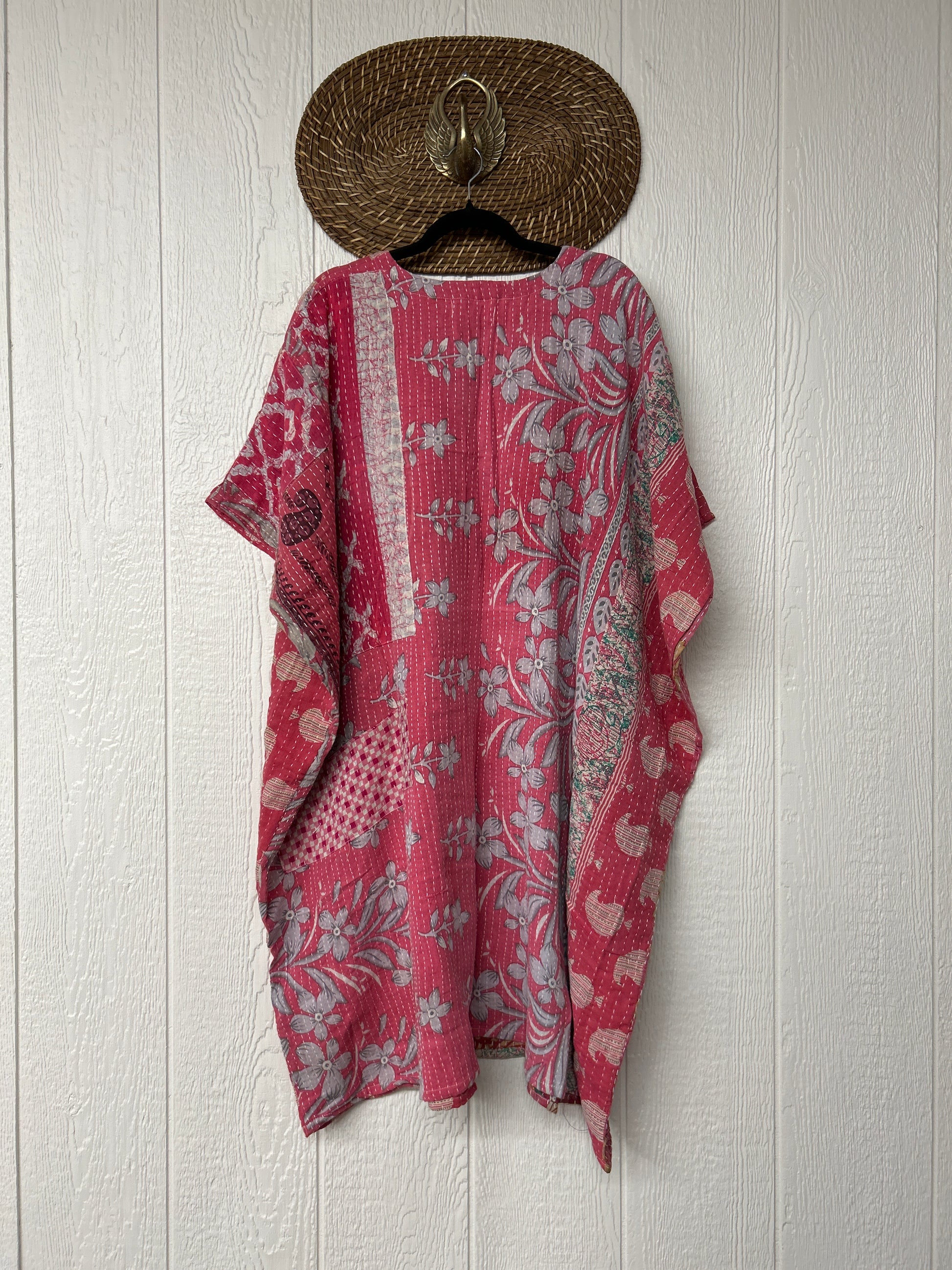 Crafted in our lux vintage Kantha stitch cotton sari, this floaty muu is in a new midi length with buttons at the neckline and slouchy exterior pockets.