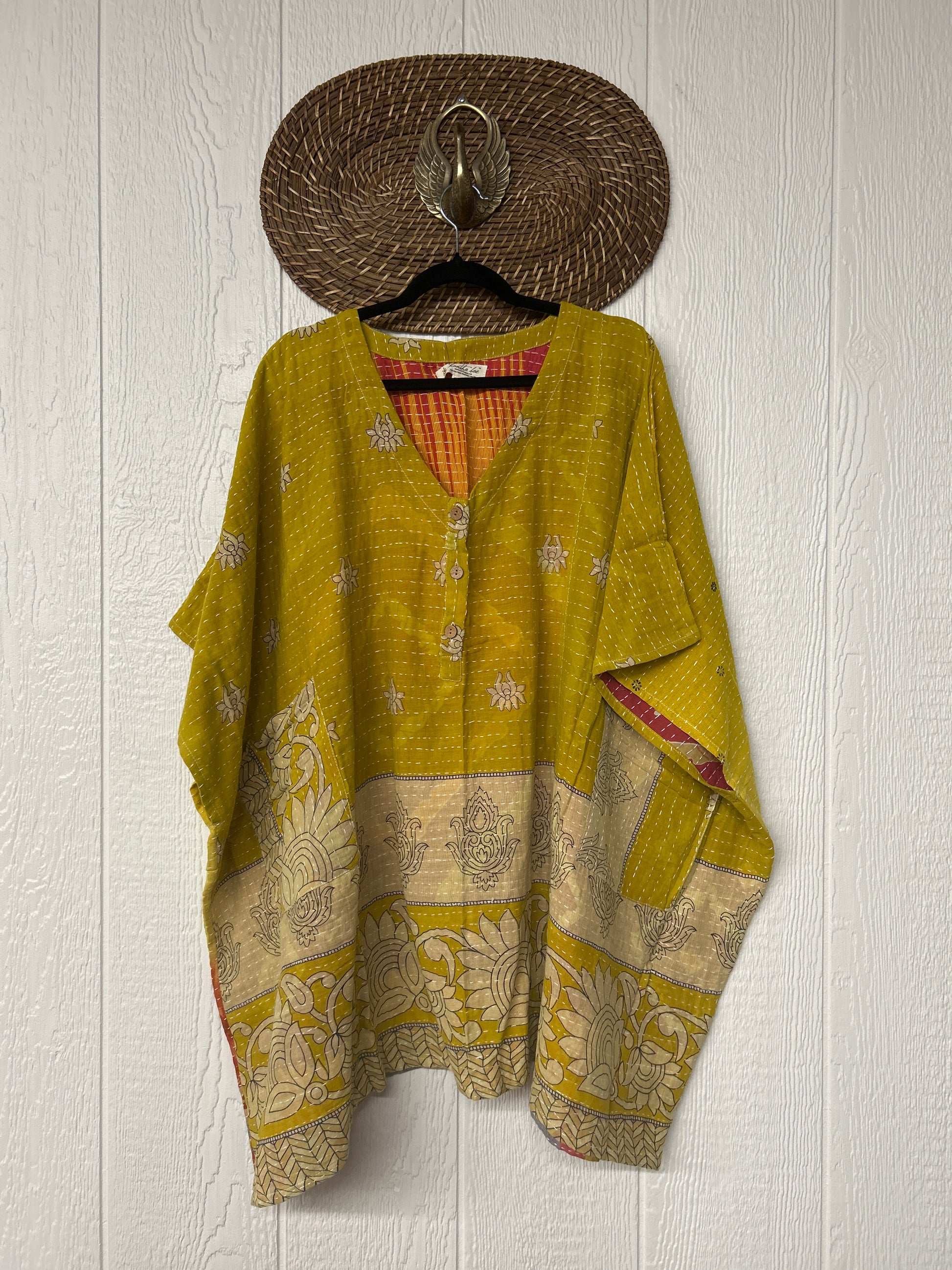 Disclosure: Our vintage styles have lived a full life before becoming the designs in our shop. Fabrics may have small threads or holes in the layers. Color inconsistency or small stains may be present. The saris are sewn together and extend the life of each design. Imperfections should be celebrated.